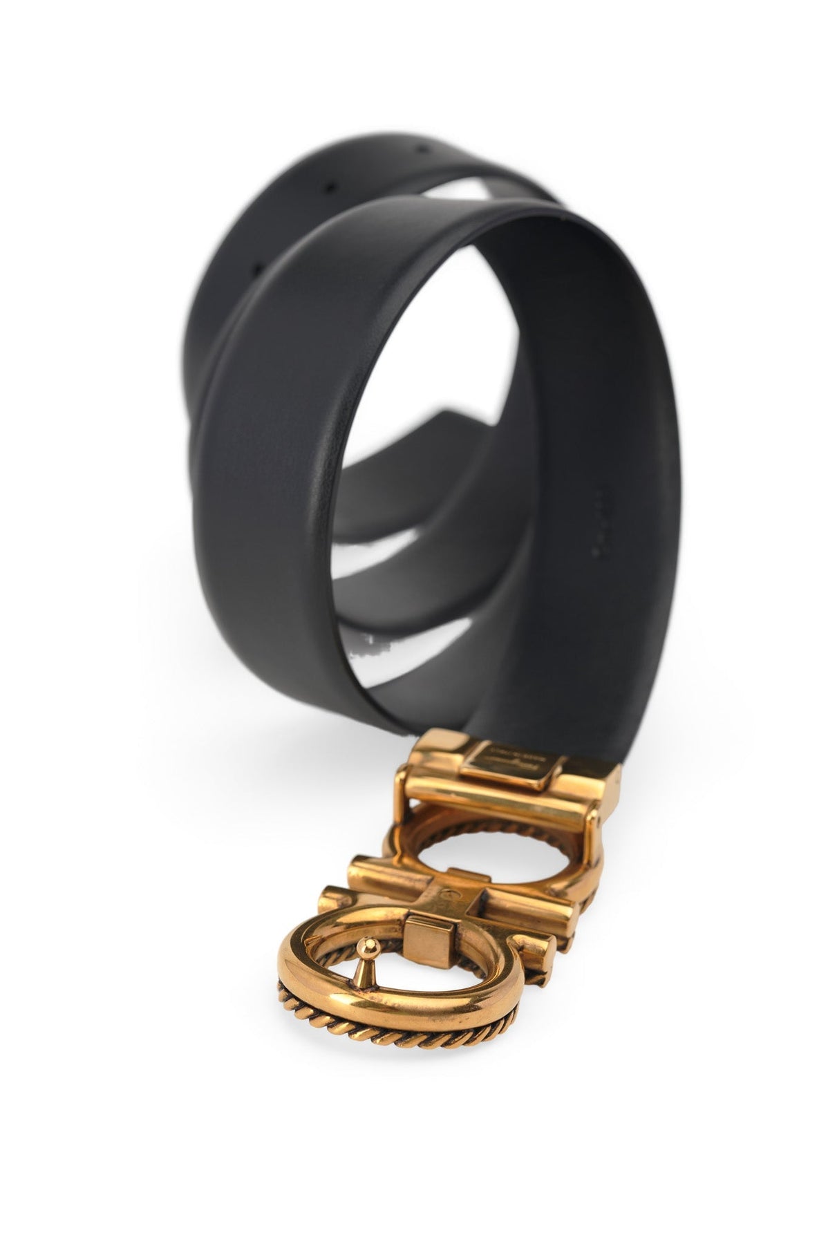 Salvatore Ferragamo Gancini Chain Buckle Belt in black