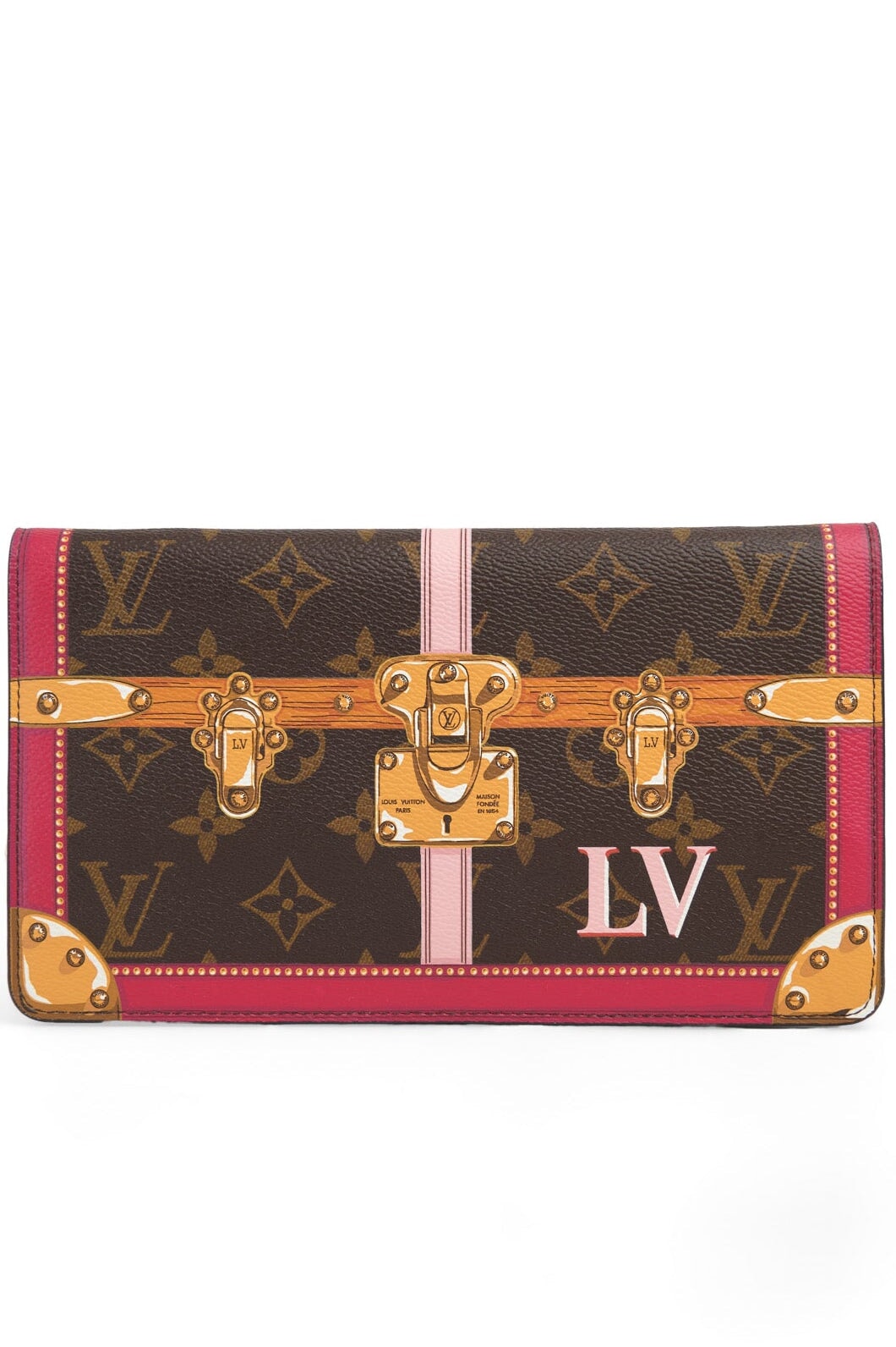 Pre-loved Louis Vuitton Summer Trunks and Bags Wallet On Chain in pink and brown