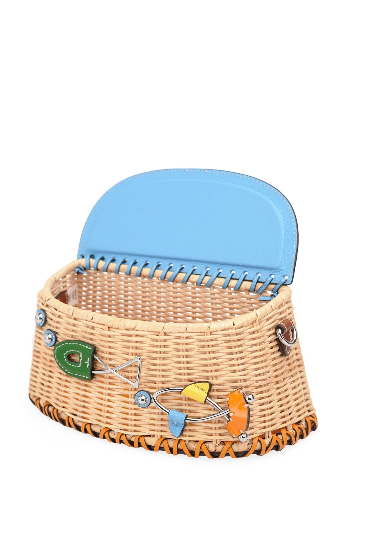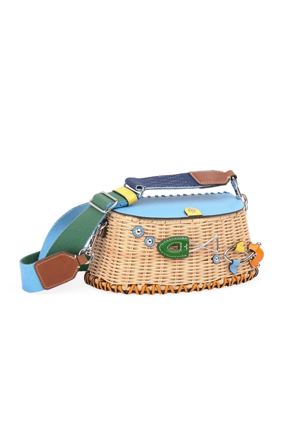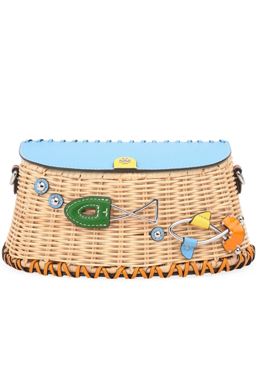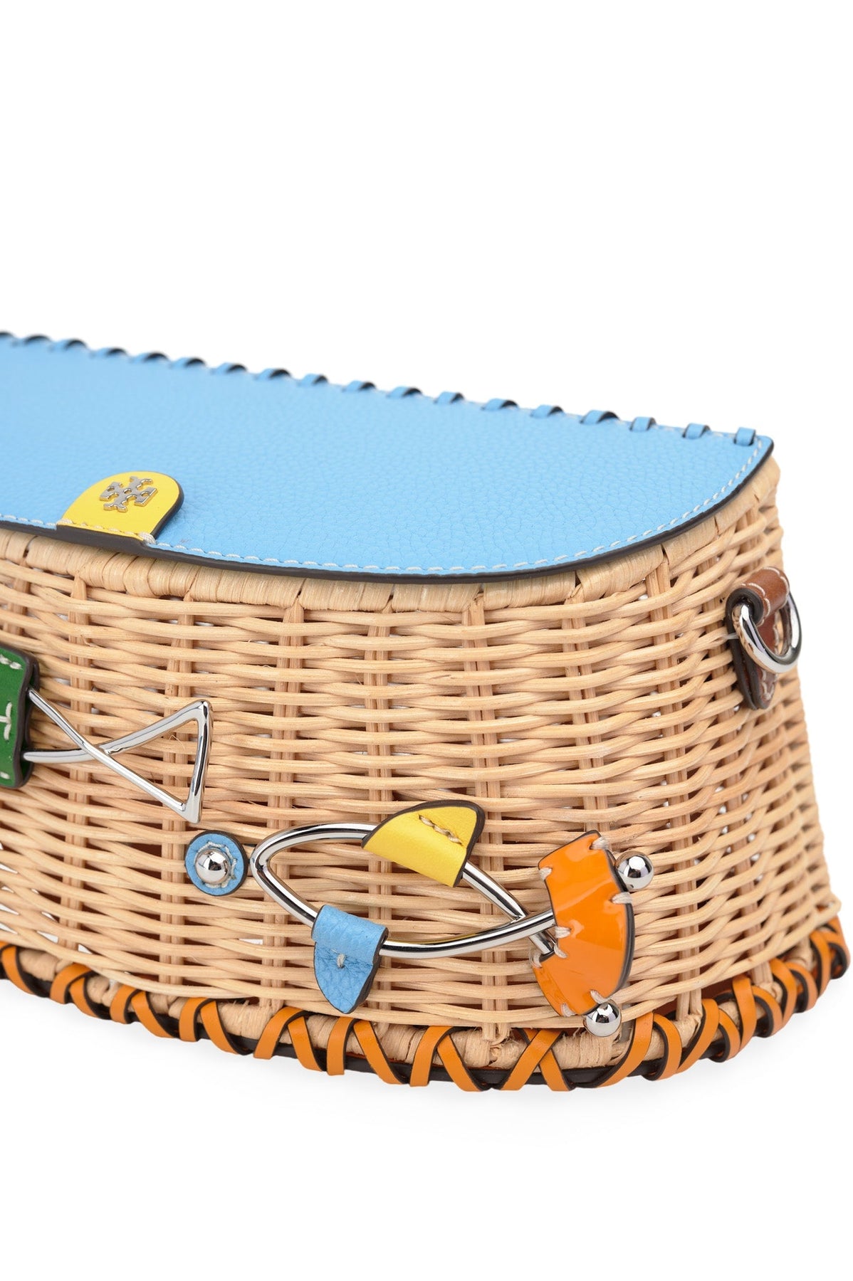 Tory Burch Wicker Fisherman Bag in blue and green