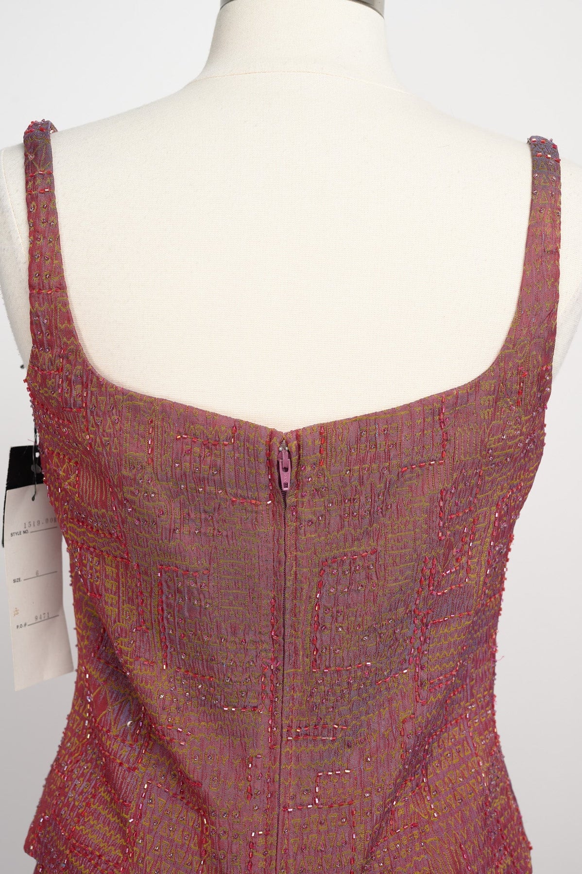 Both have back zippers with hook and eyes
