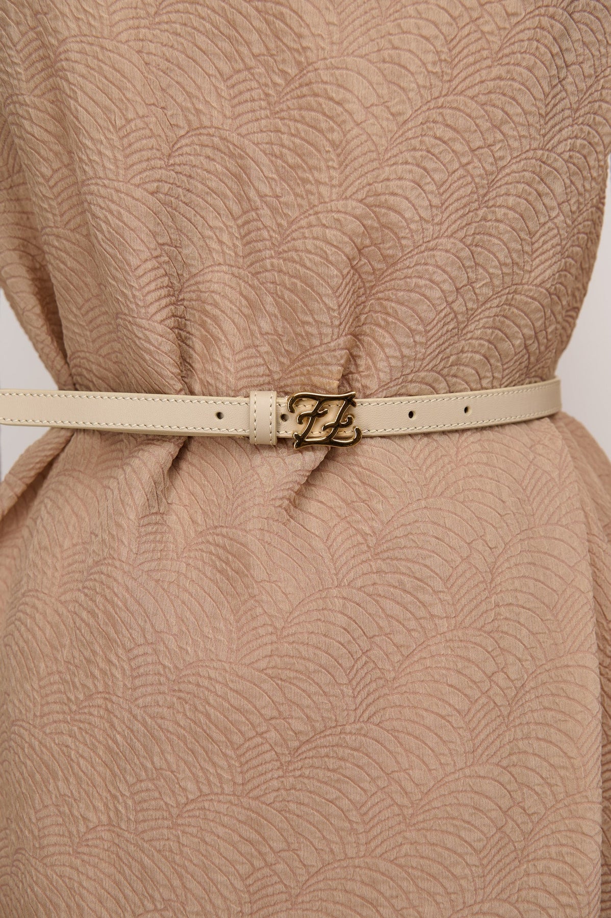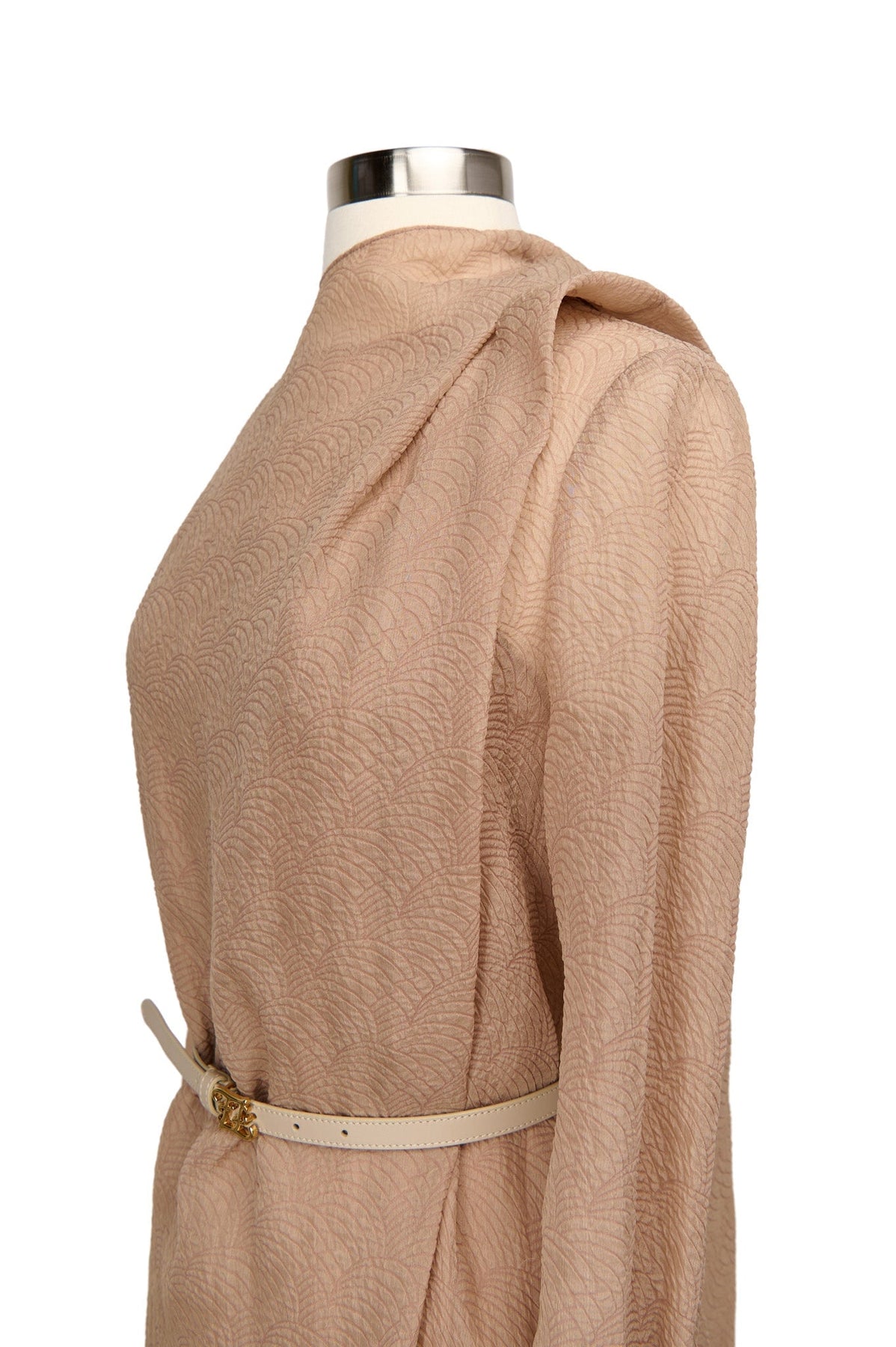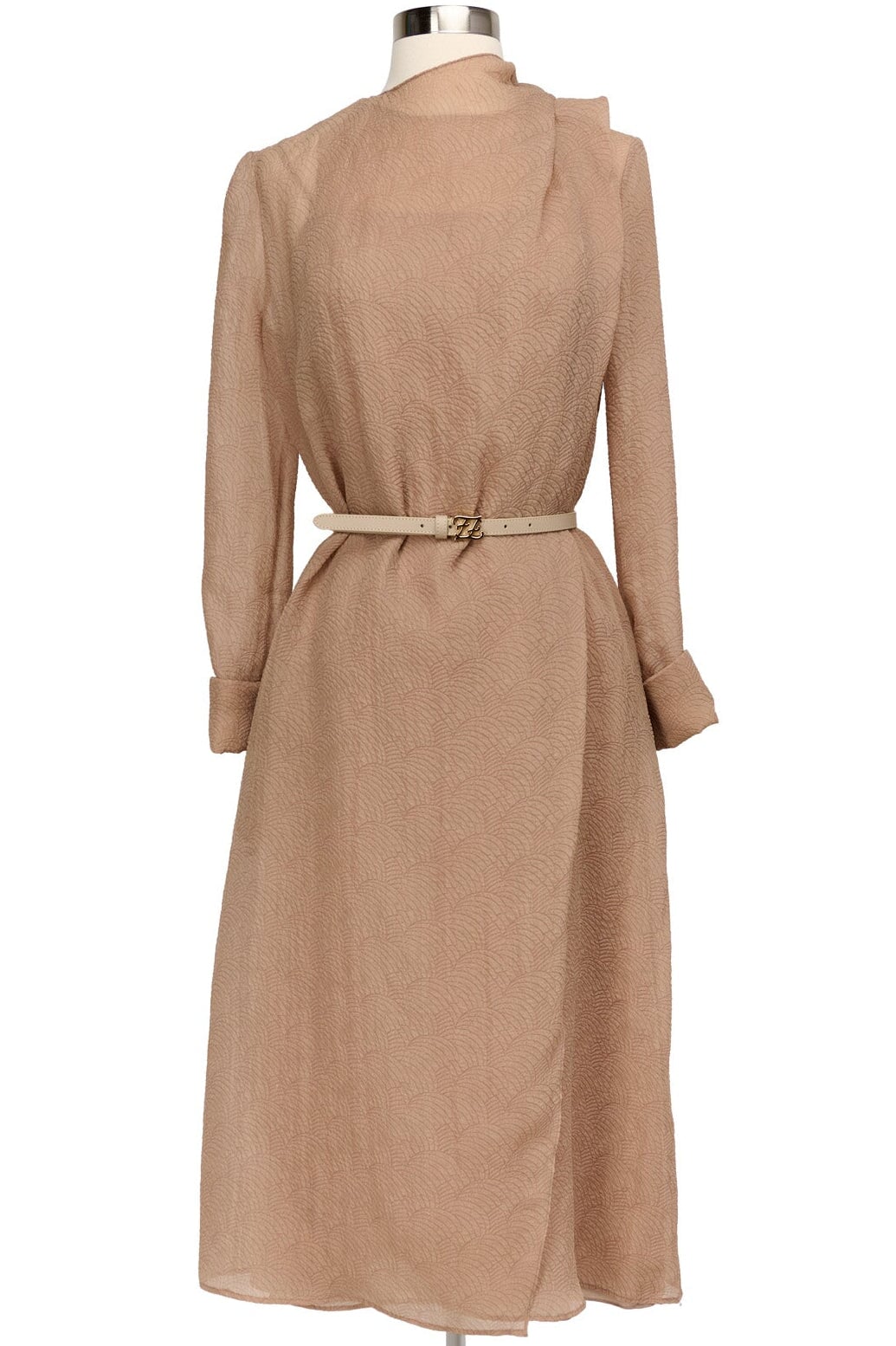Fendi Draped Silk Belted Dress in beige