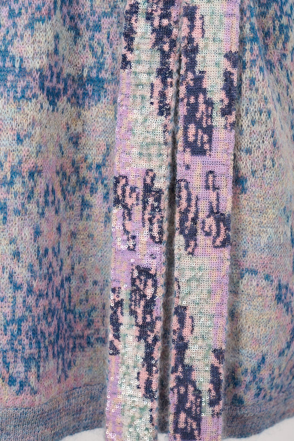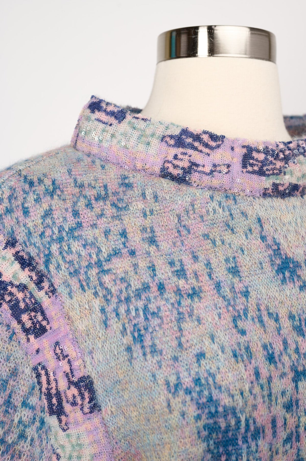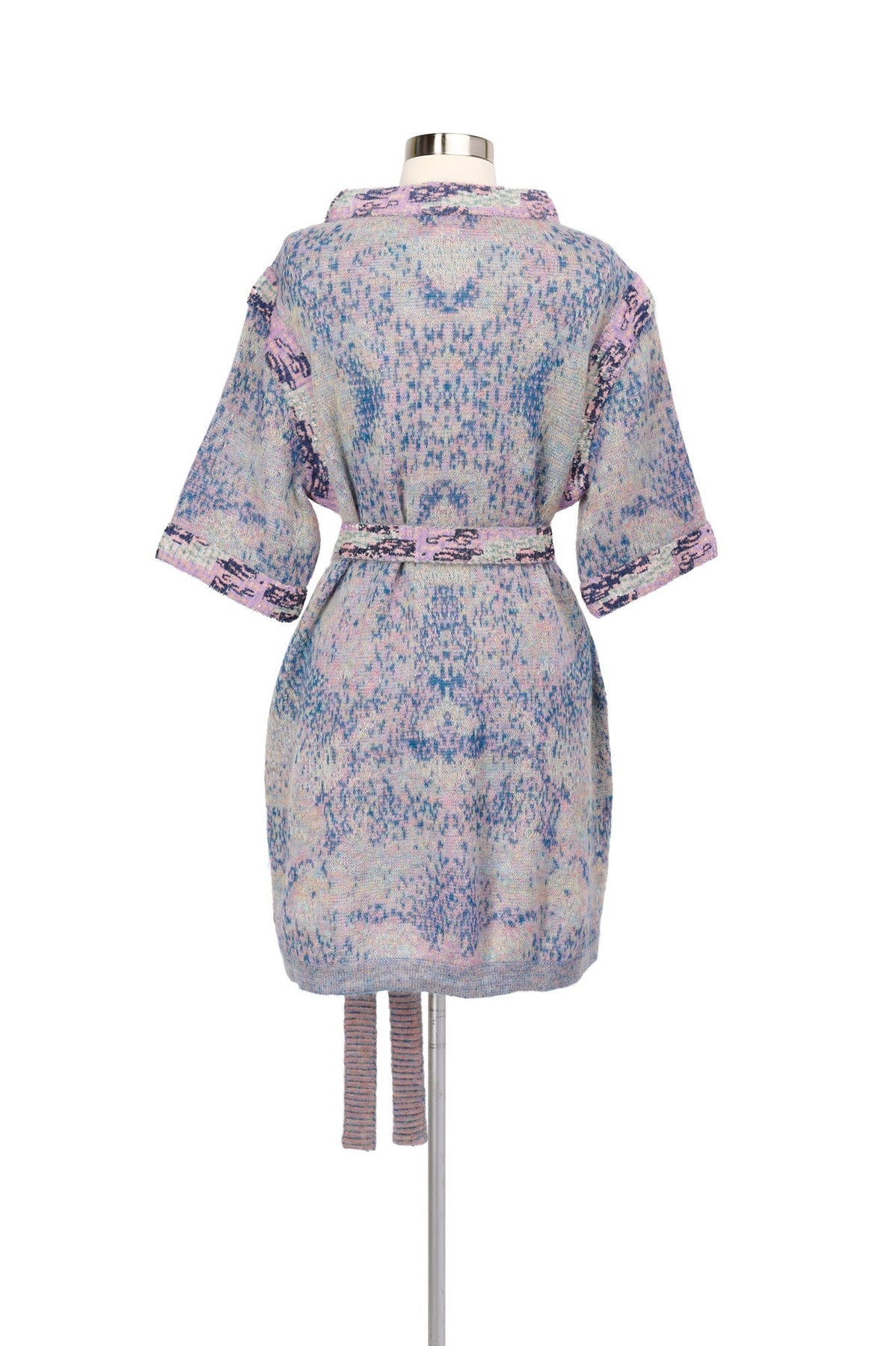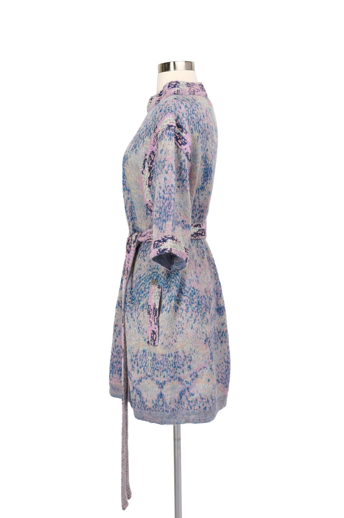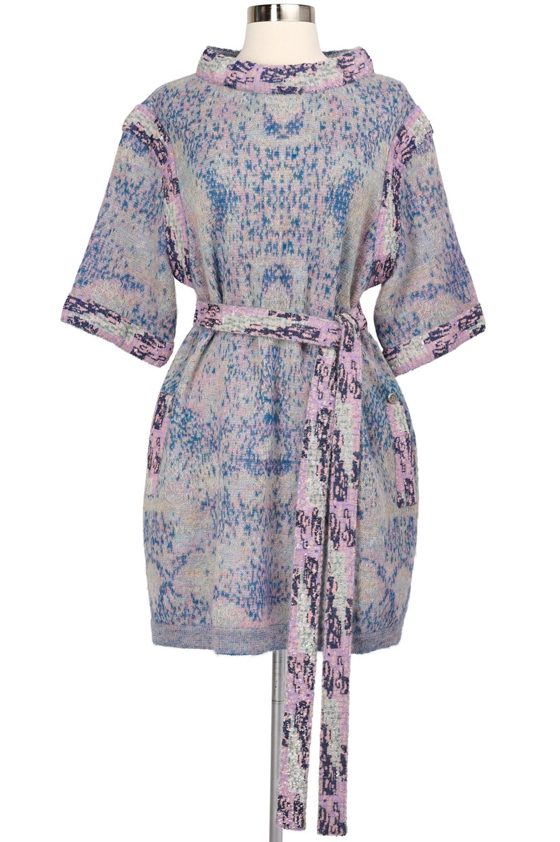Pre-loved Chanel 2014 Sequin Abstract Knit Dress in lavender, navy and green