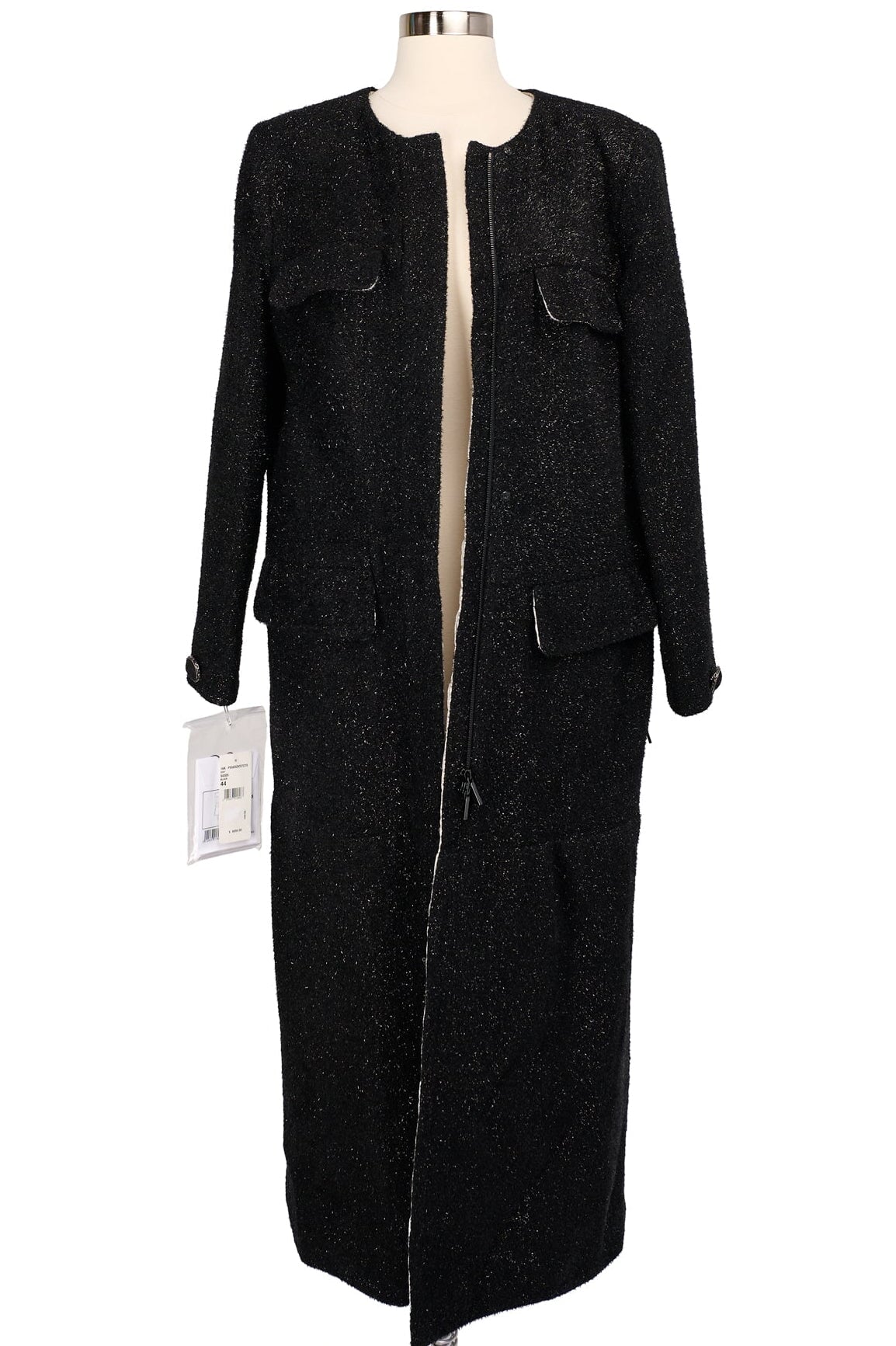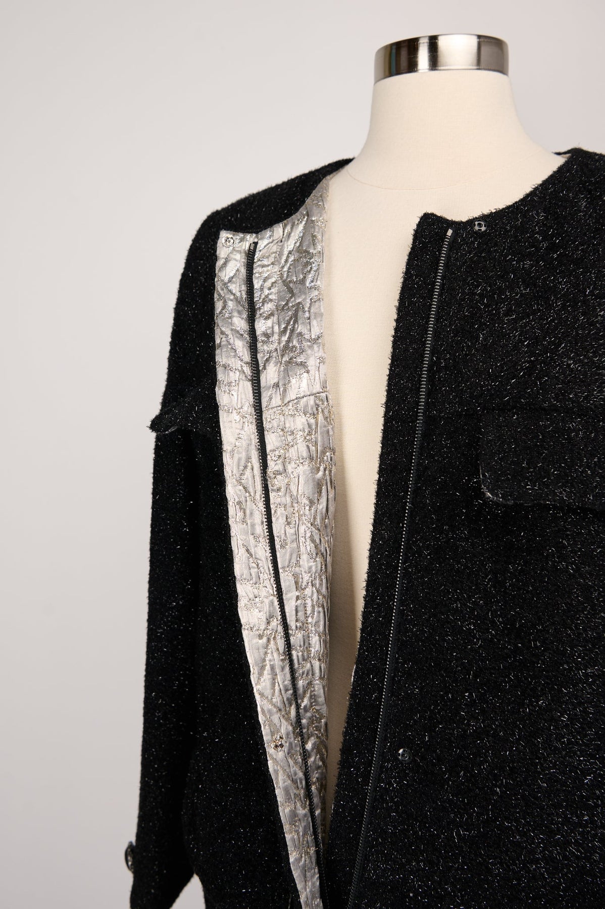 Pre-loved Chanel Brocade Coat in black and silver