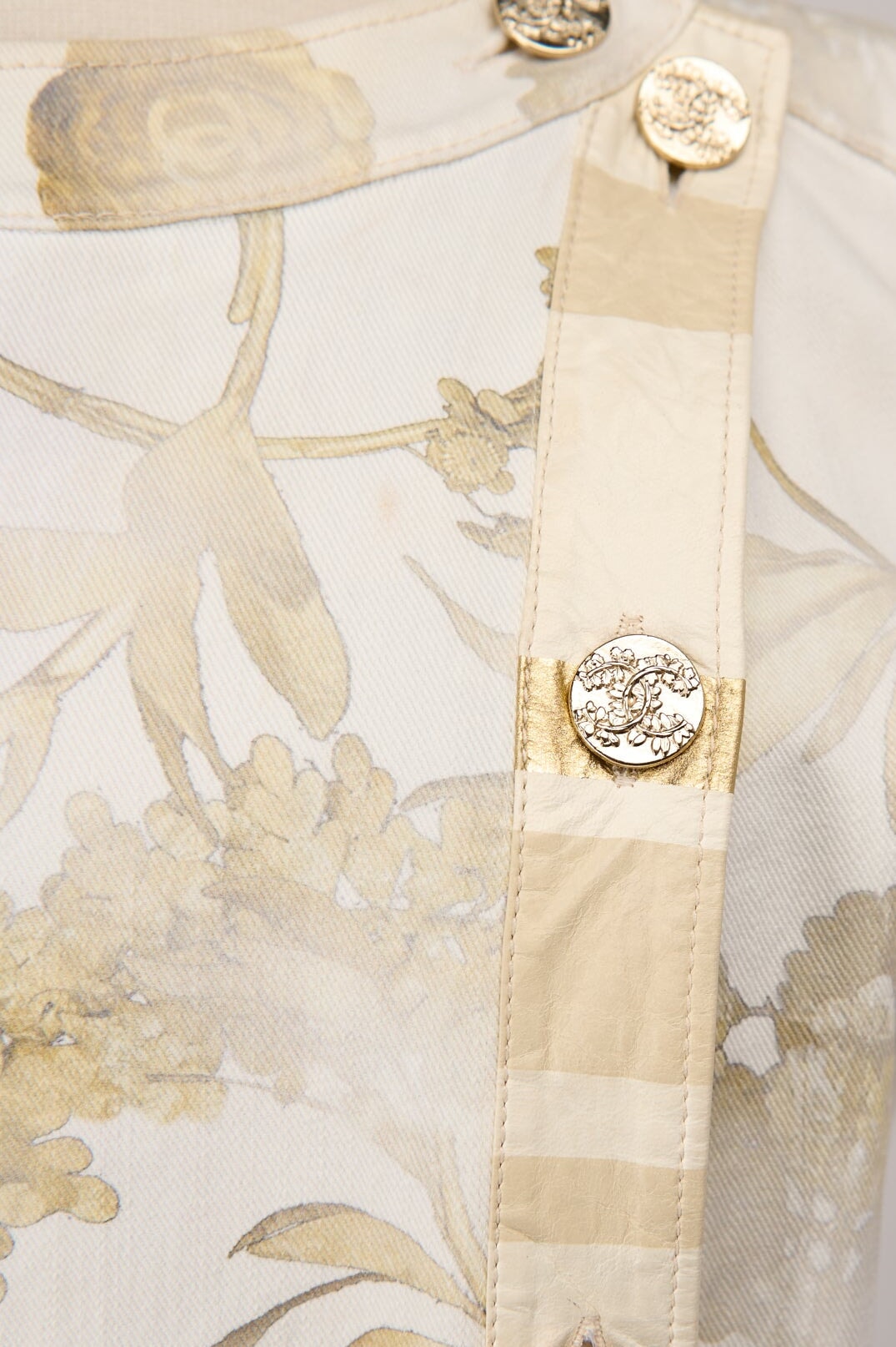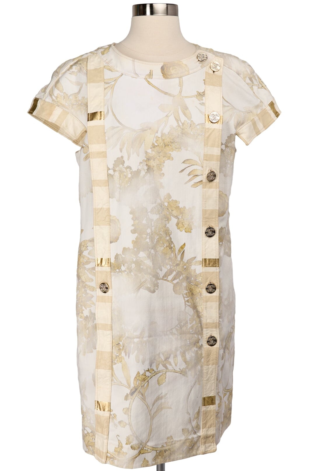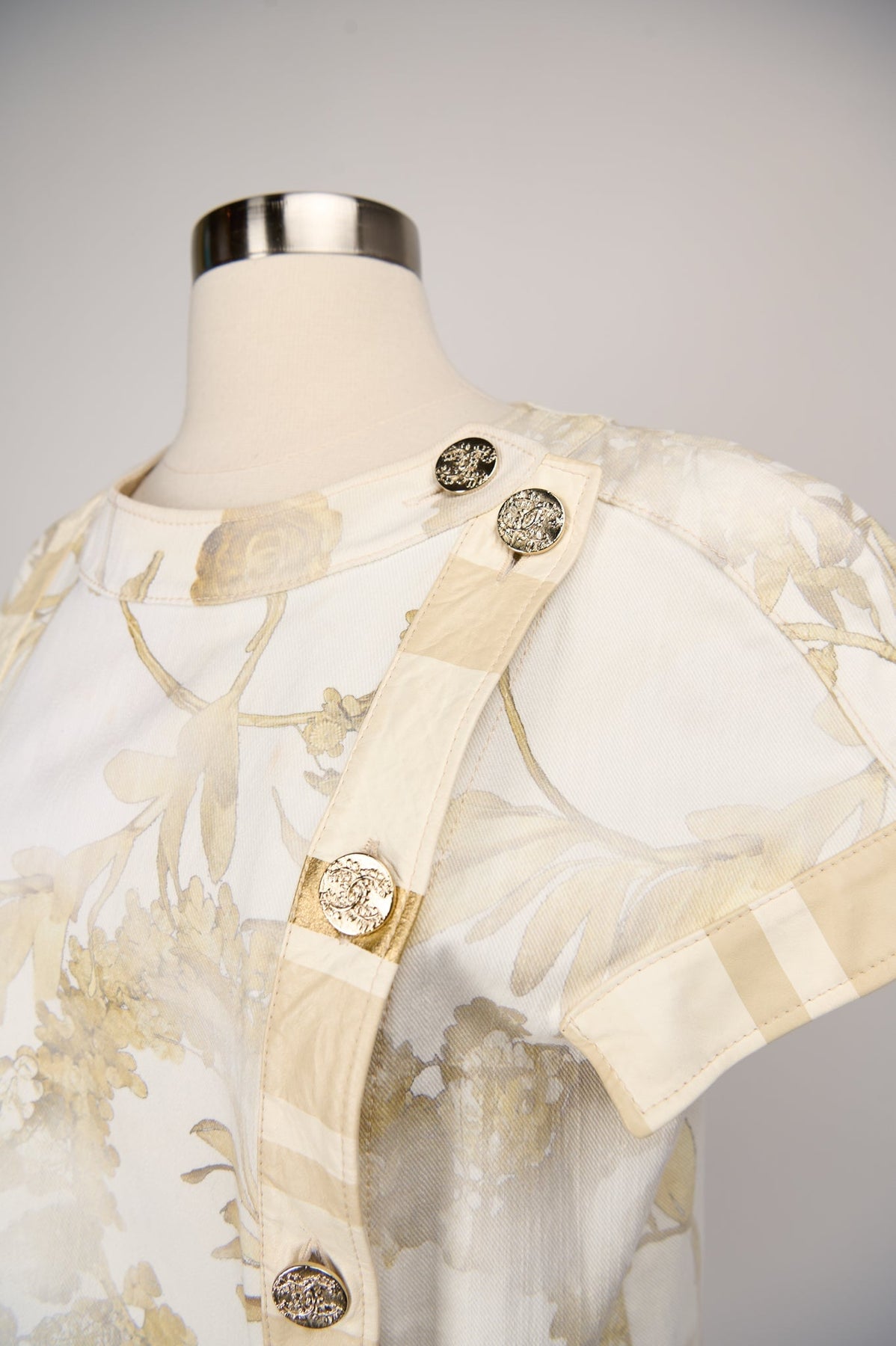 Pre-loved Chanel Floral Denim Dress in cream and gold