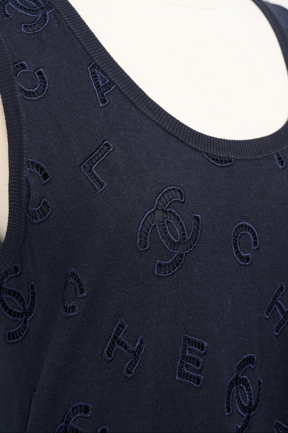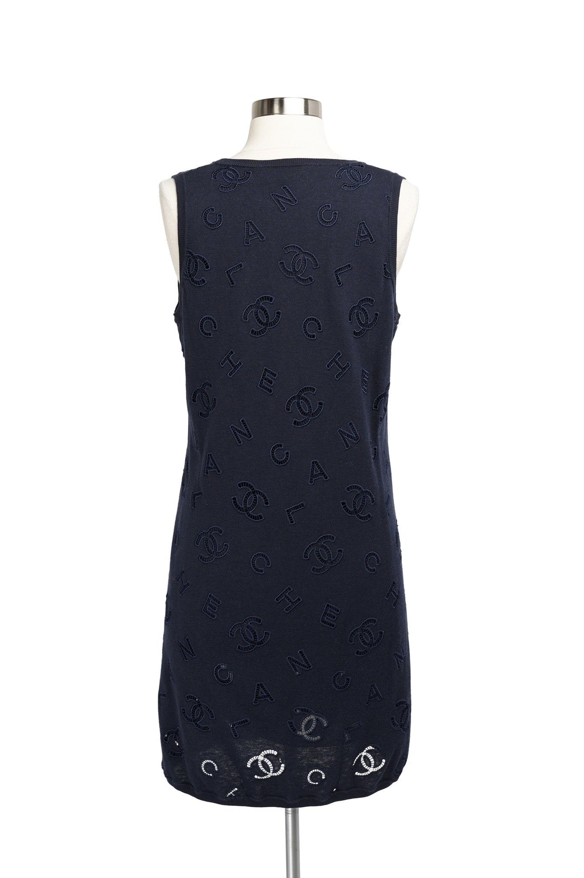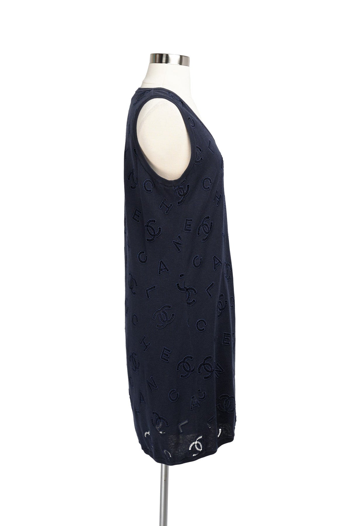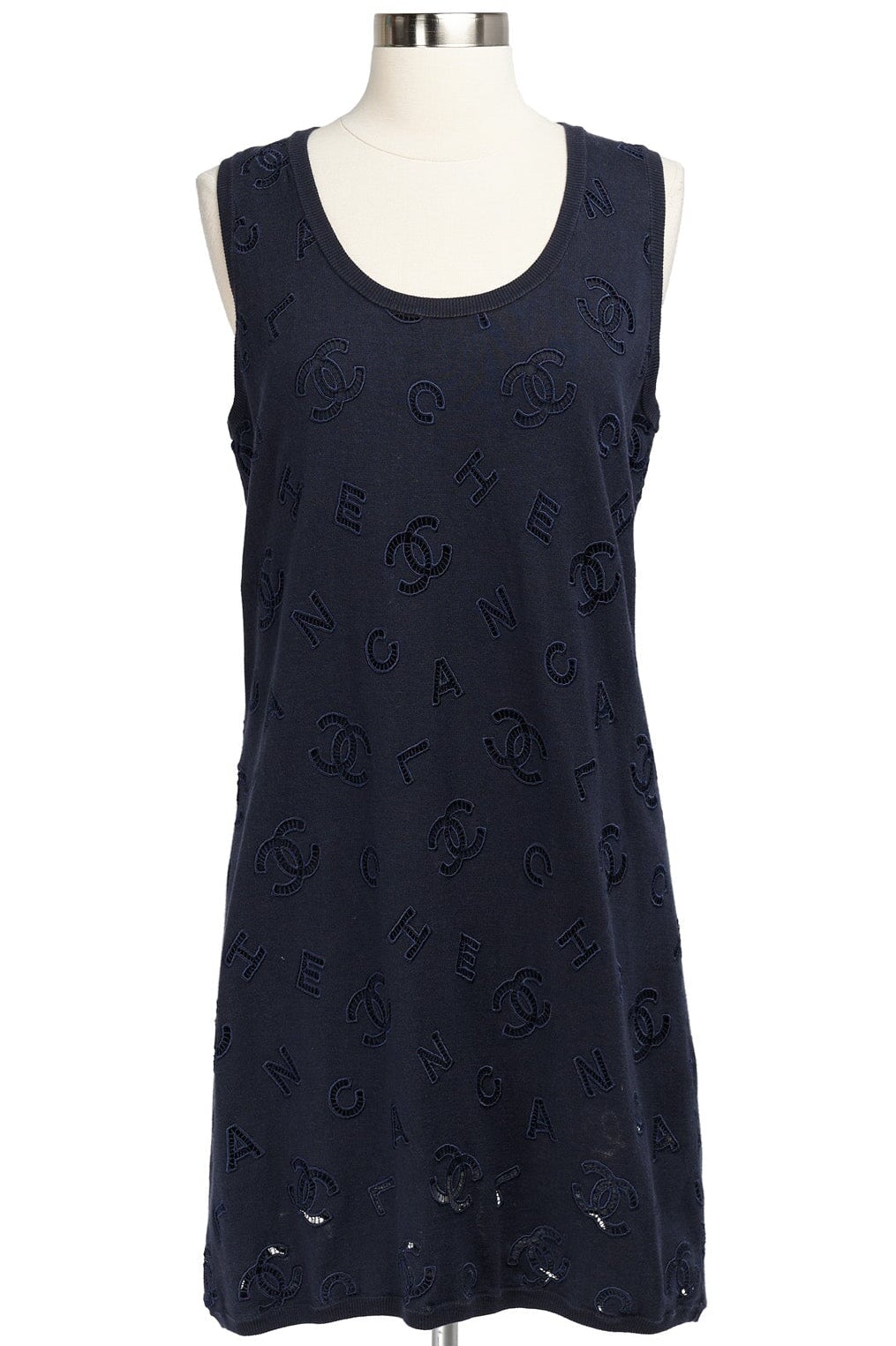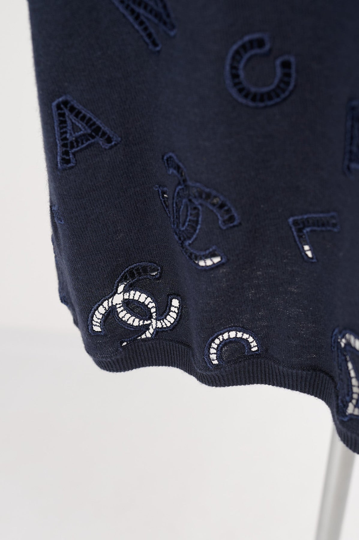 Pre-loved Chanel Logo Embroidered Dress in navy
