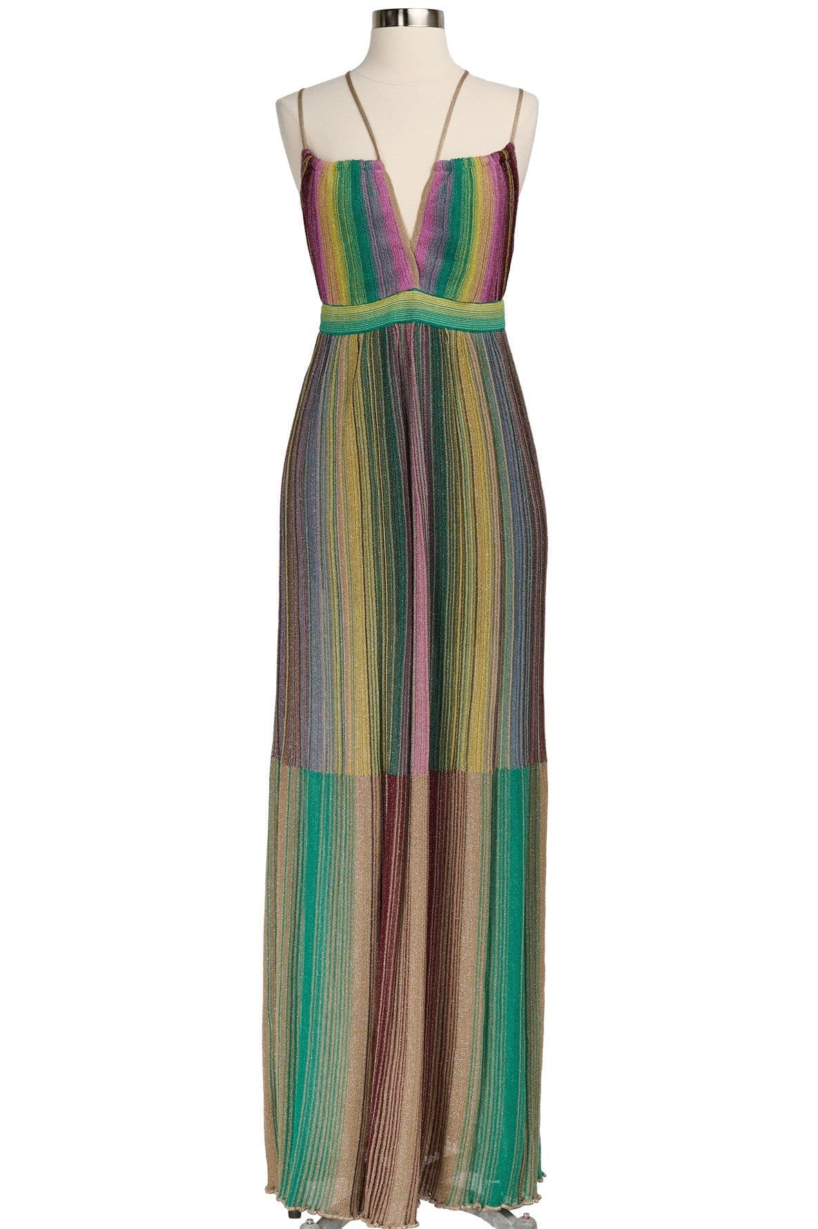 M Missoni Shimmer Knit Maxi Dress in green and purple