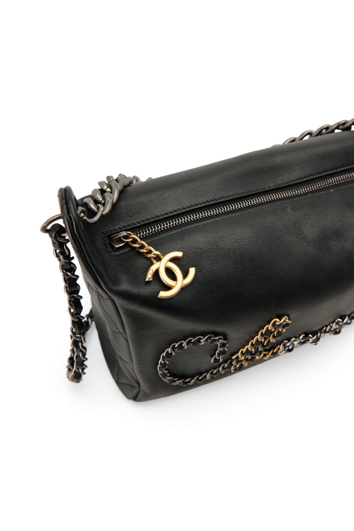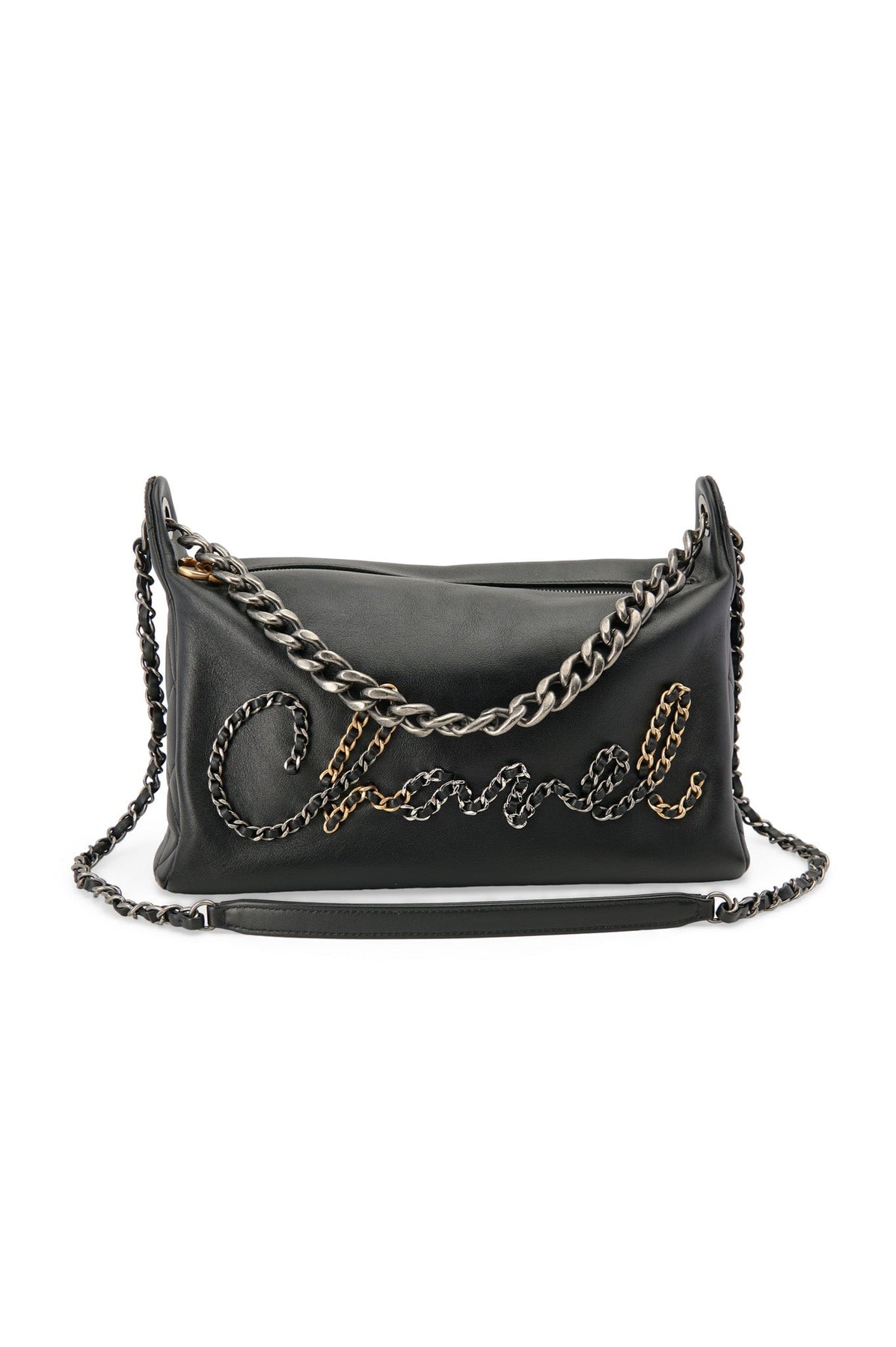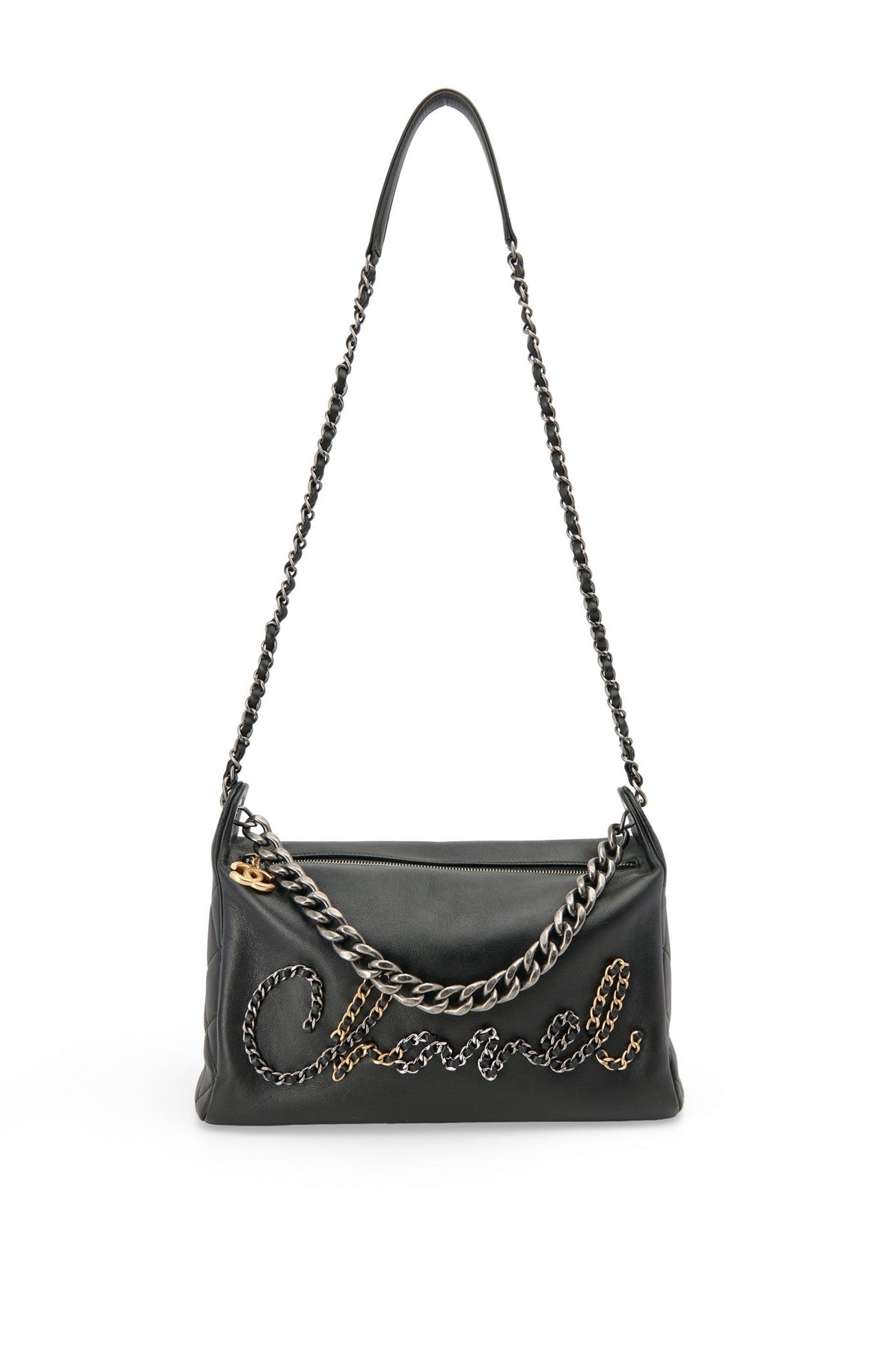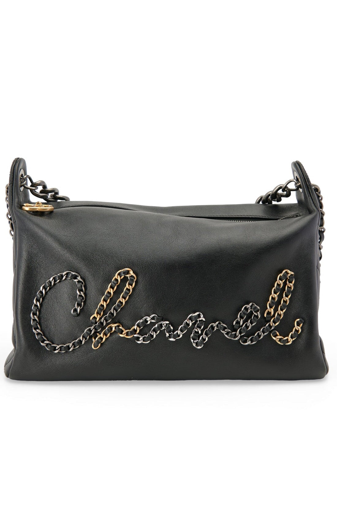 Pre-loved Chanel Written In Chain Hobo Bag in black
