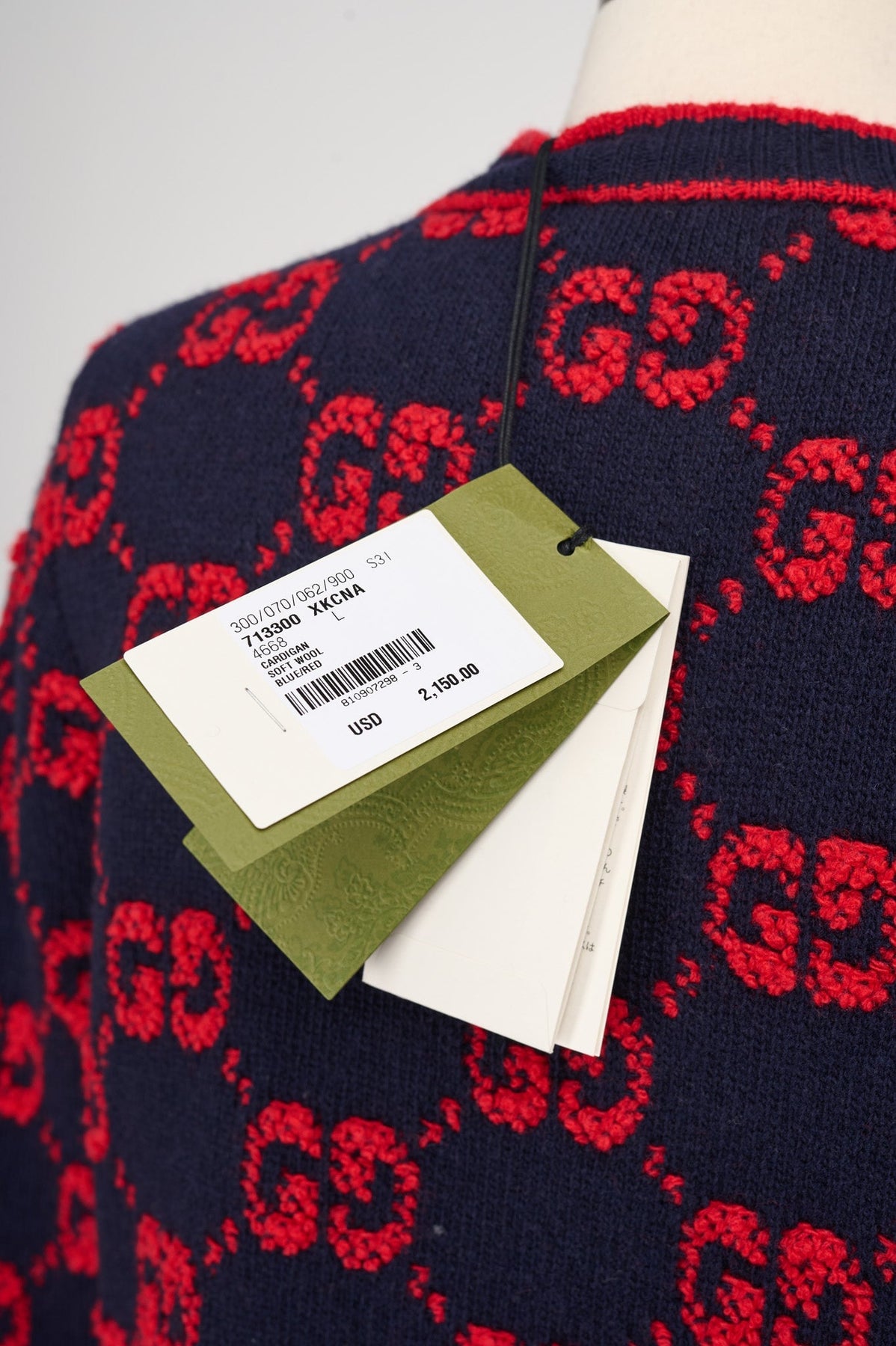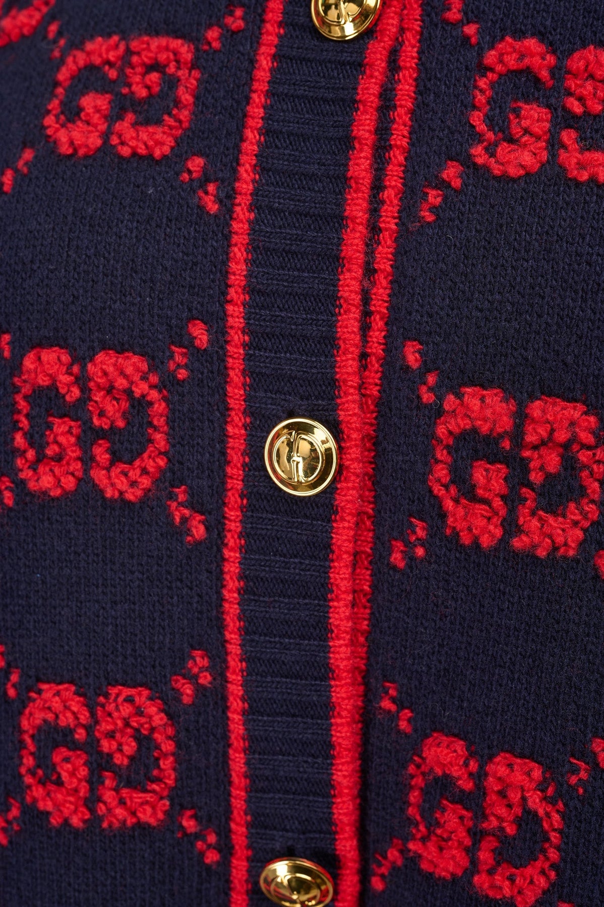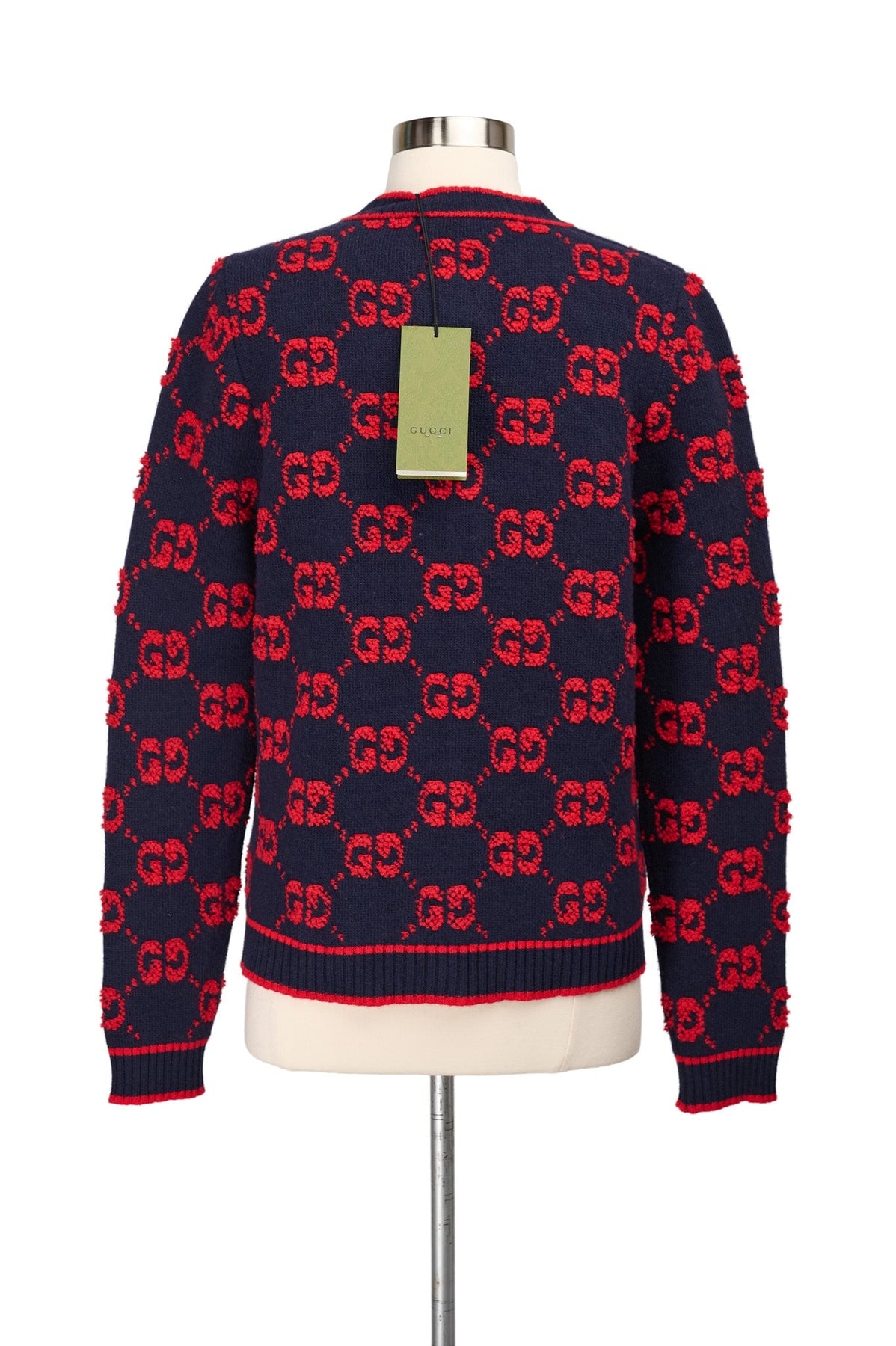 Pre-loved Gucci Monogram Cardigan in navy and red