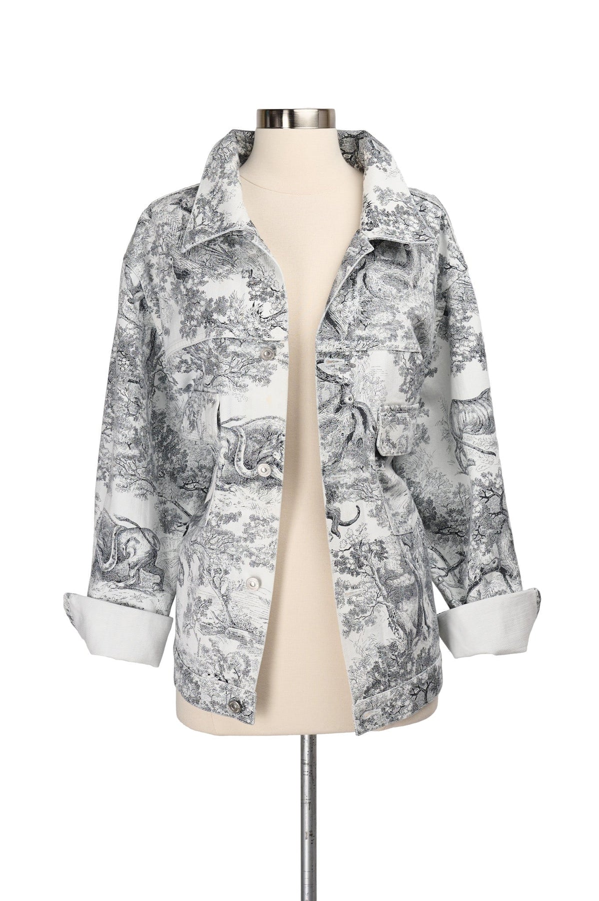 Christian Dior Toile de Jouy Denim Jacket in white and grey