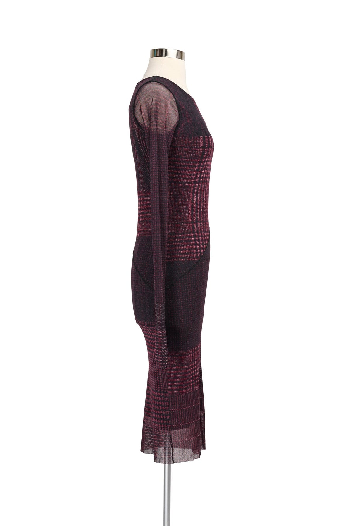 Fuzzi Plaid Print Mesh Dress in black and maroon