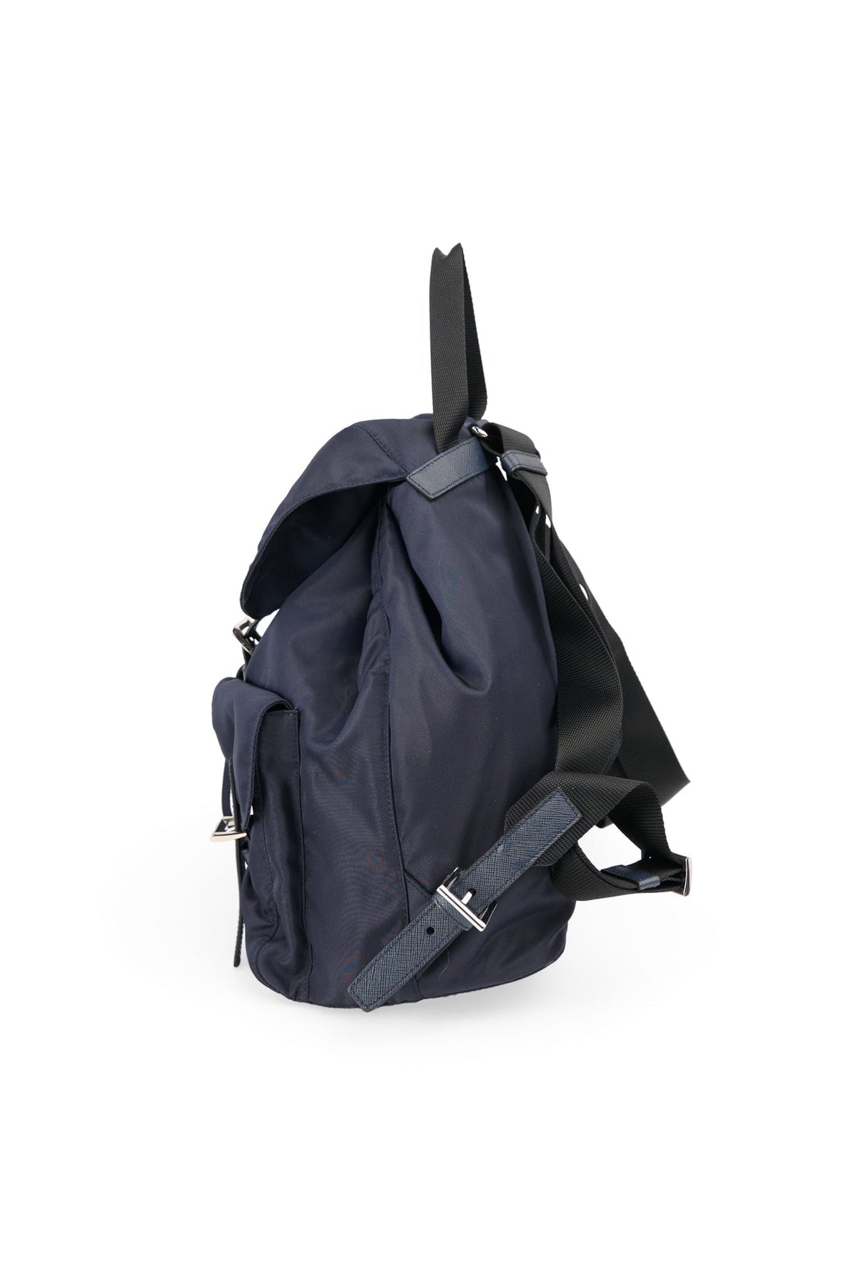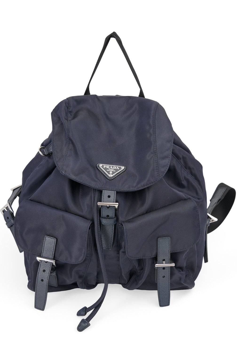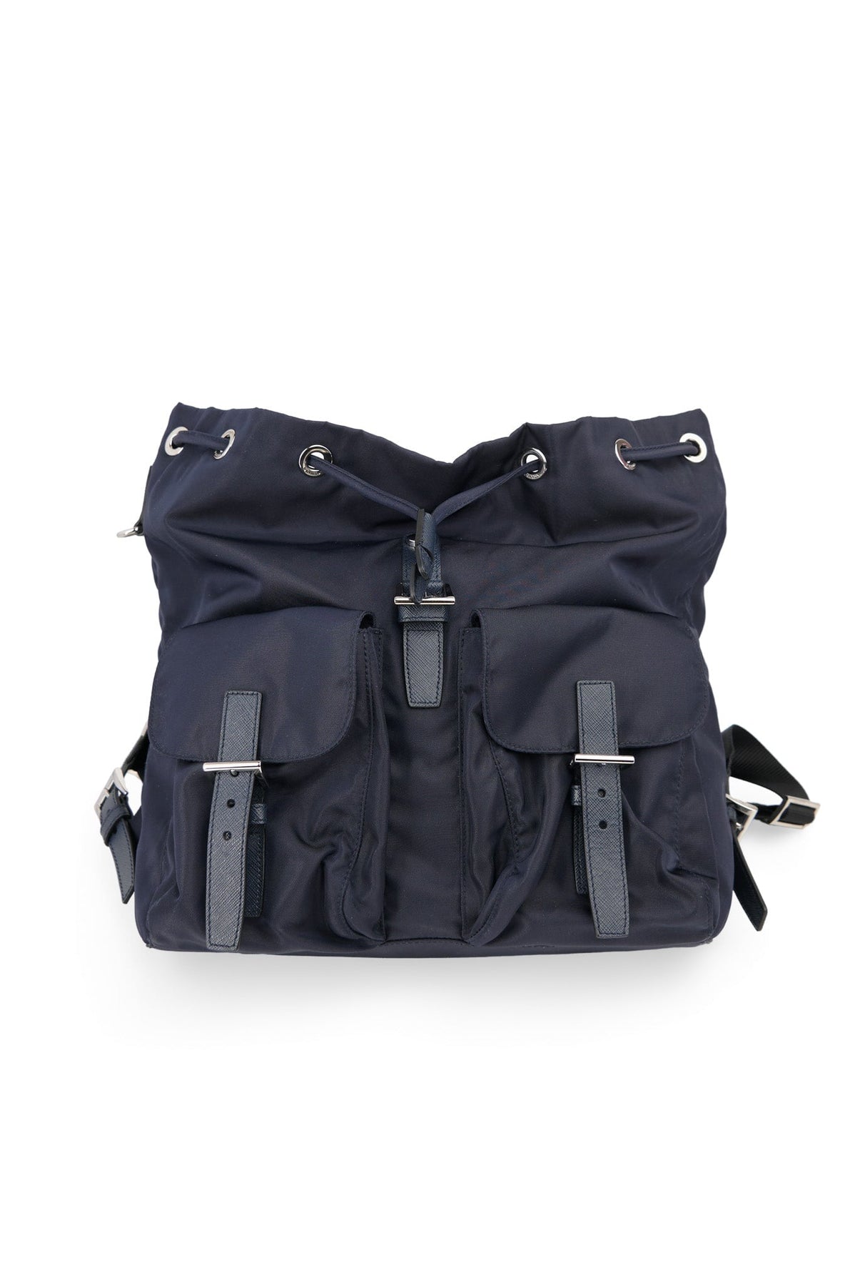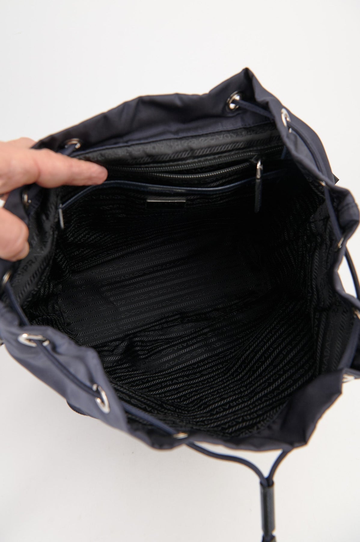 Black nylon logo interior with one zipper pocket and one magnetic pocket