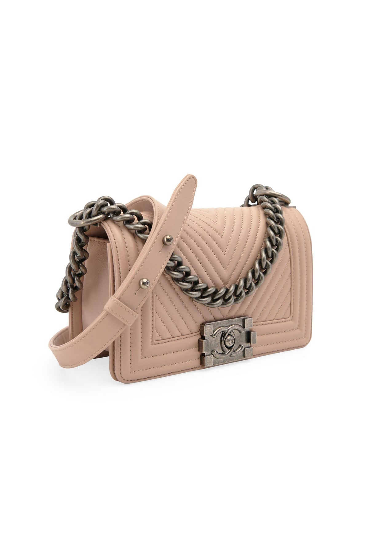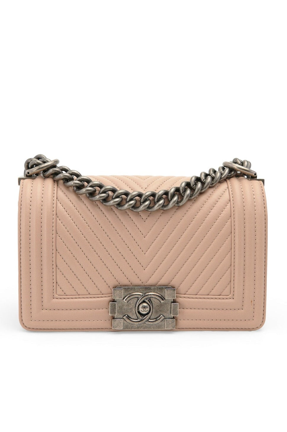 Pre-loved Chanel Small Boy Bag in beige