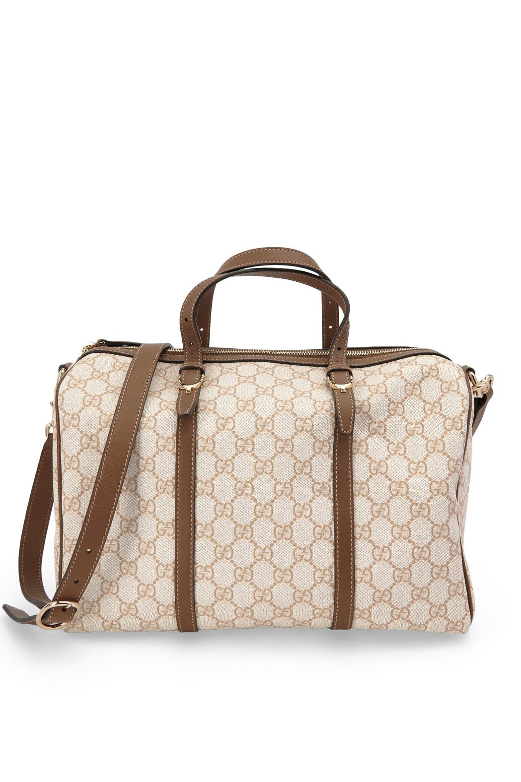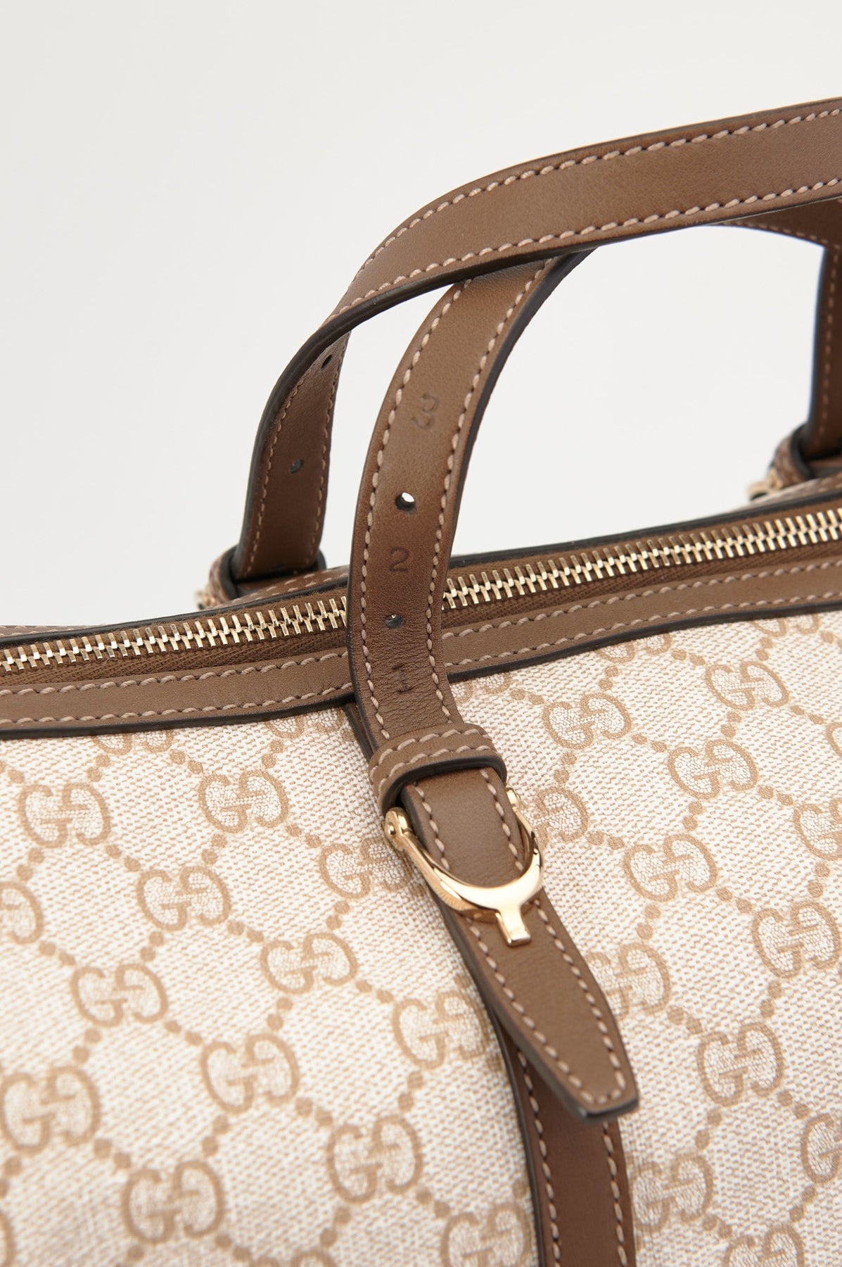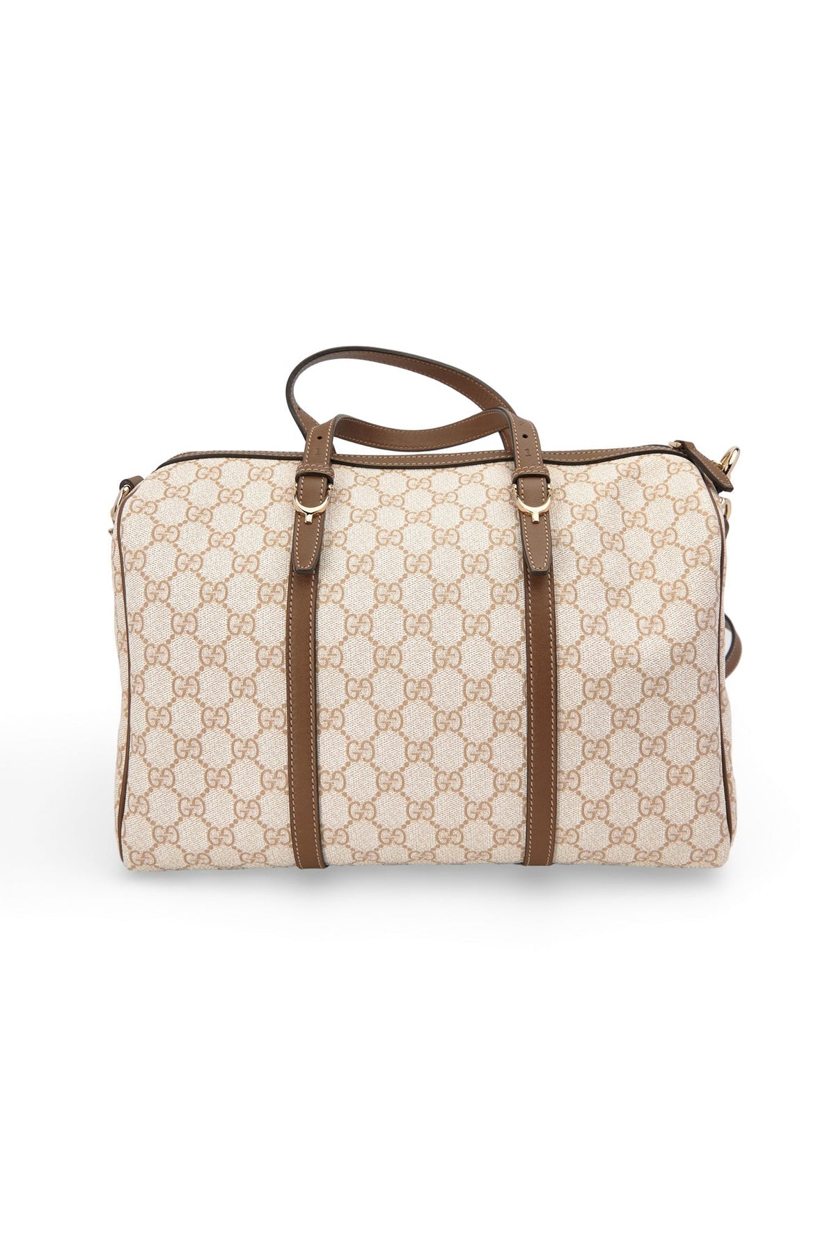 Pre-loved Gucci Supreme GG Boston Bag in beige and brown