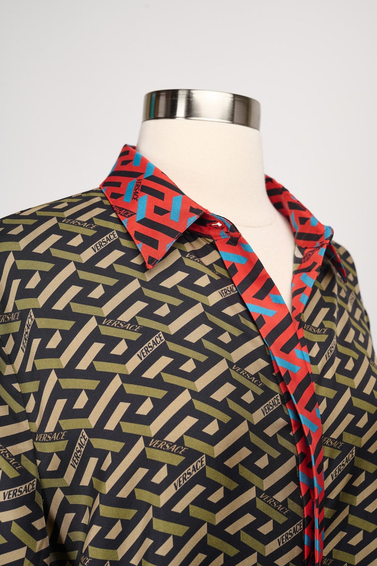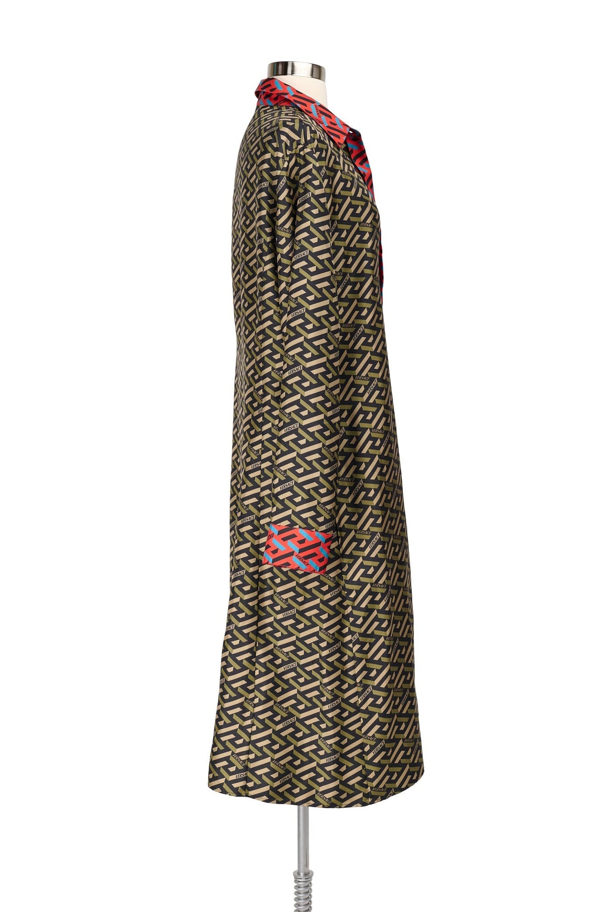 Versace Logo Shirt Dress in olive and red