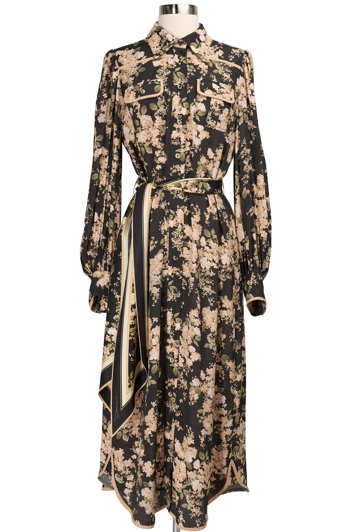 Zimmermann Maxi Shirt Dress in black and beige