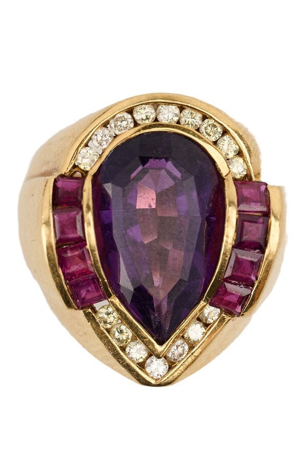 18k Gold Pear Shape Amethyst Cocktail Ring
