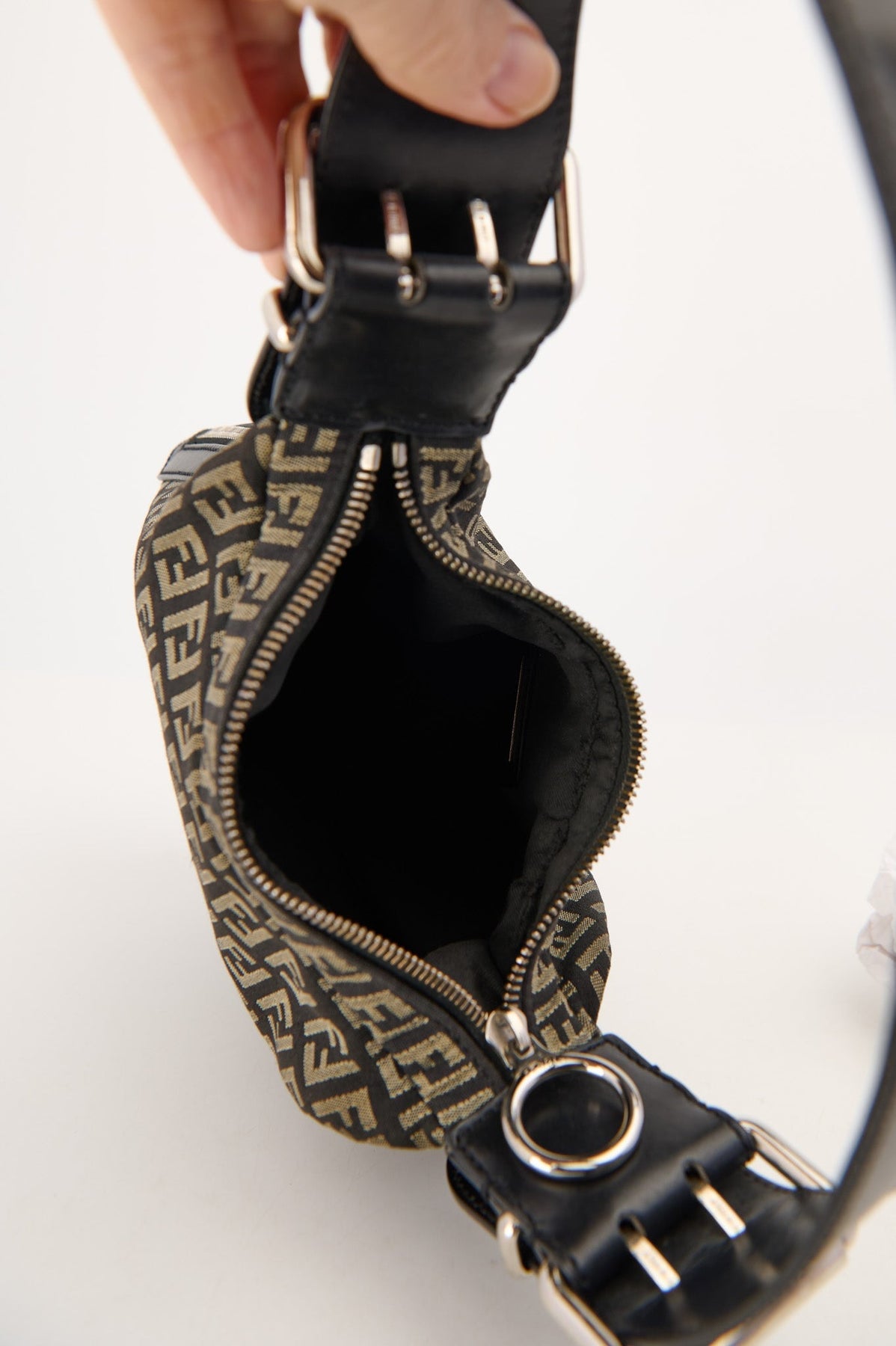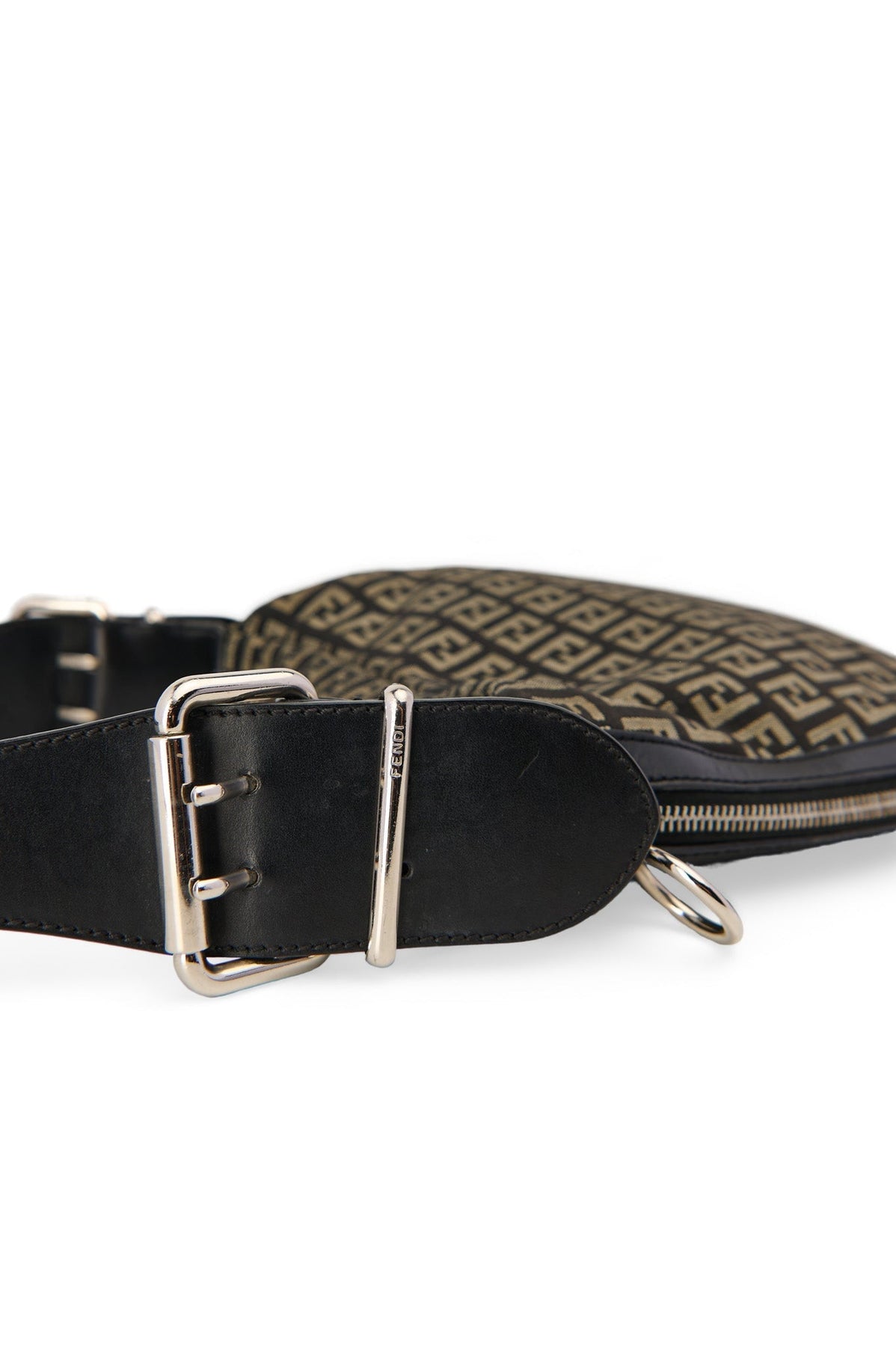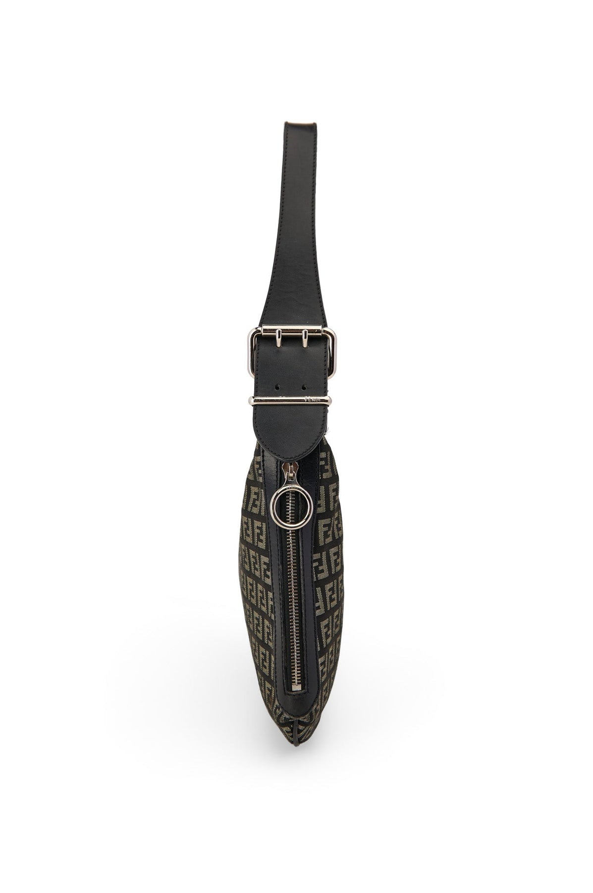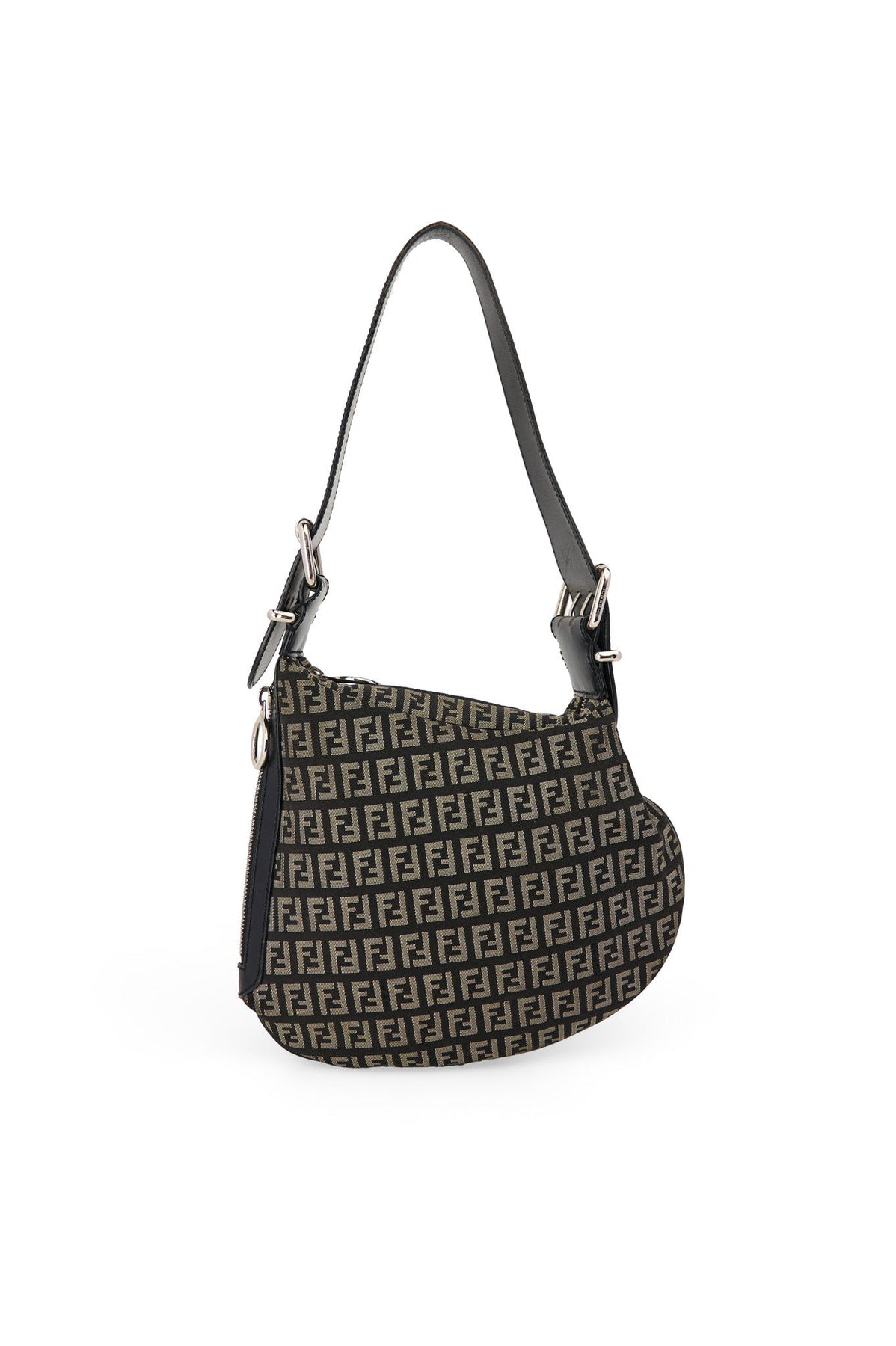 Fendi Zucca Fabric Saddle Hobo Bag in black and grey