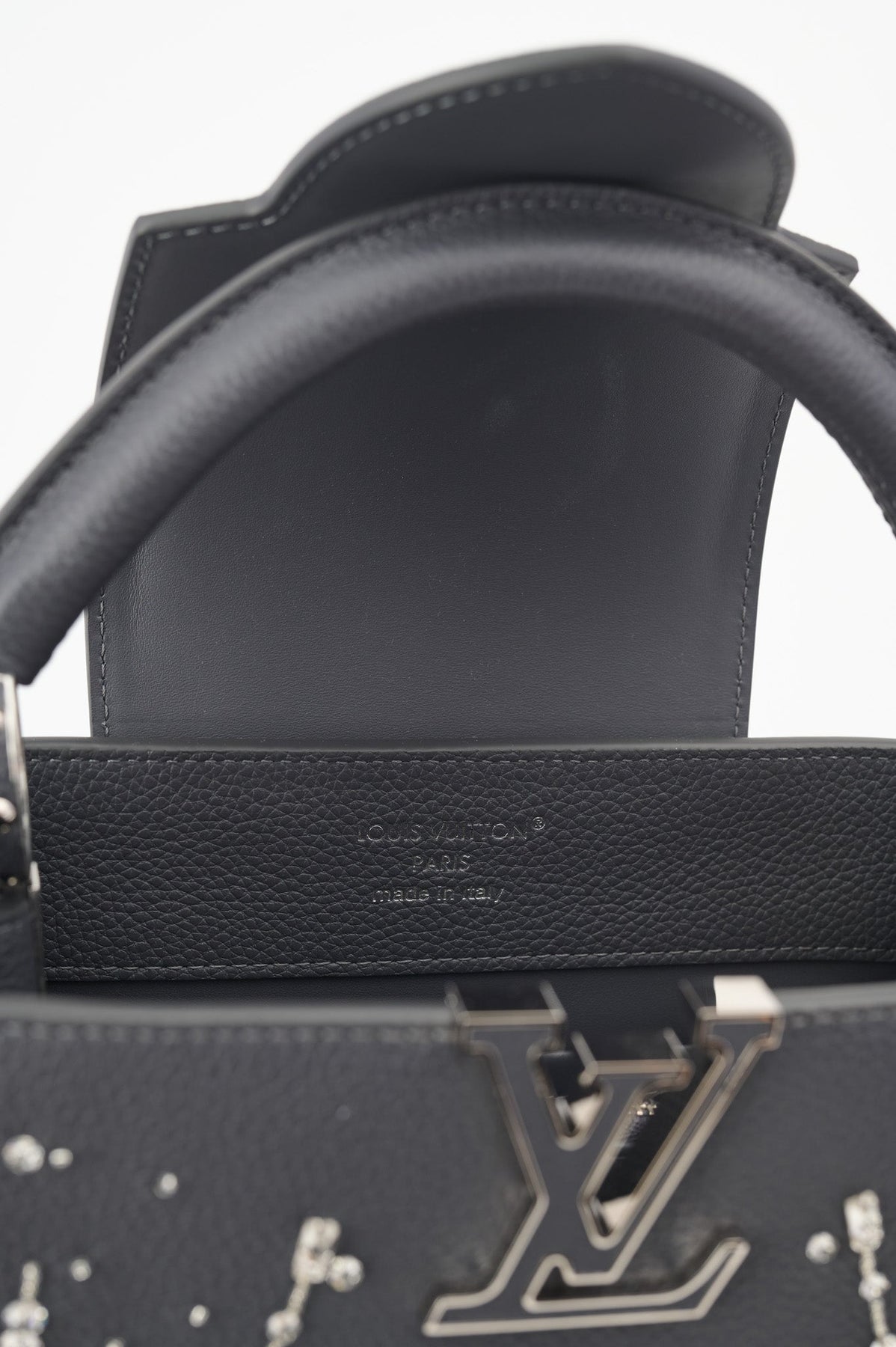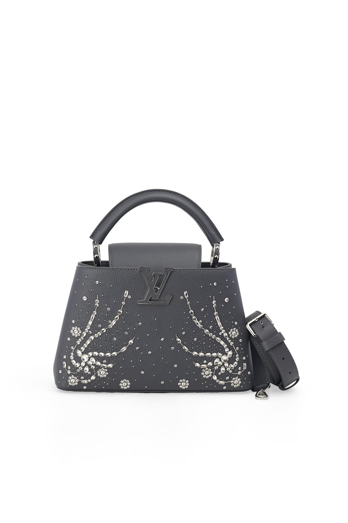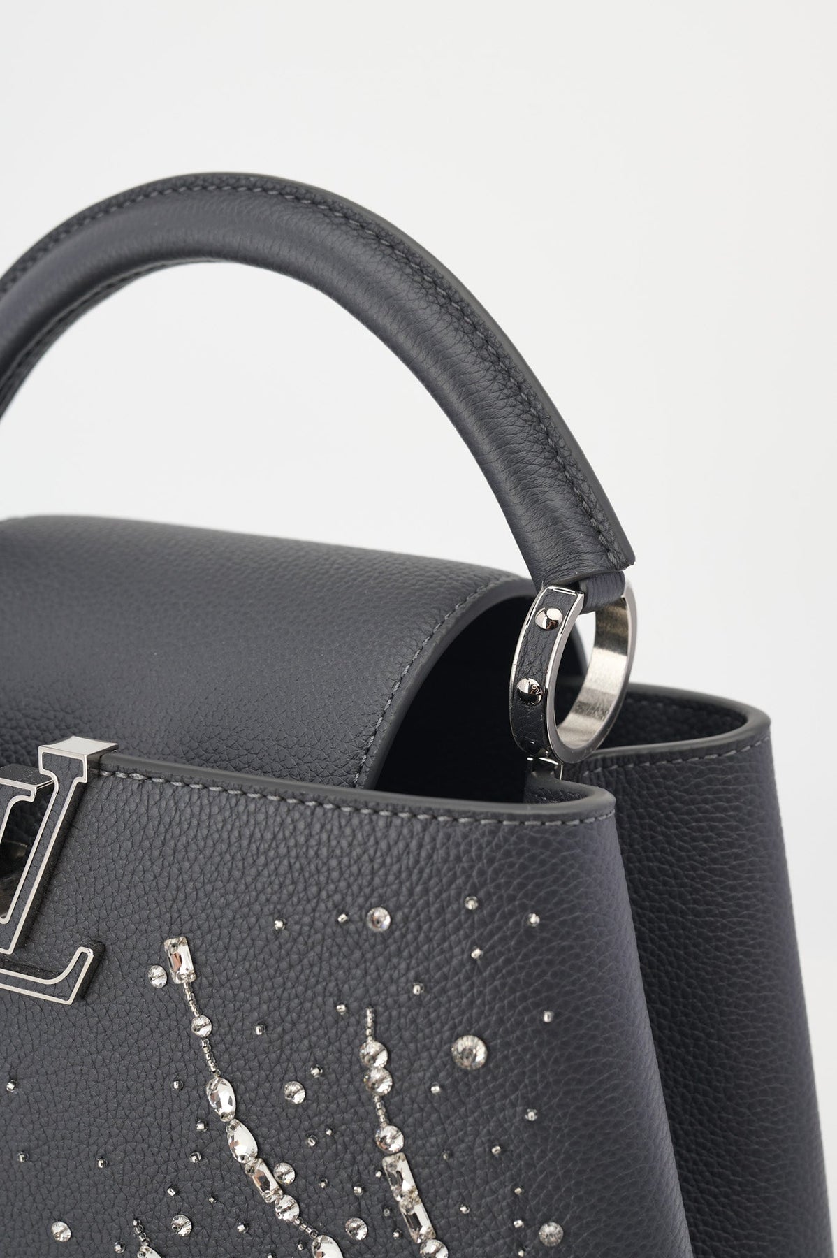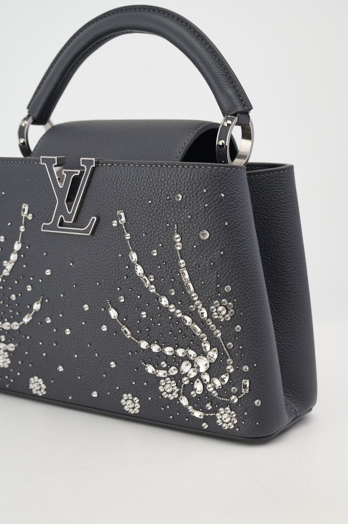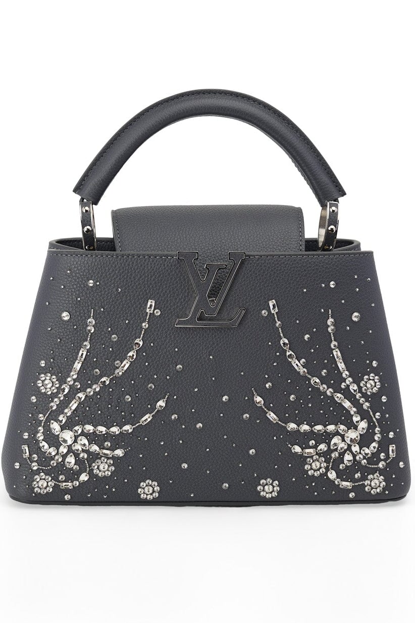 Pre-loved Louis Vuitton Rhinestone Embellished Capucines BB Bag in charcoal