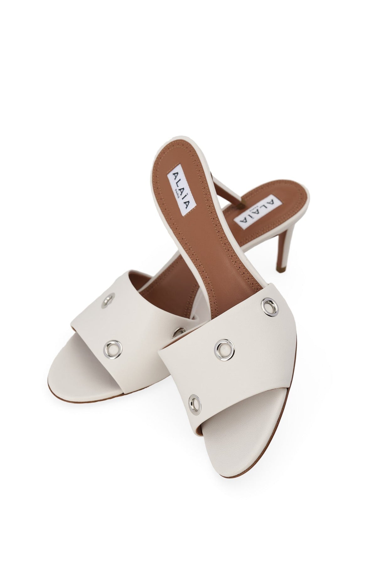 Alaia Oeillets Leather Sandals in white
