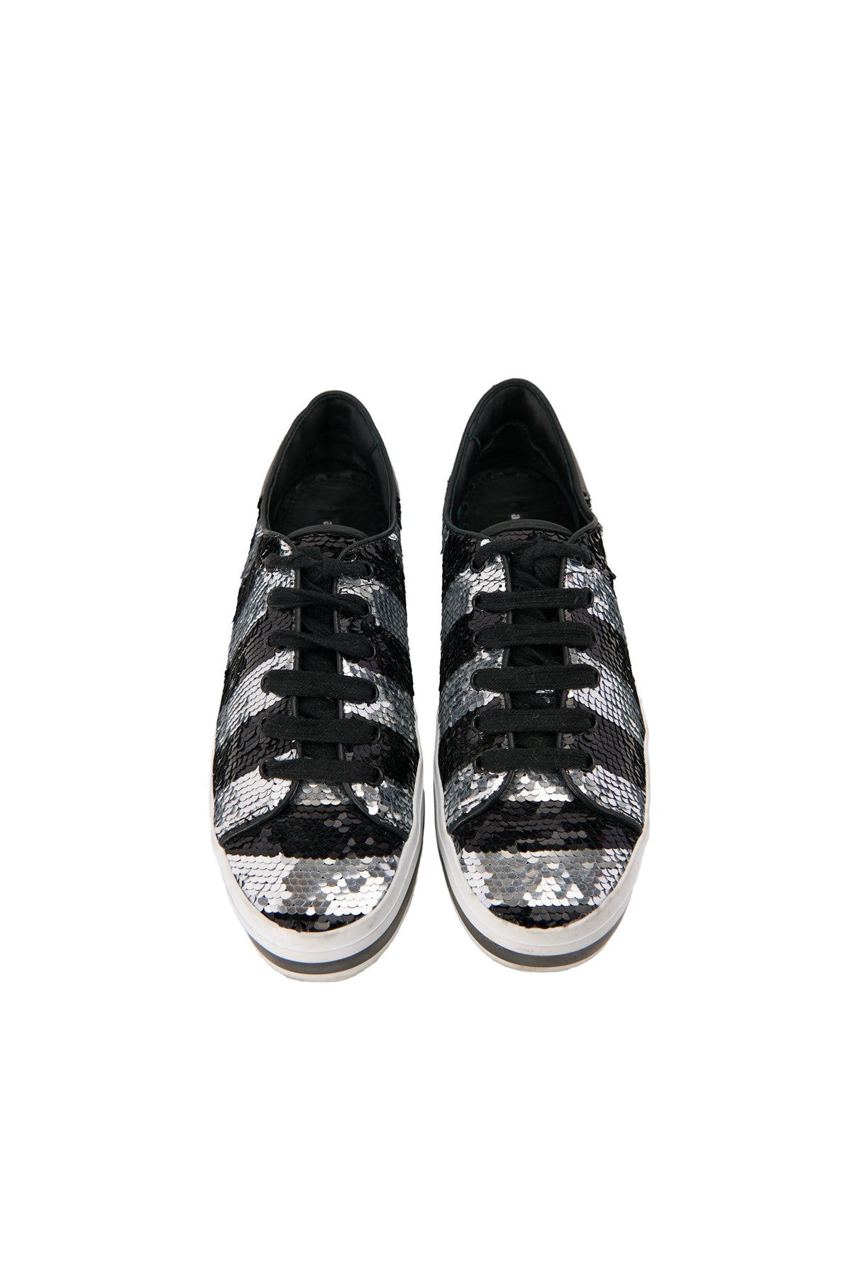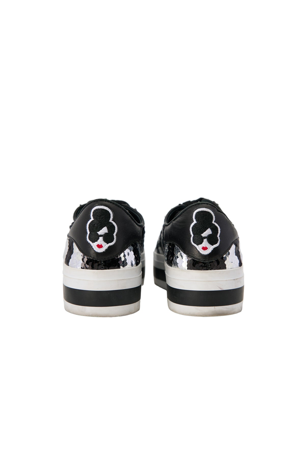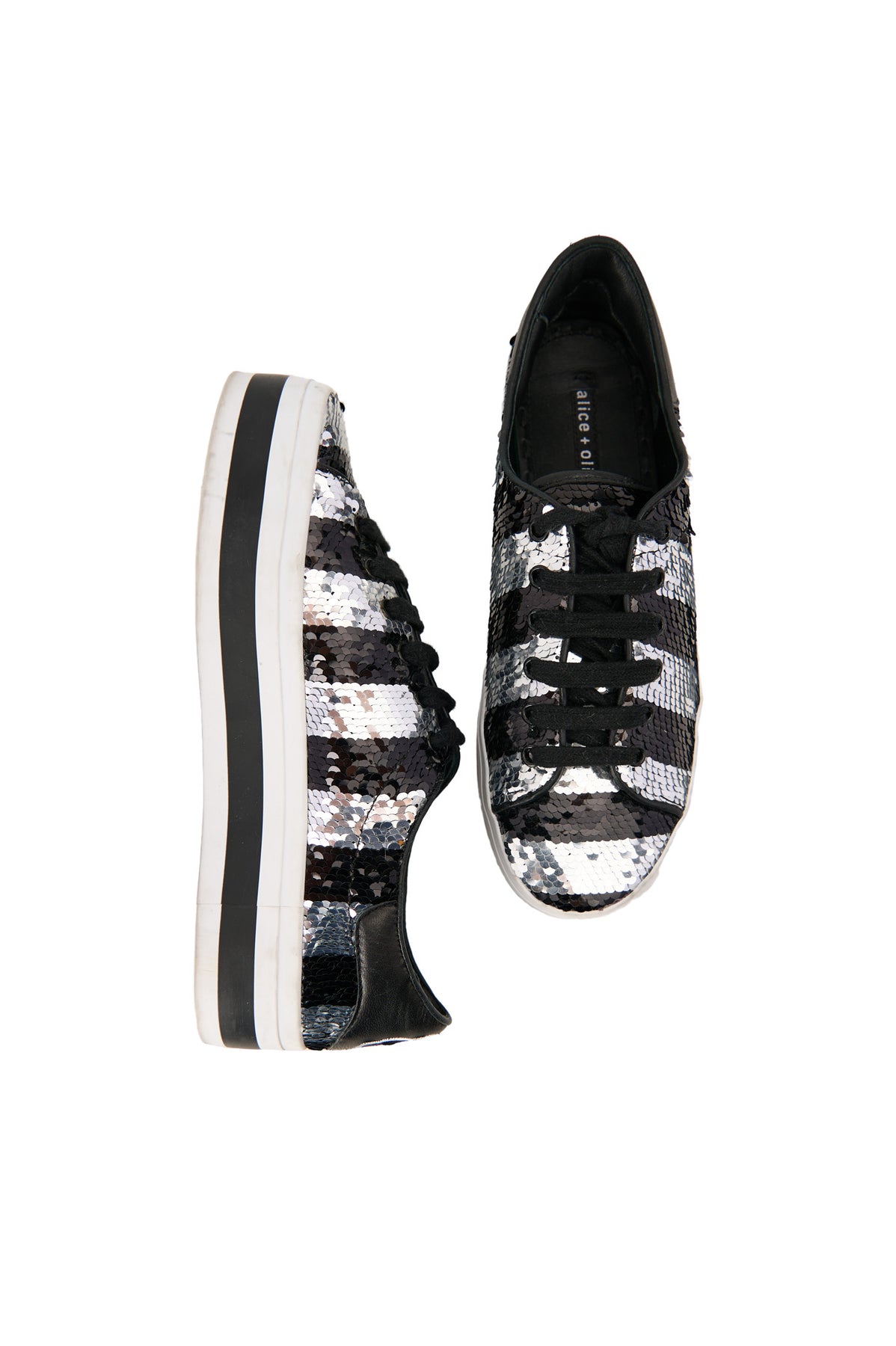 Alice + Olivia Sequin Platform Sneakers in black and silver