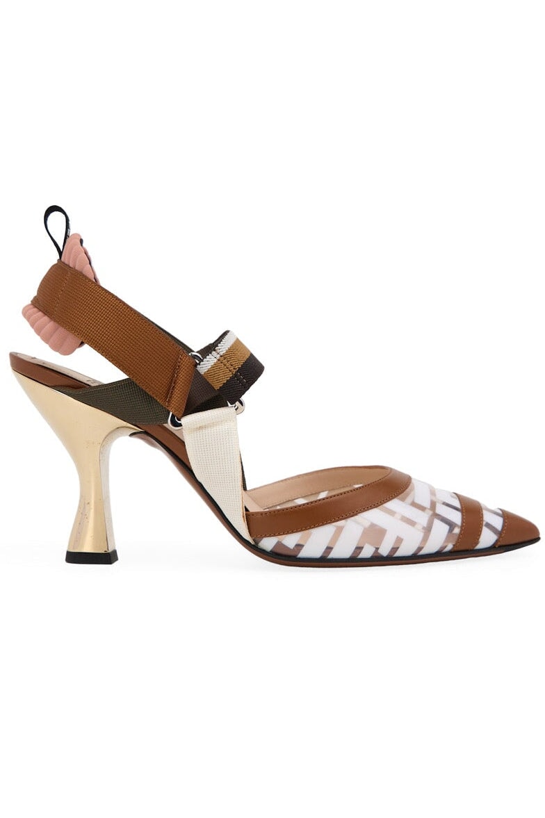 Fendi Zucca Heels in brown and white