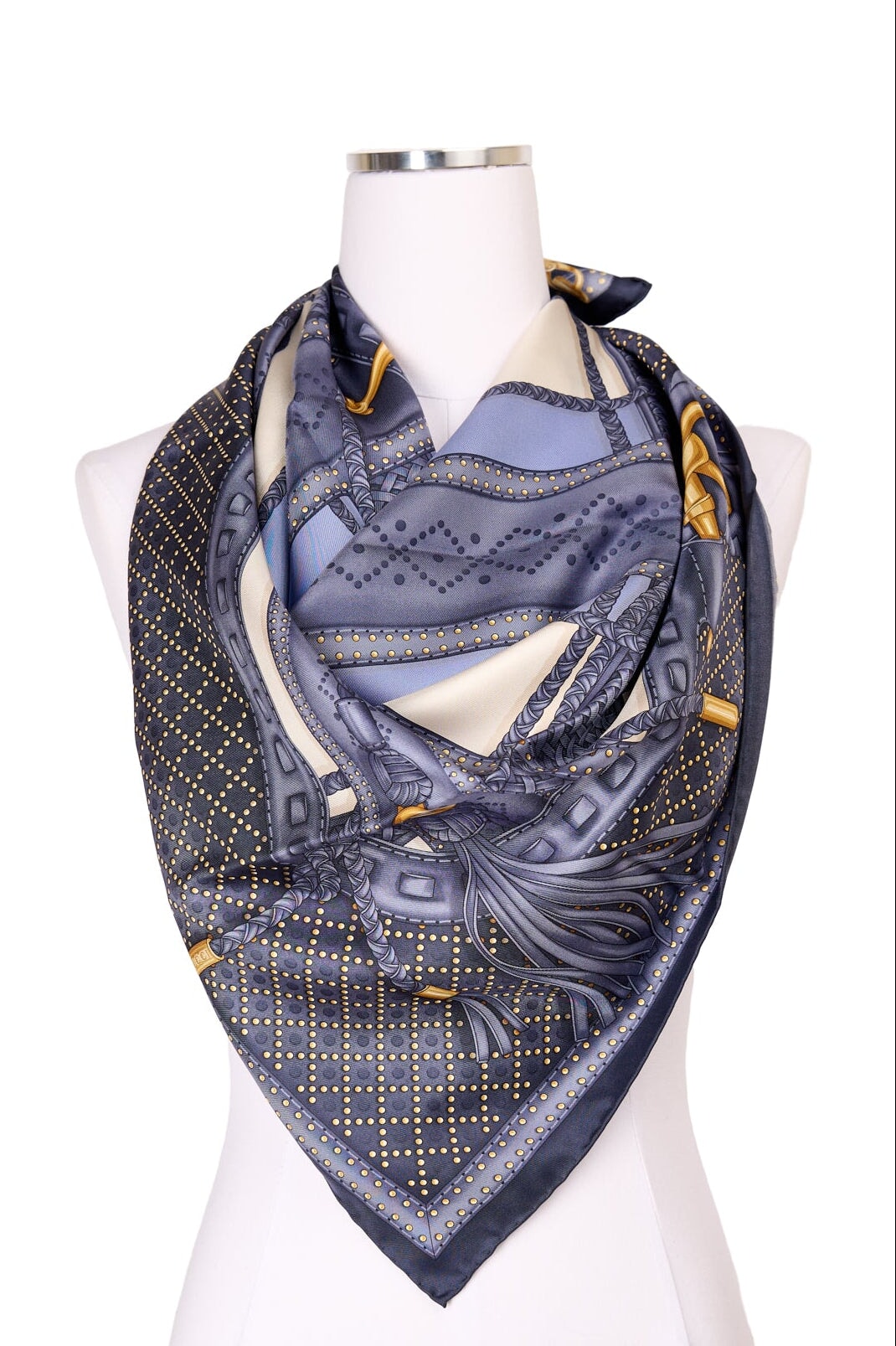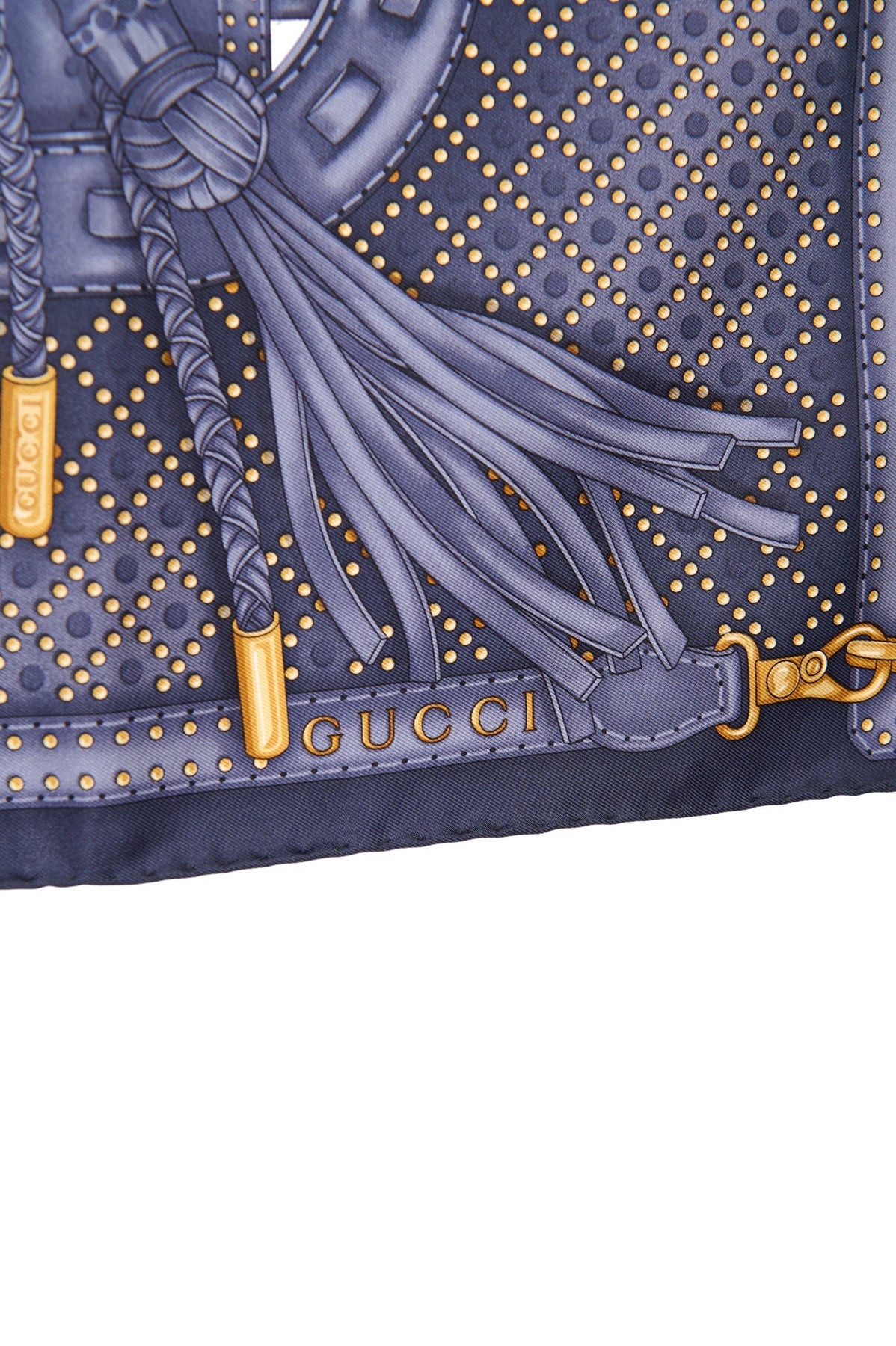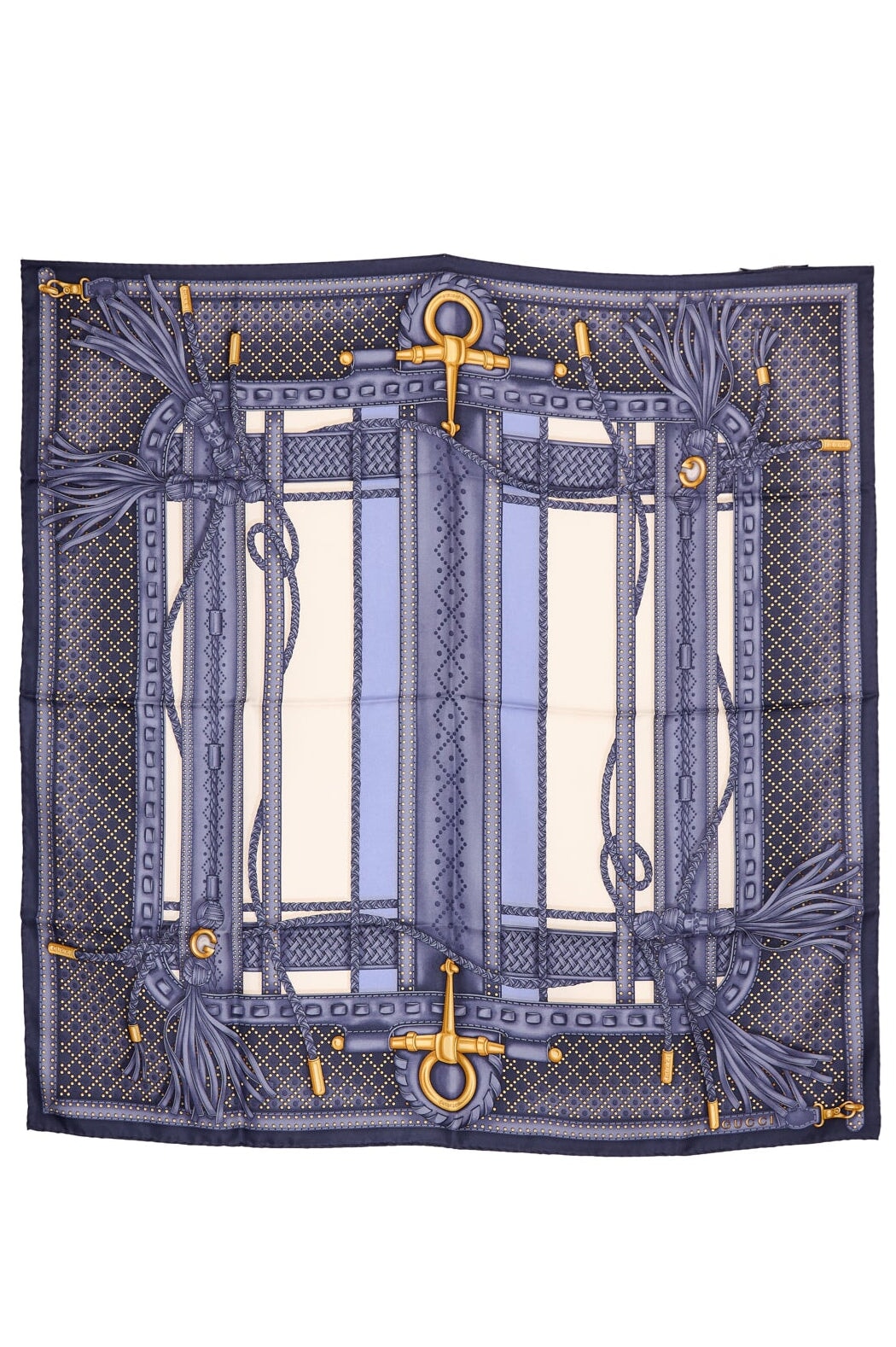 Pre-loved Gucci Horsebit Scarf in blue, white and gold