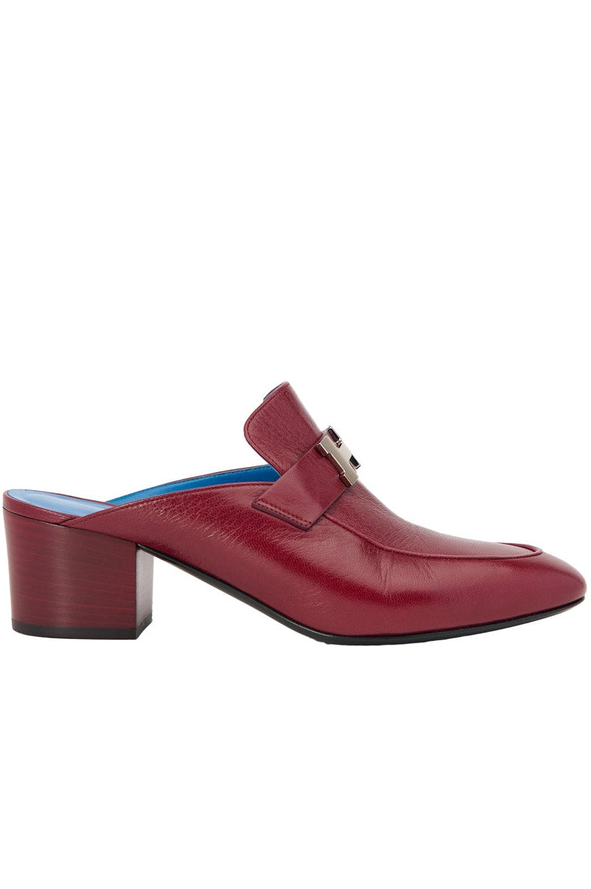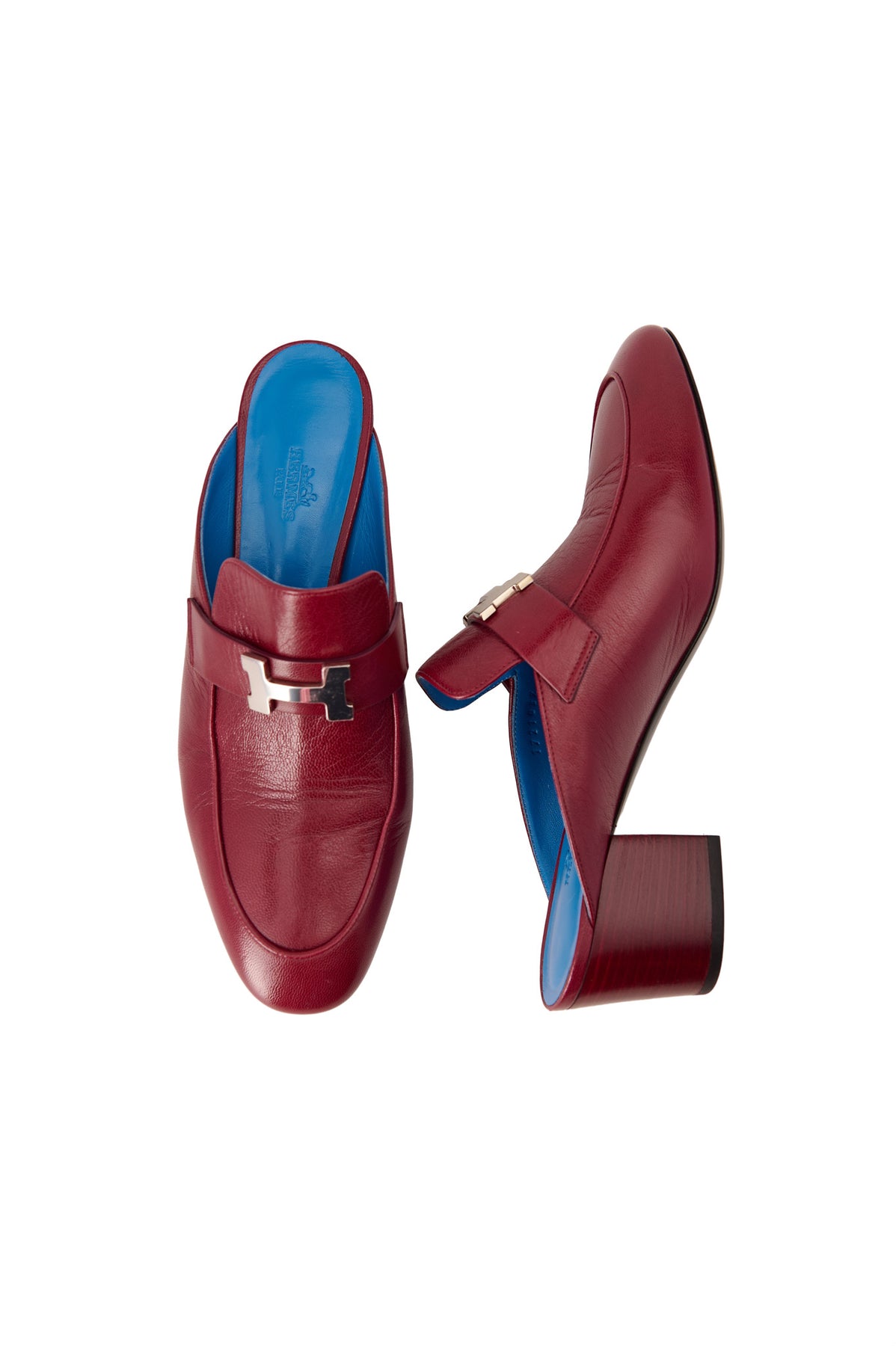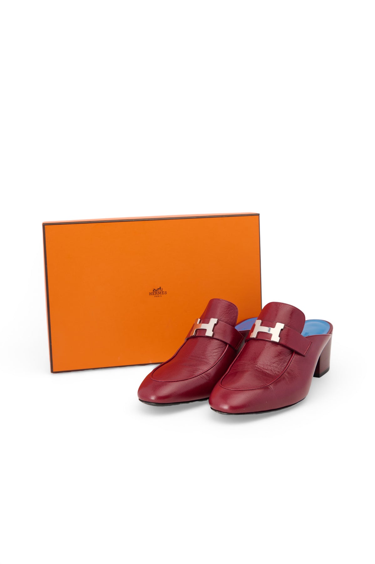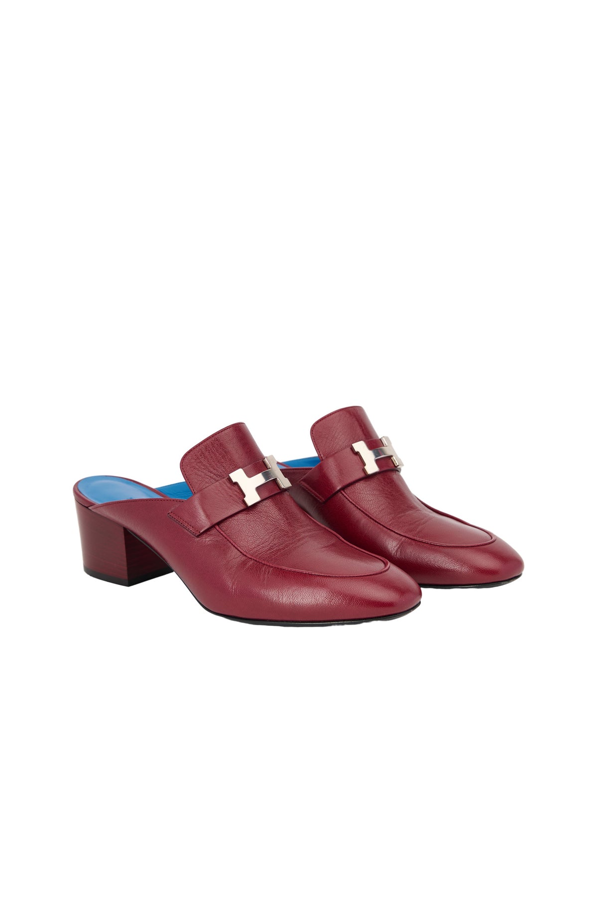Pre-loved Hermes Paradise H Logo Mules in burgundy
