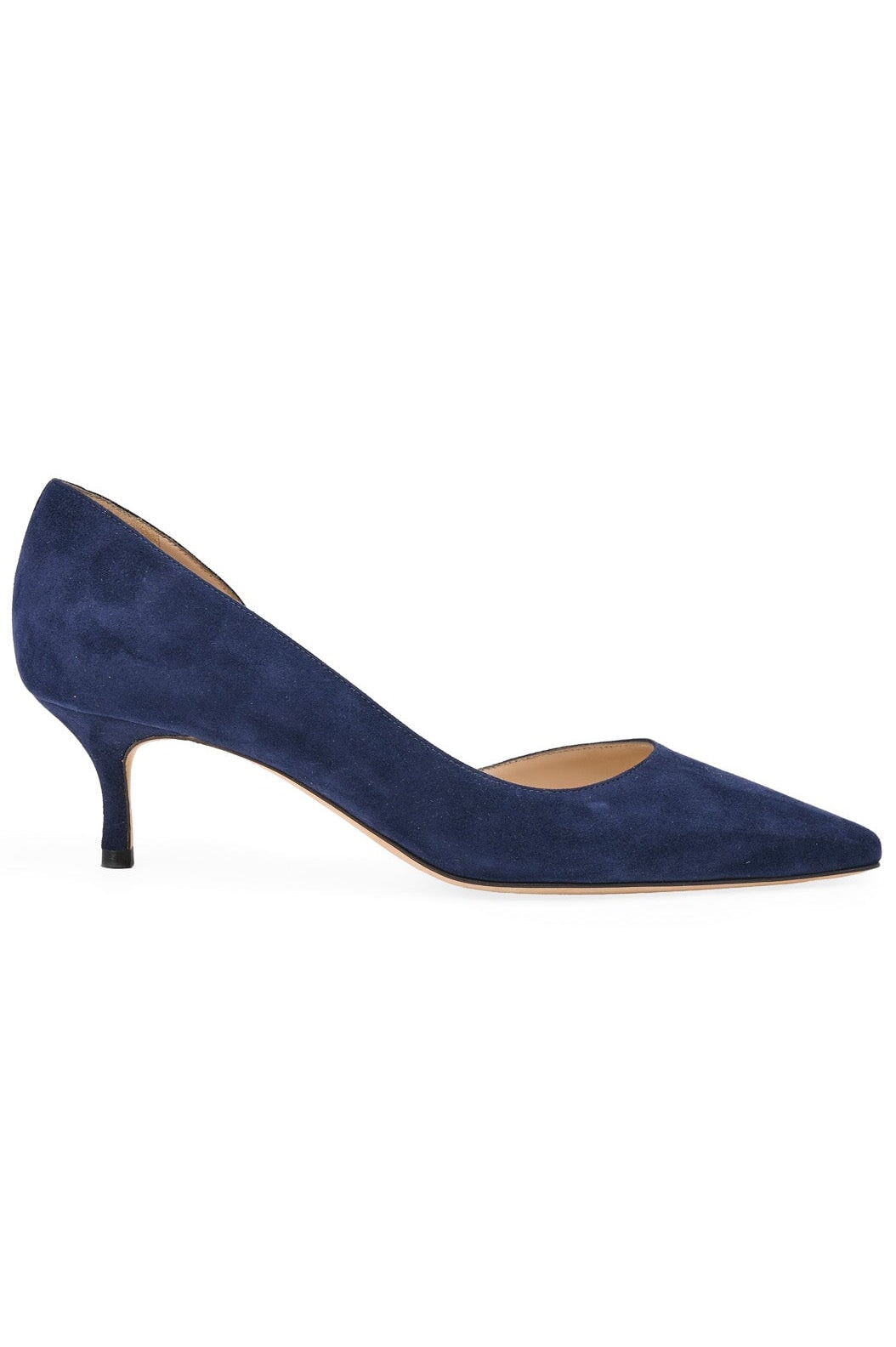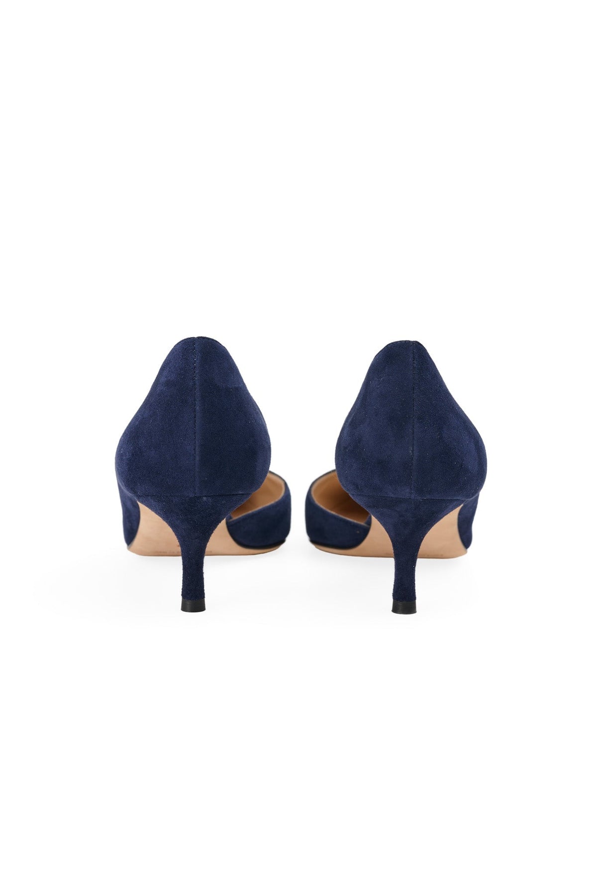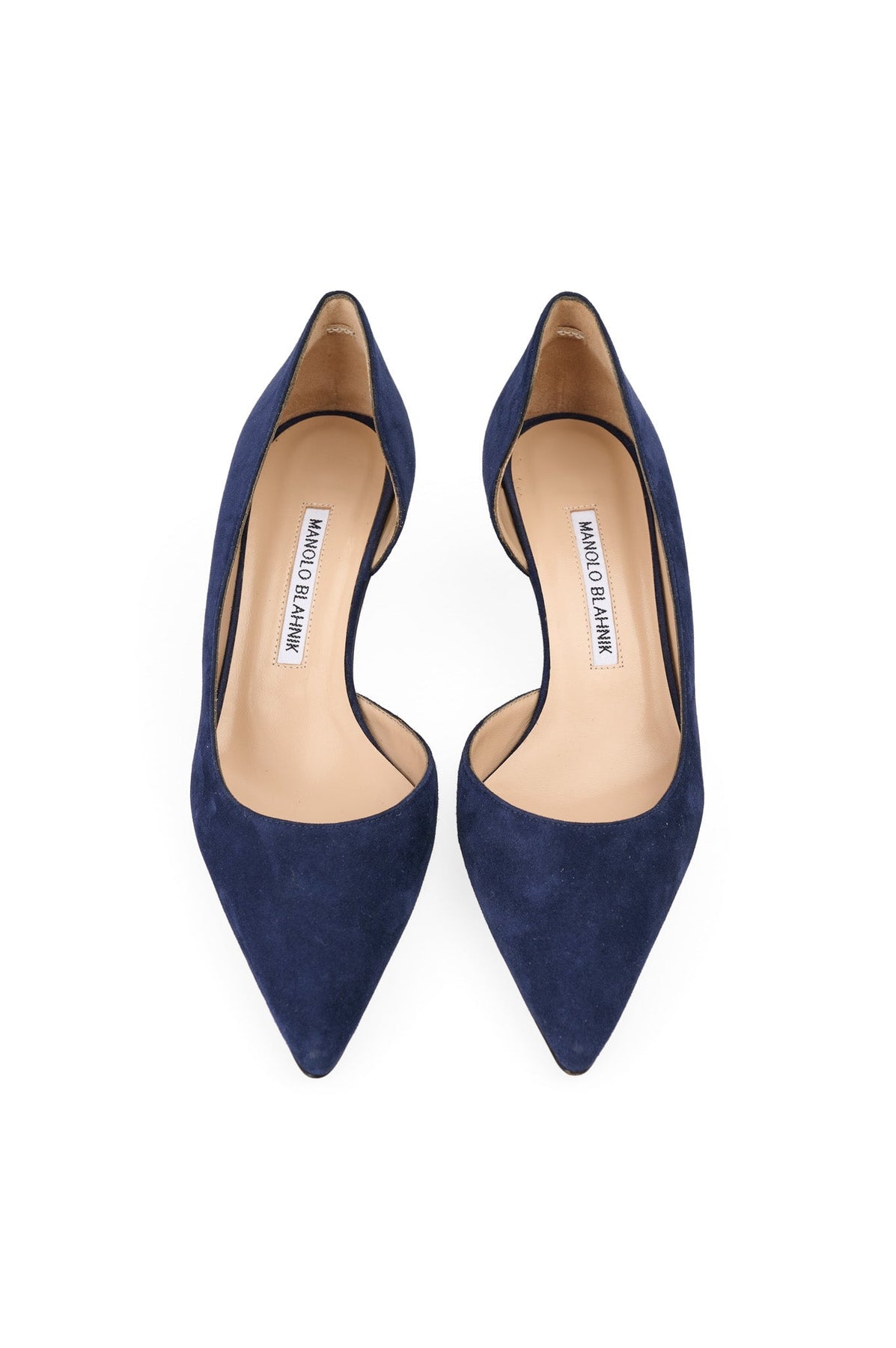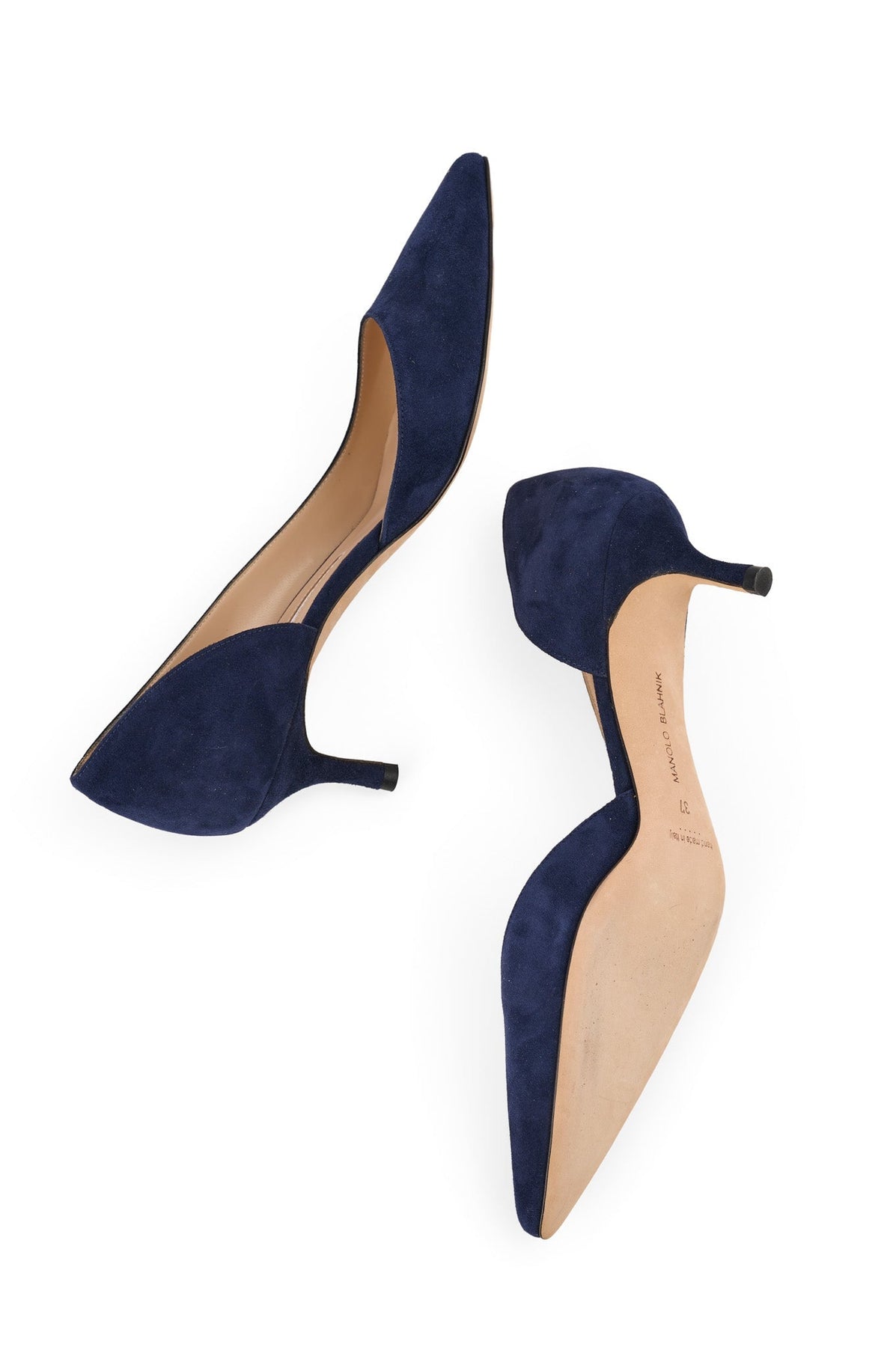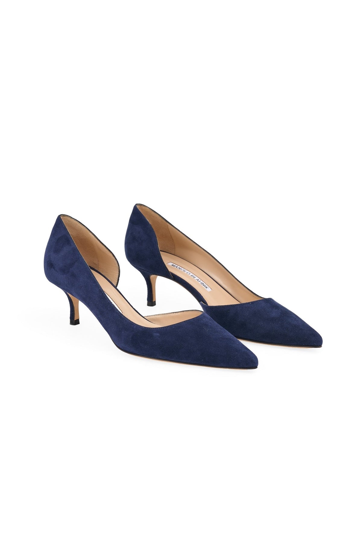Manolo Blahnik D'Orsay Kitten Heel Pumps in navy