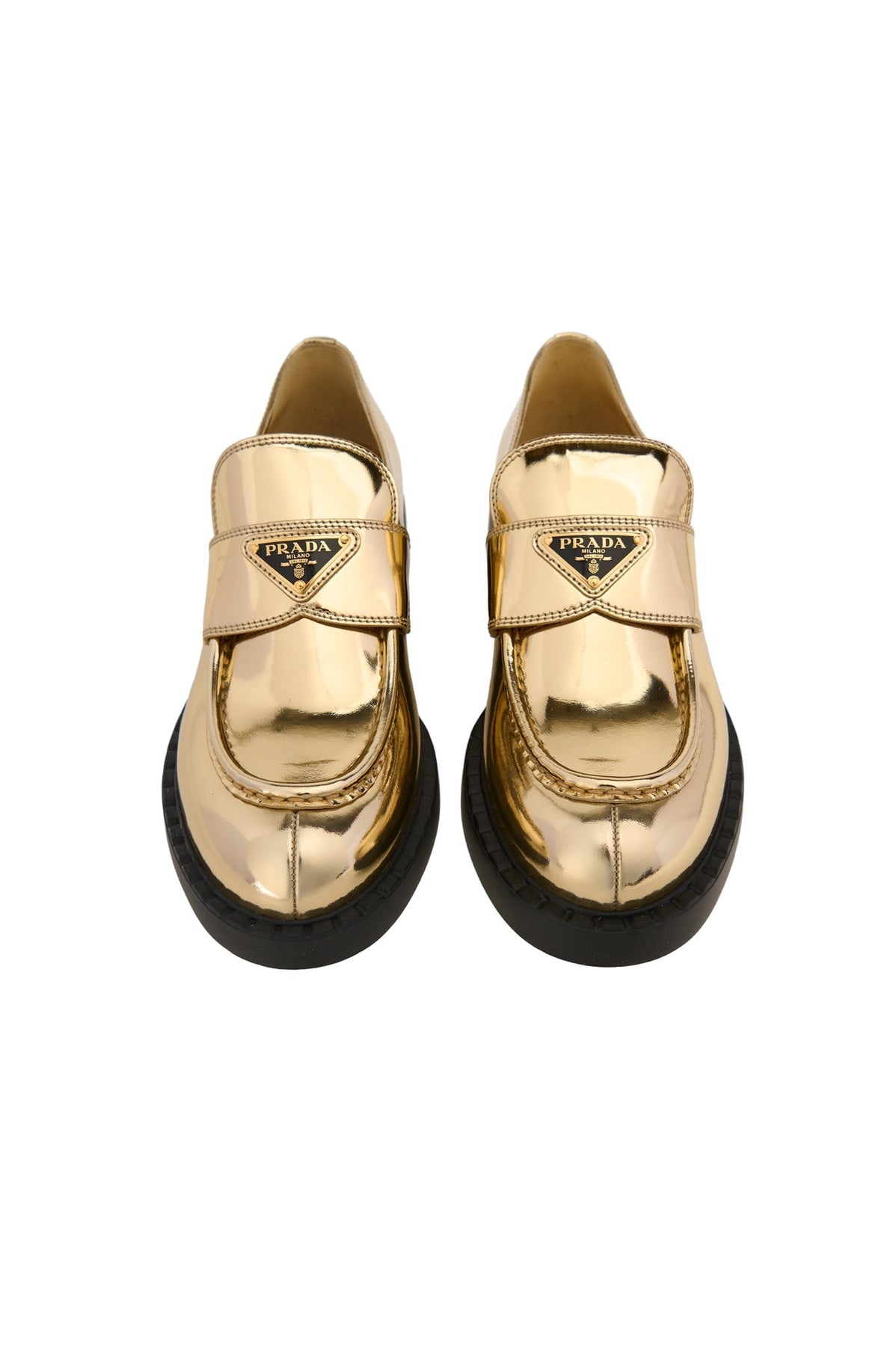 Prada Metallic Leather Loafers in gold