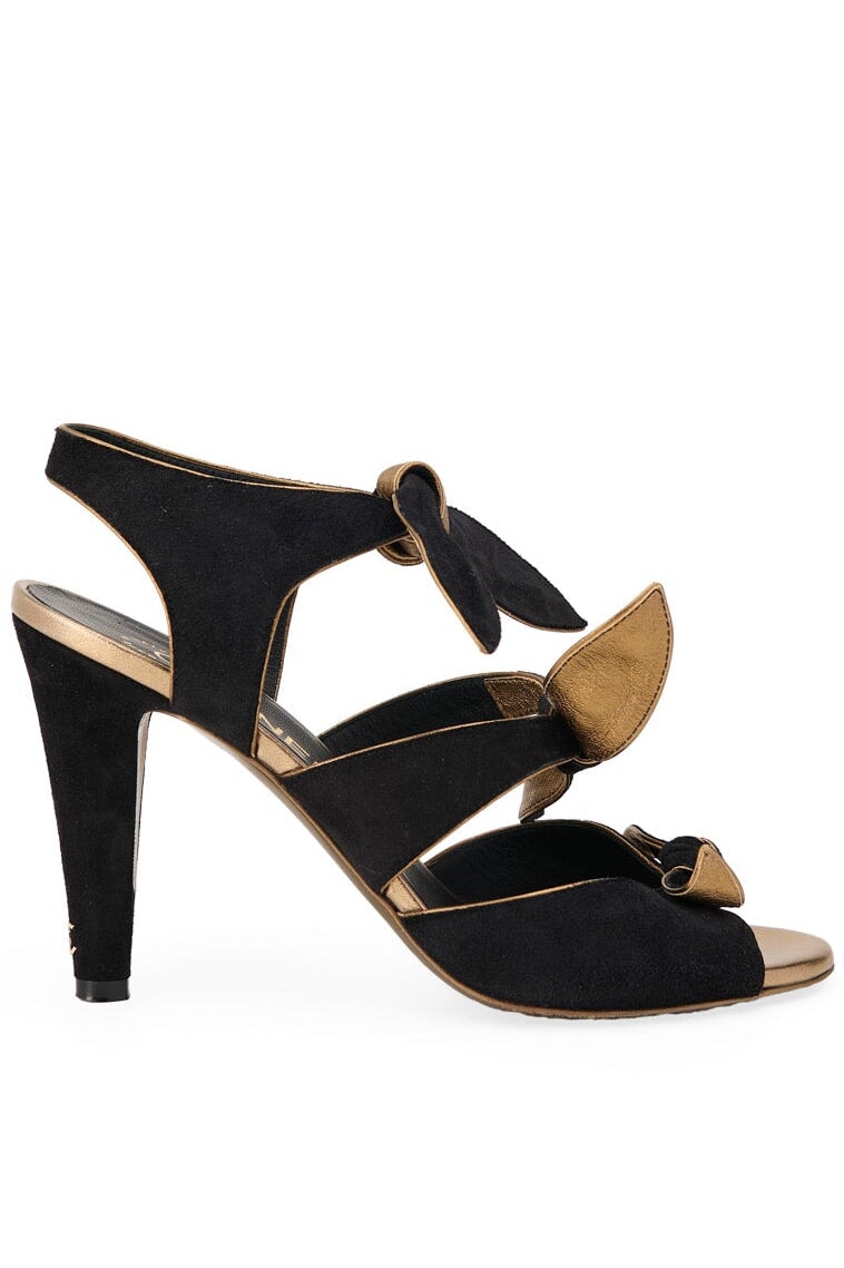 Pre-loved Chanel Bow Suede Slingback in black and gold