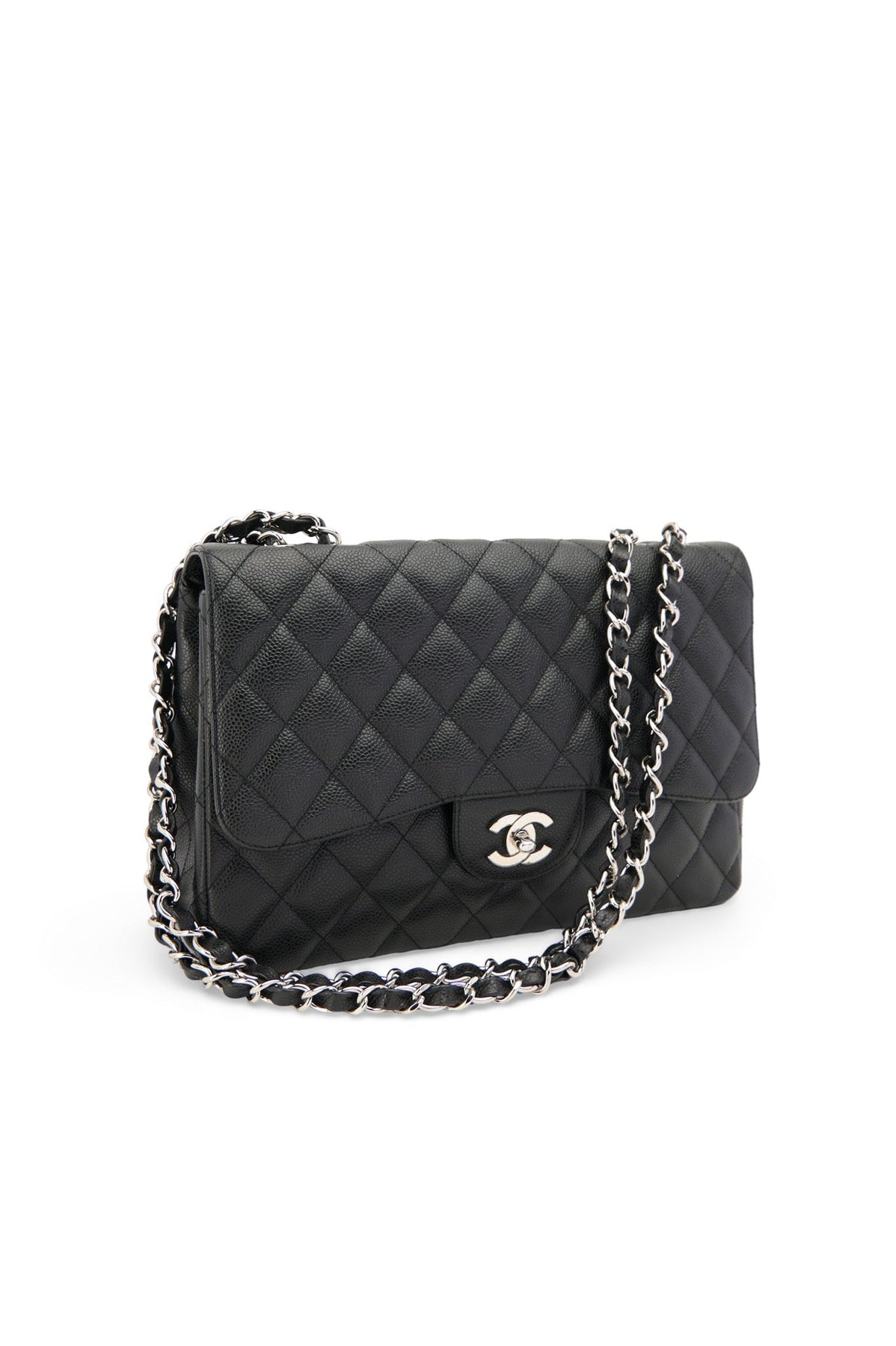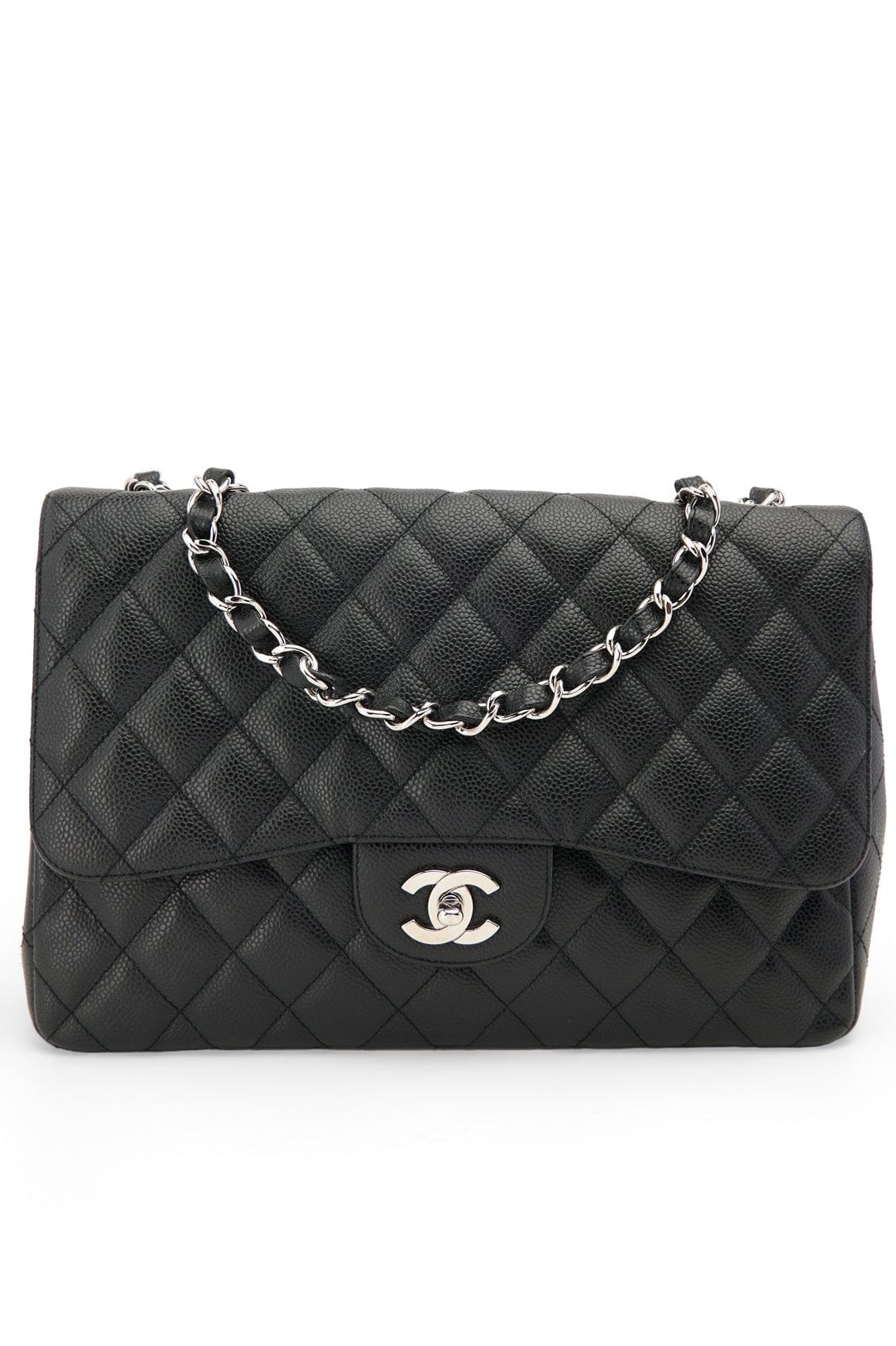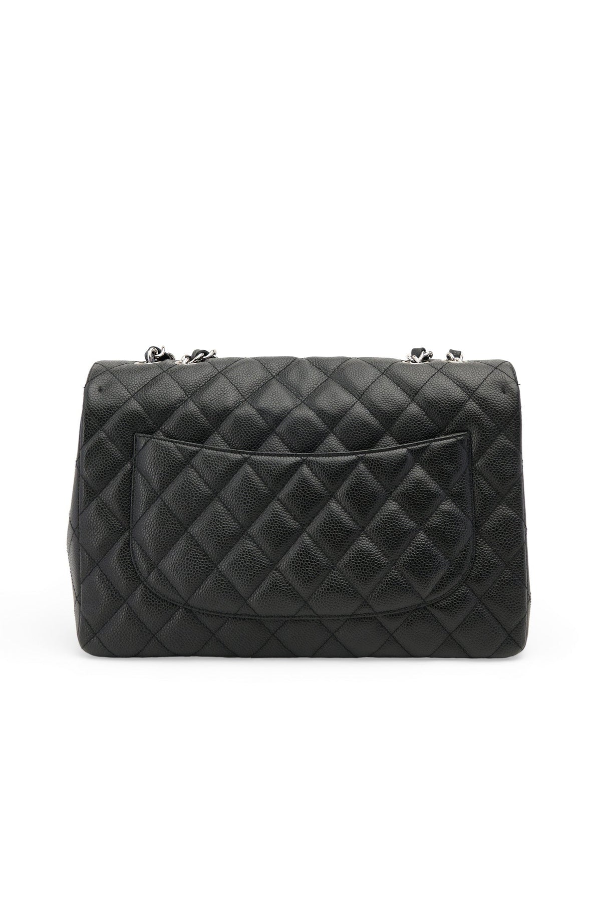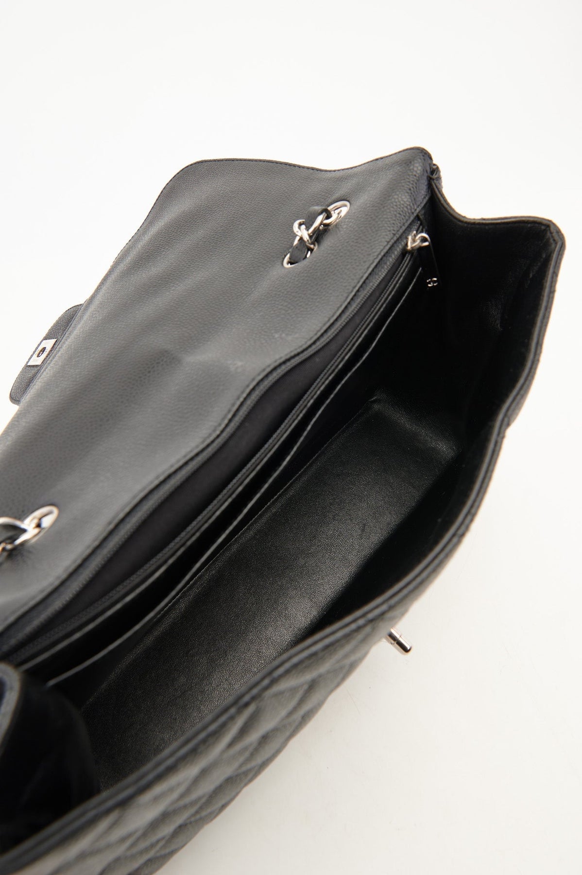 Pre-loved Chanel Caviar Jumbo Single Flap Bag in black
