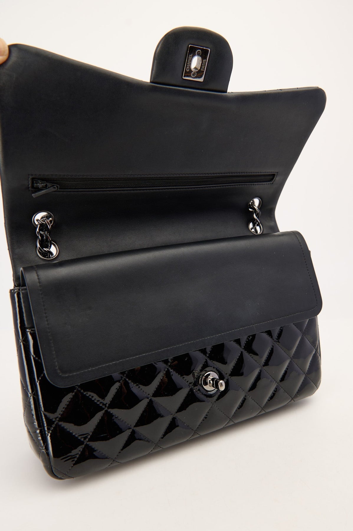 Quilted patent leather
