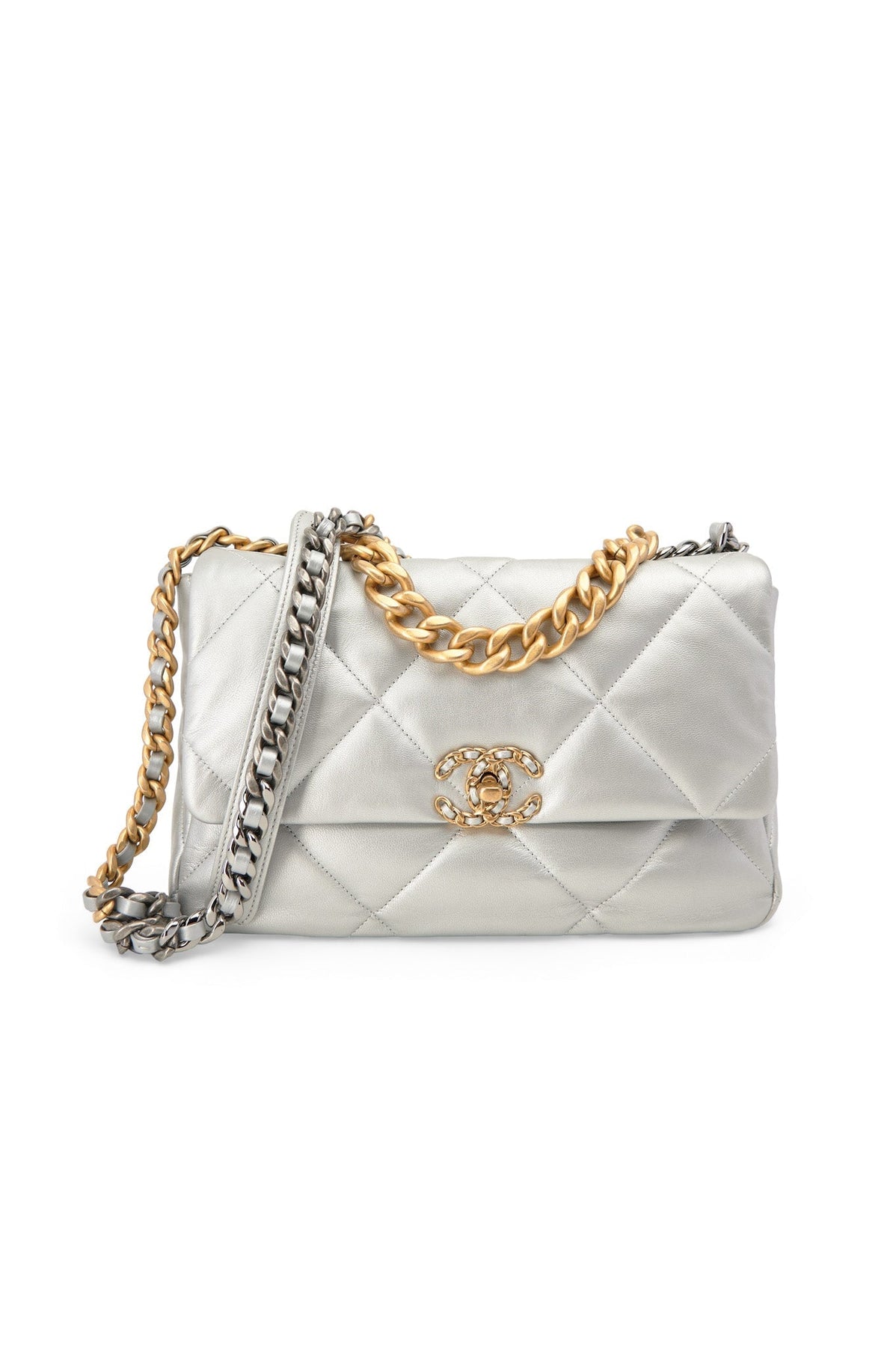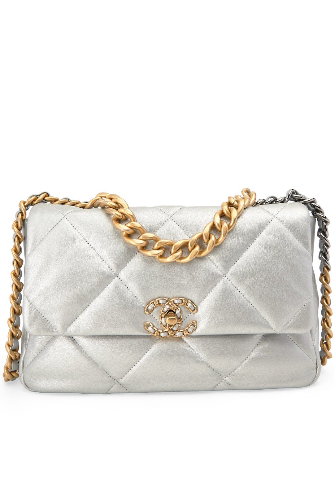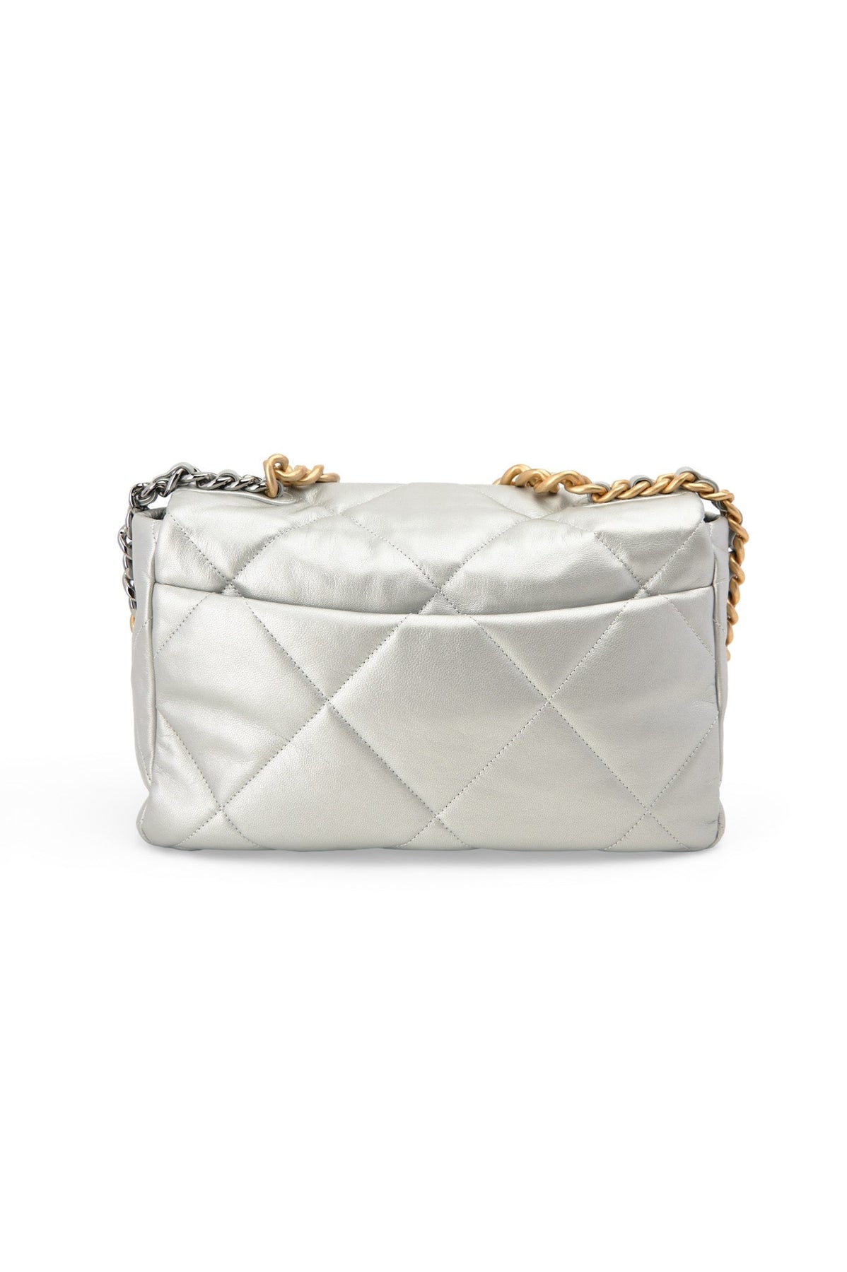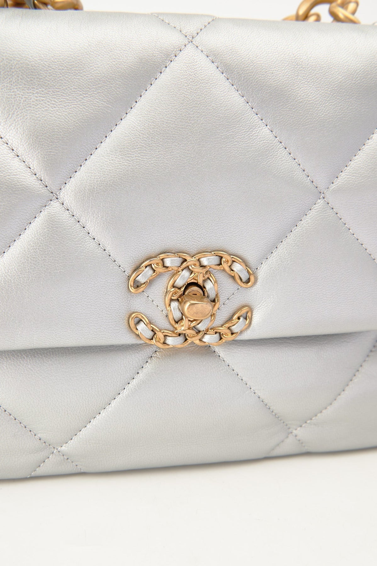 Pre-loved Chanel Large 19 Flap Bag in silver