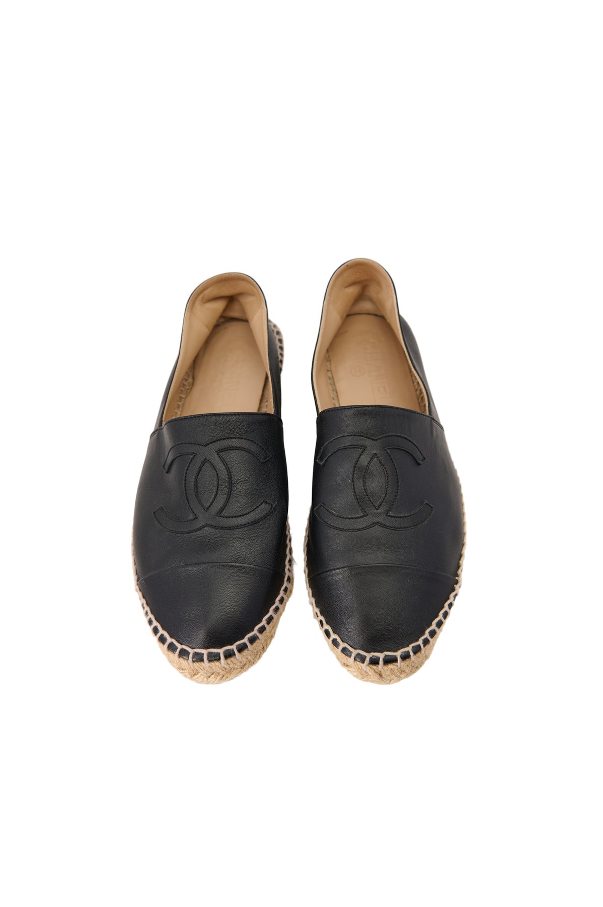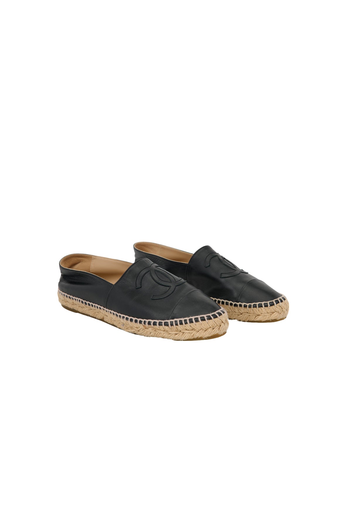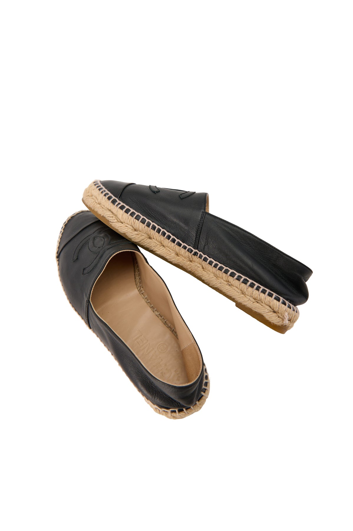 Pre-loved Chanel Leather CC Espadrilles in black