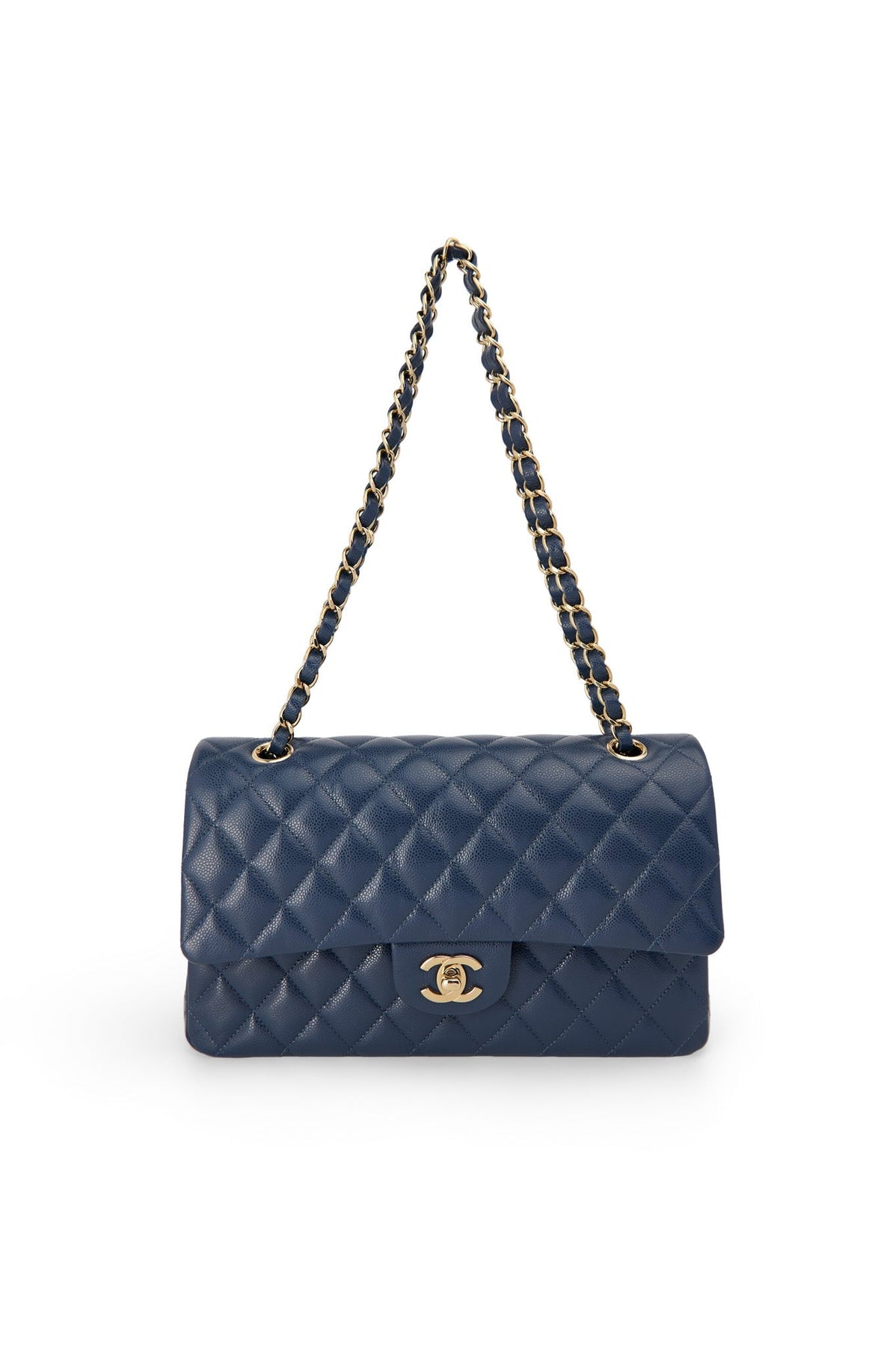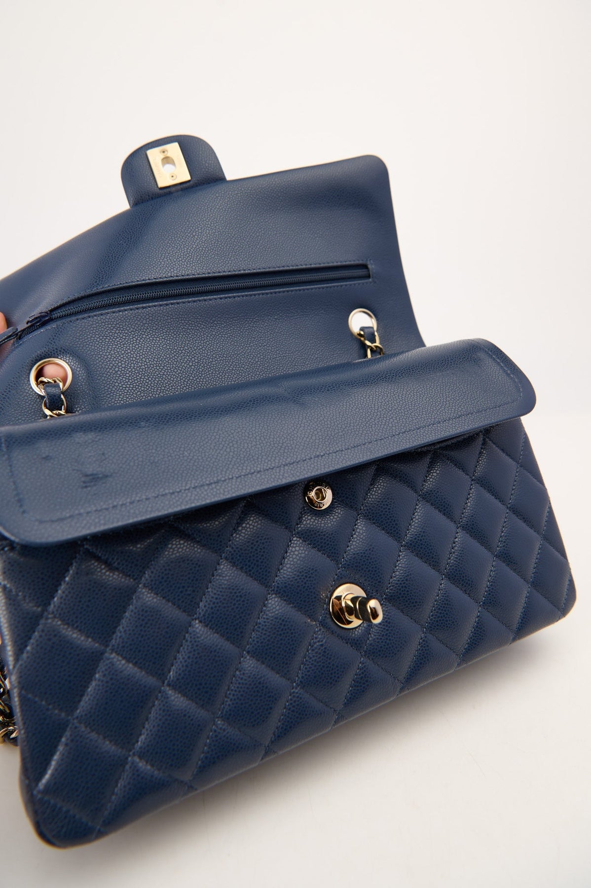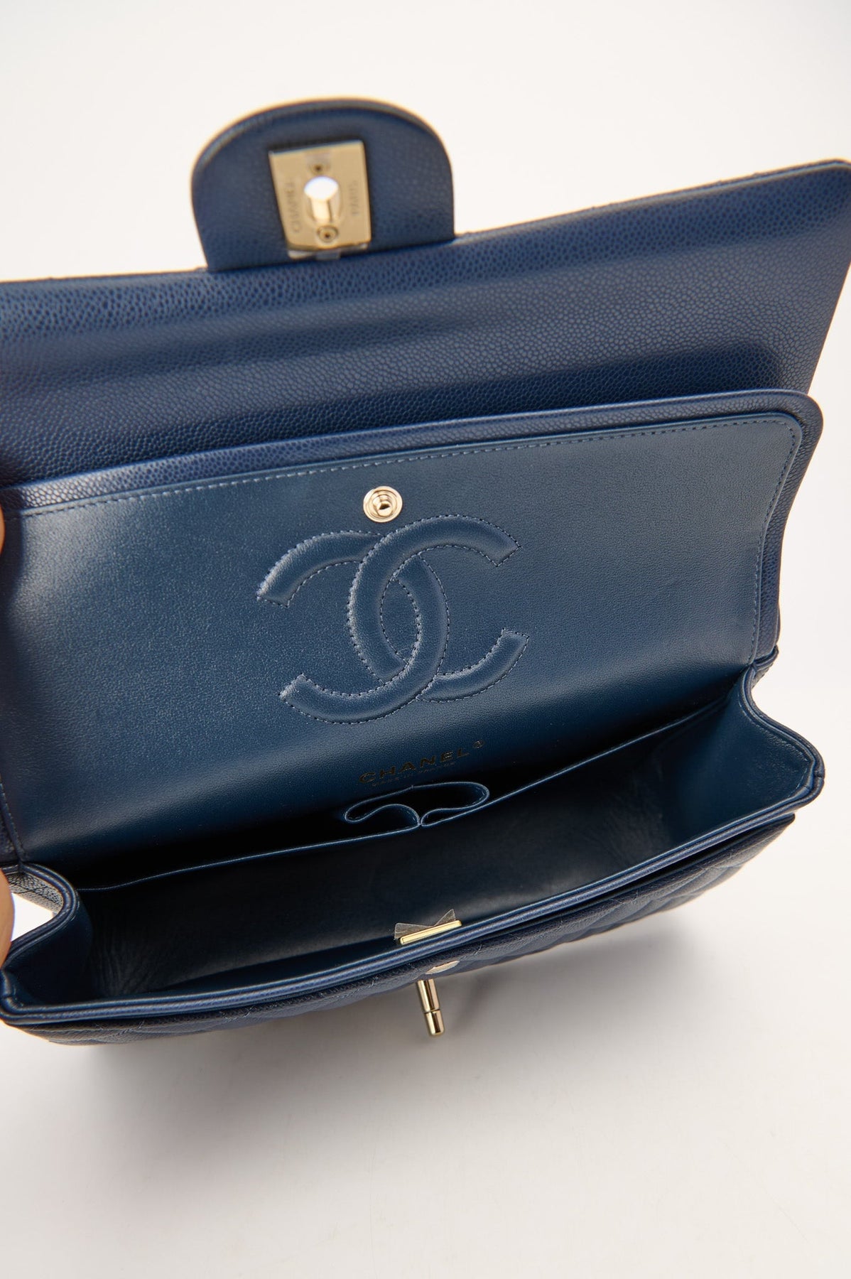 Pre-loved Chanel Medium Double Flap Bag in navy