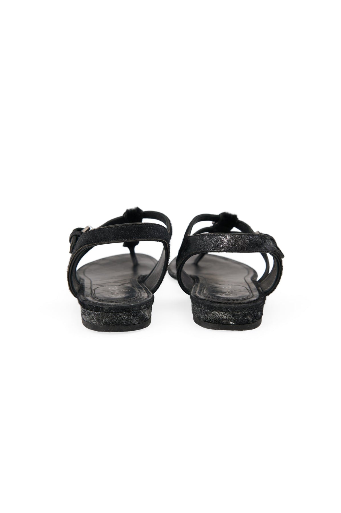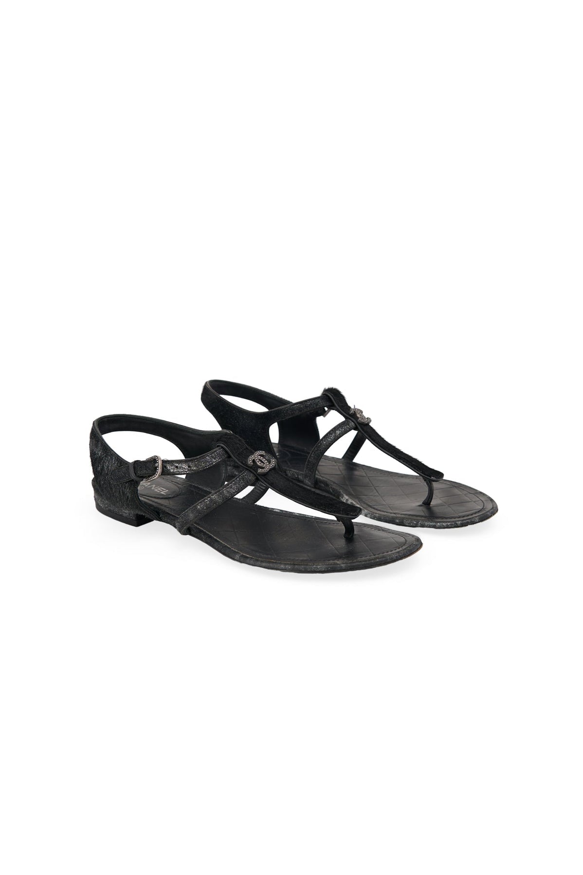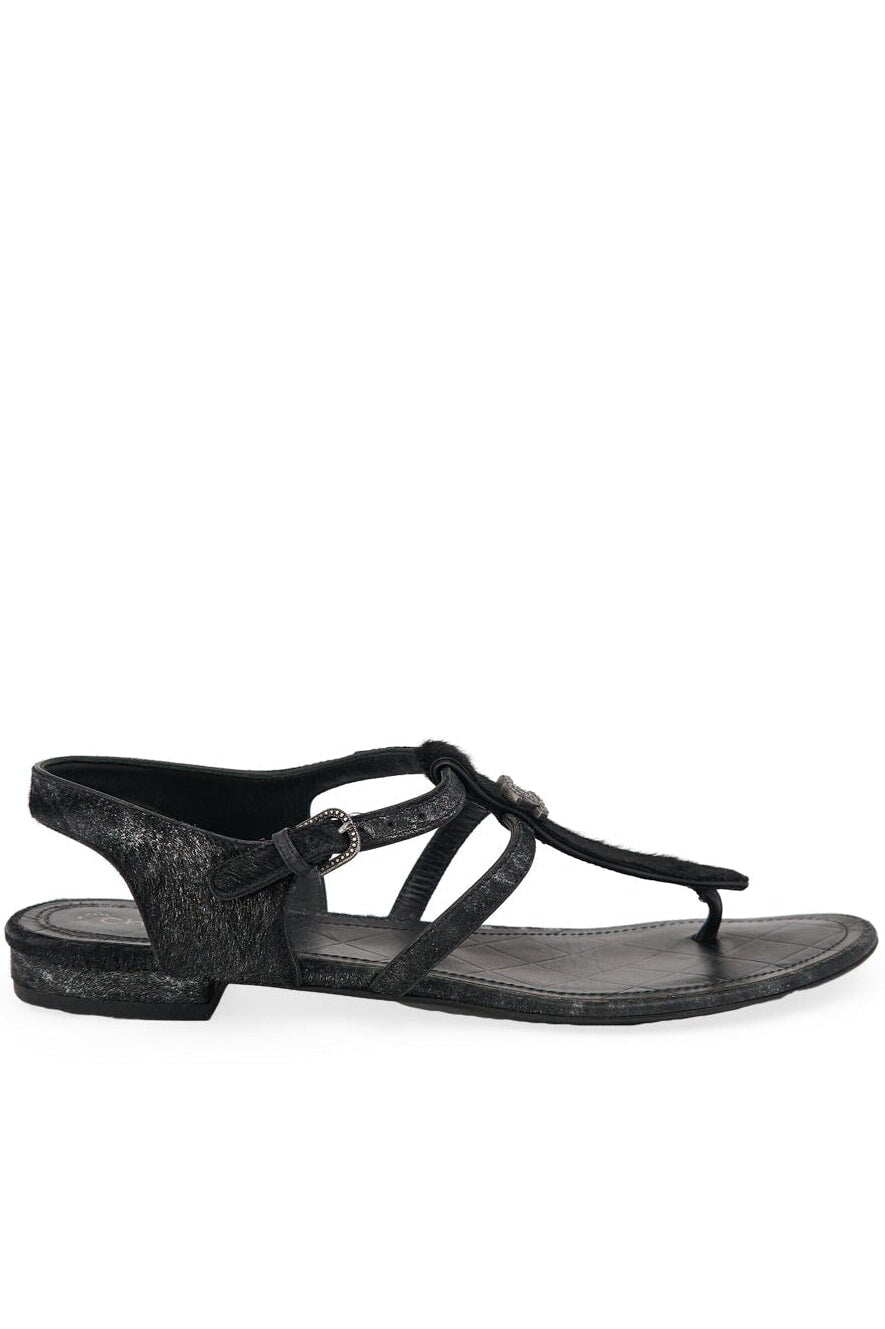 Pre-loved Chanel Metallic Pony Hair Thong Sandals in black
