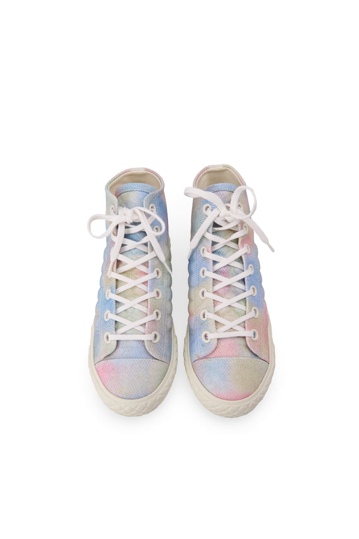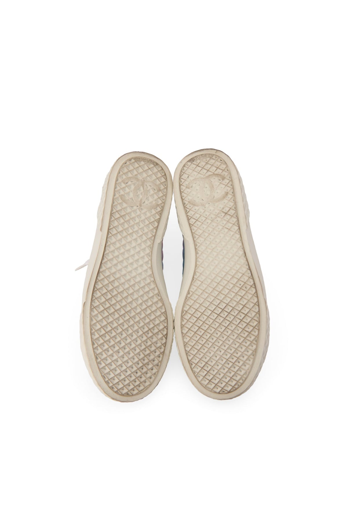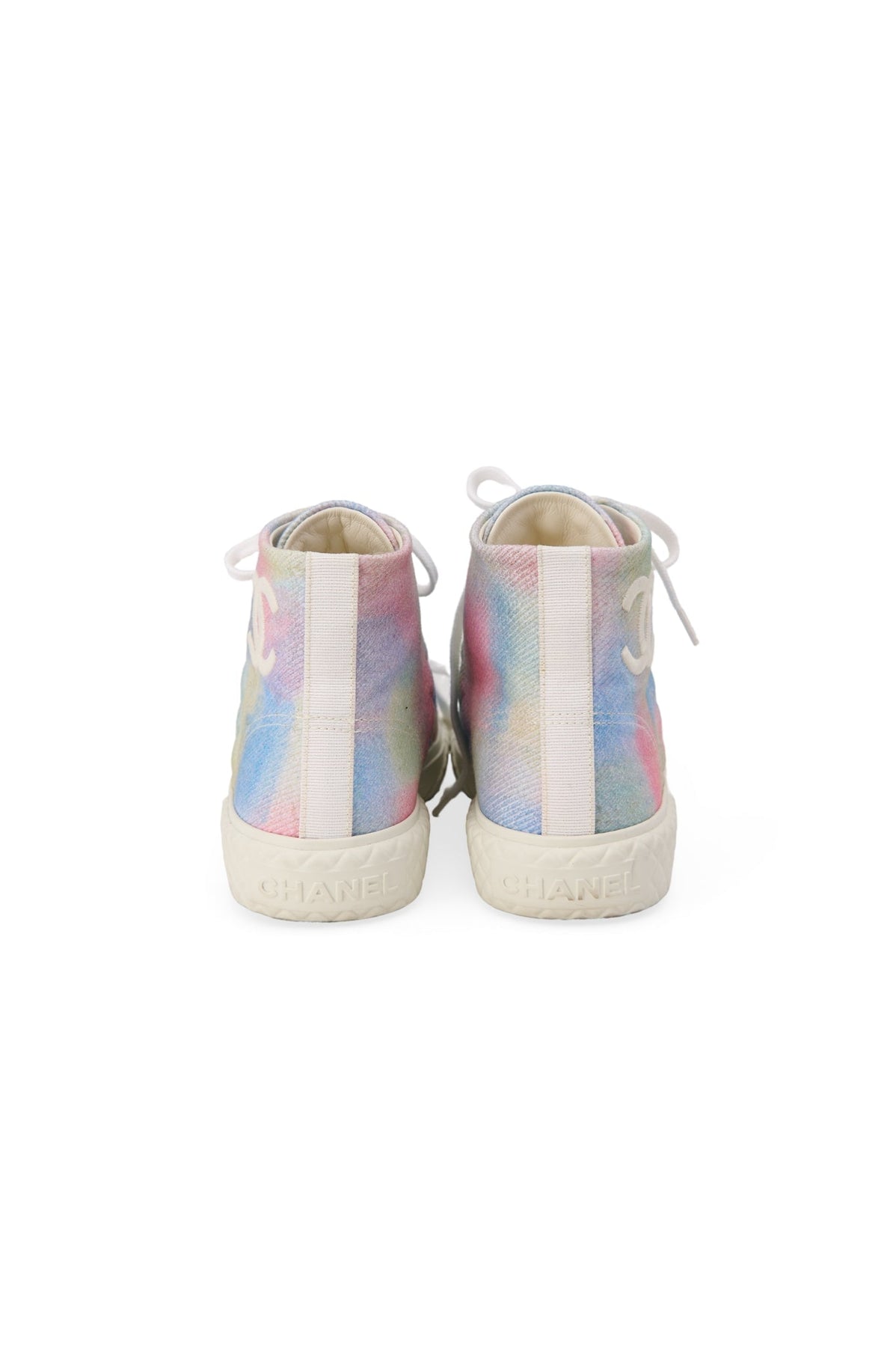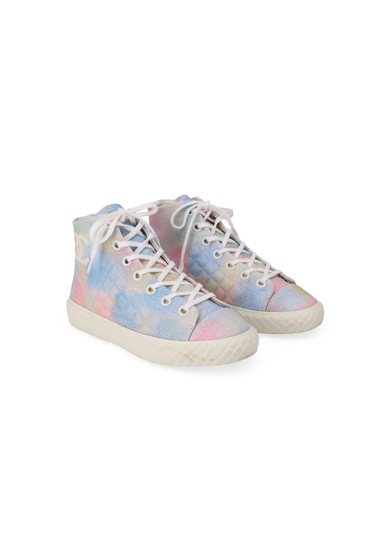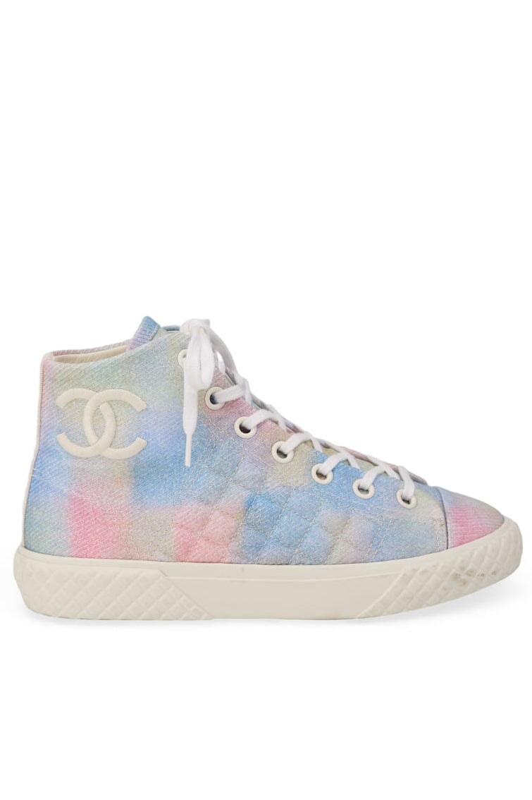 Pre-loved Chanel Quilted Fabric High-Top Sneakers in pastel
