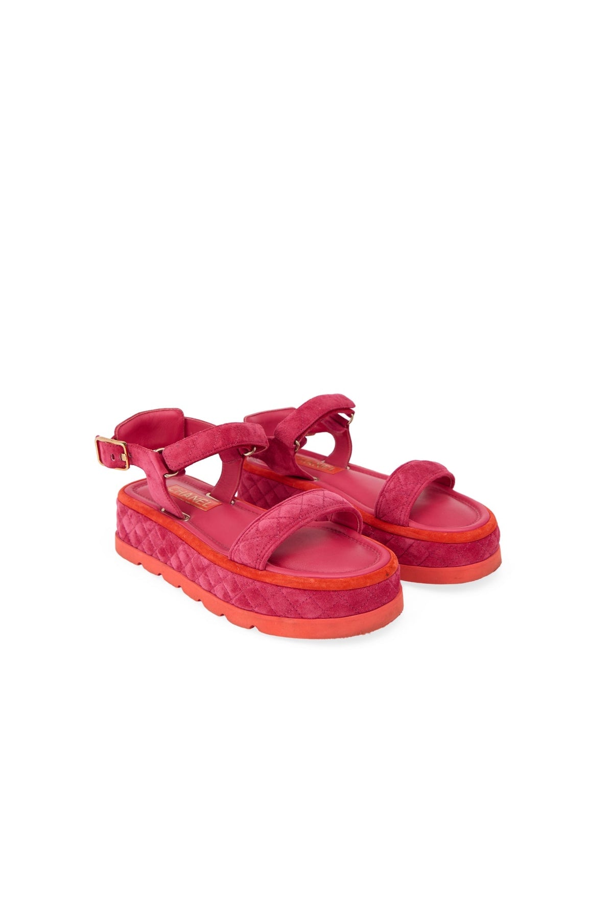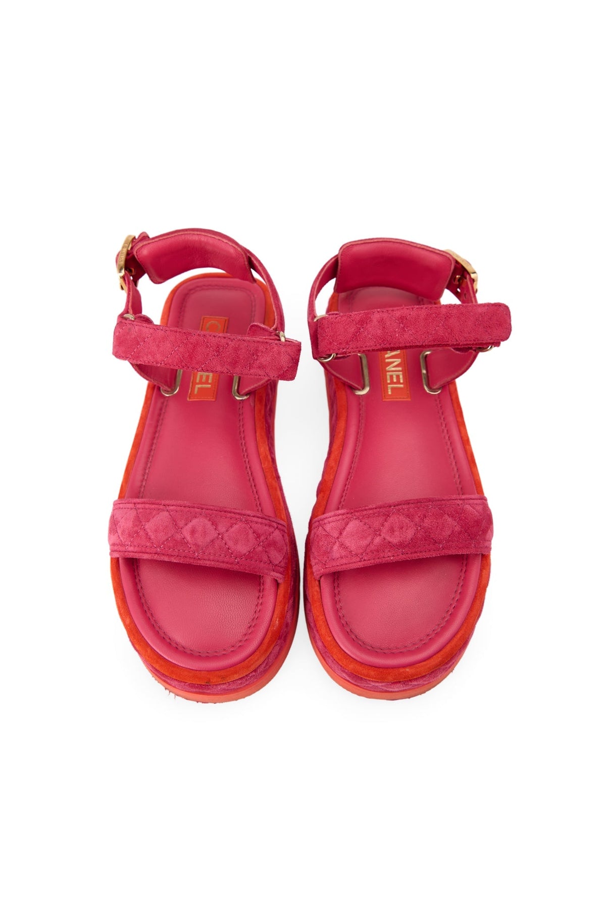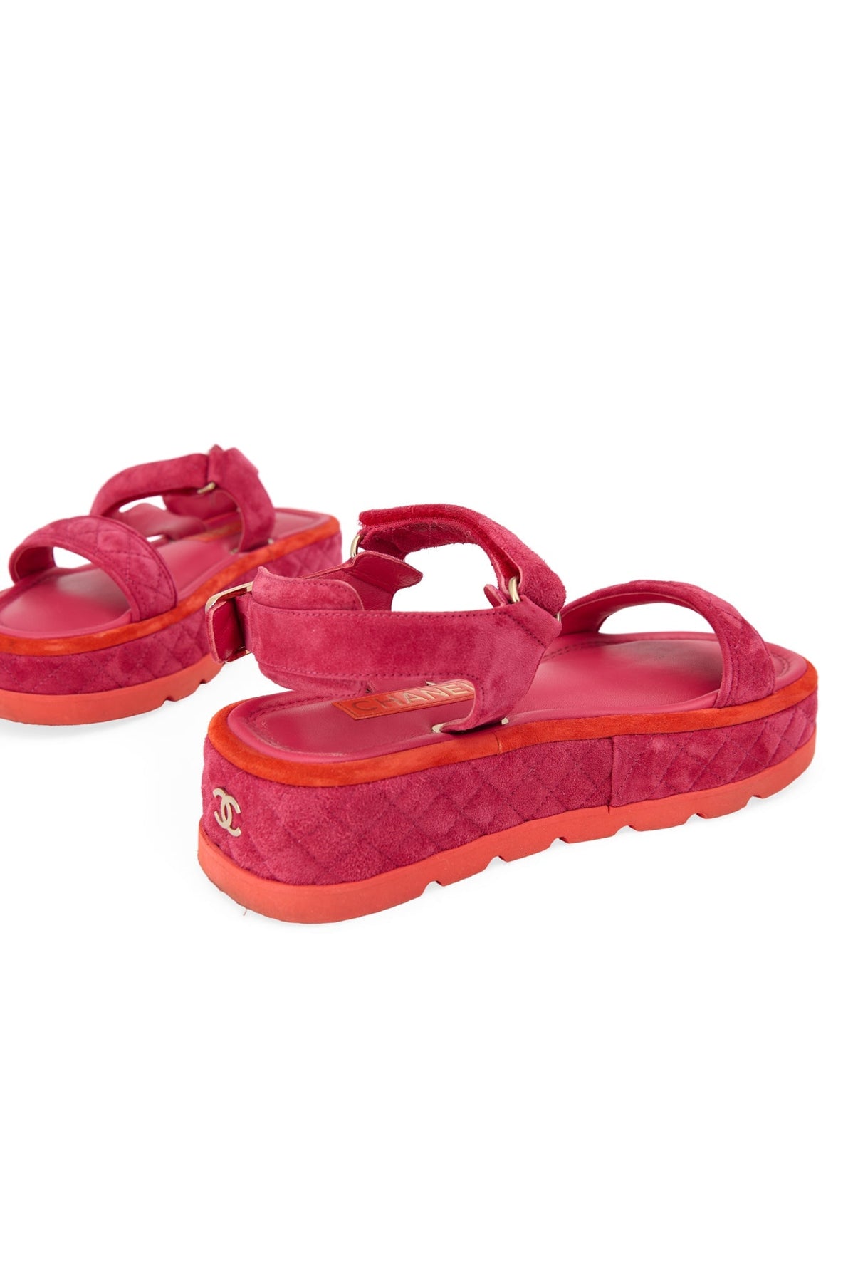 Pre-loved Chanel Quilted Suede Platform Sandals in magenta