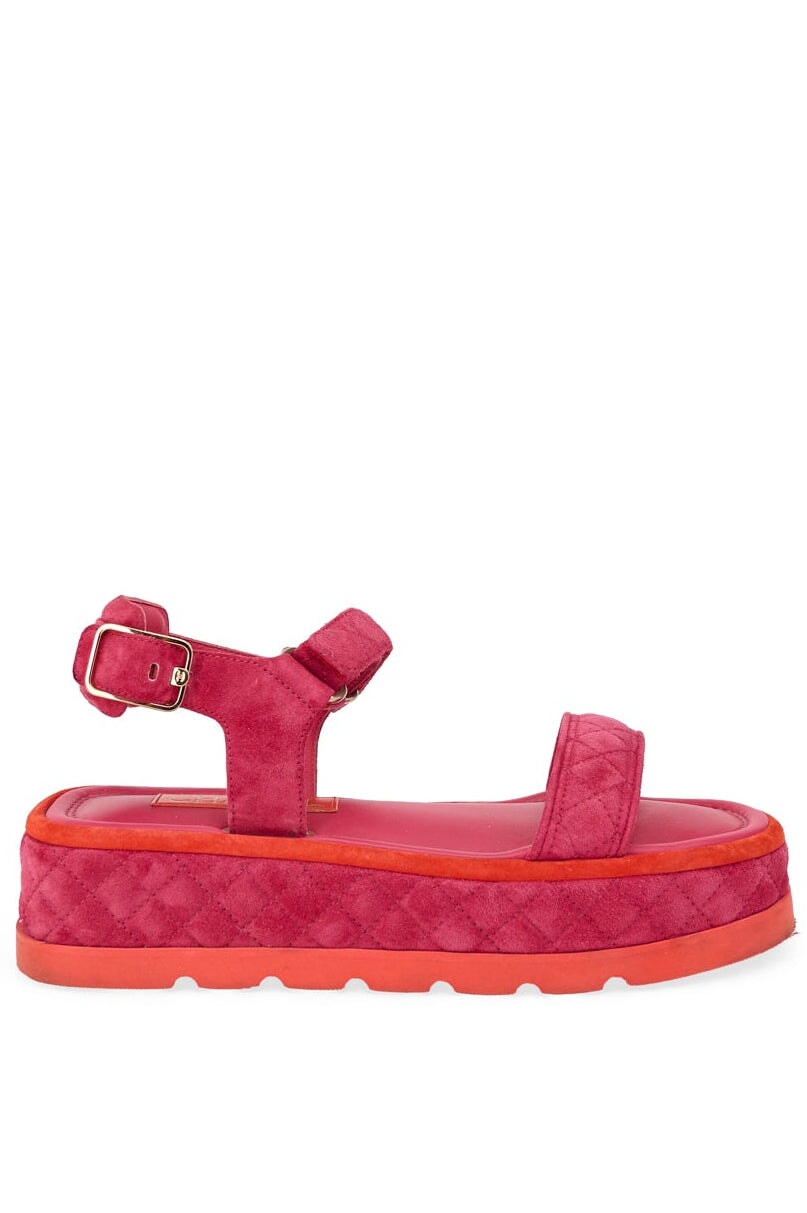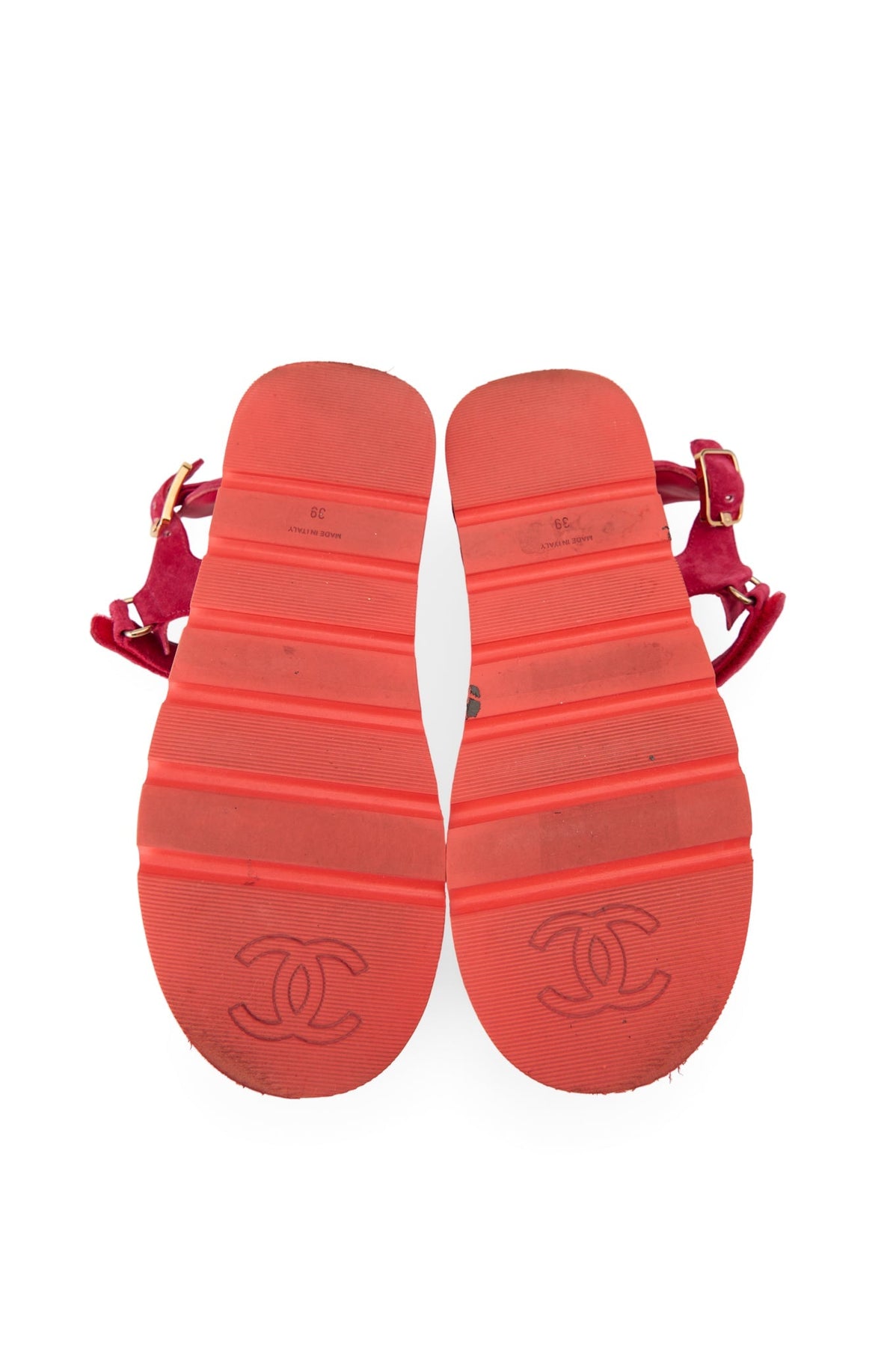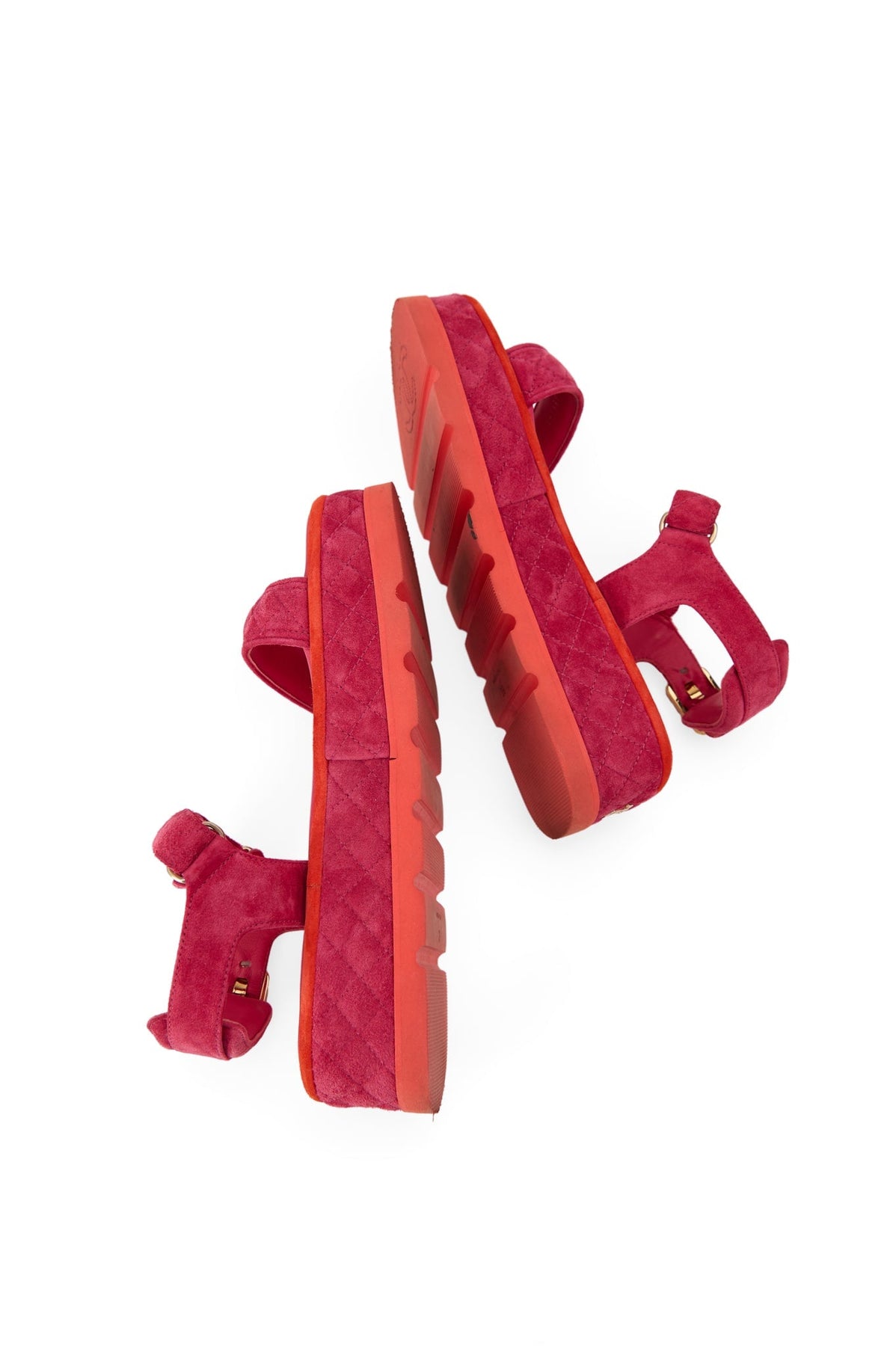 Pre-loved Chanel Quilted Suede Platform Sandals in magenta