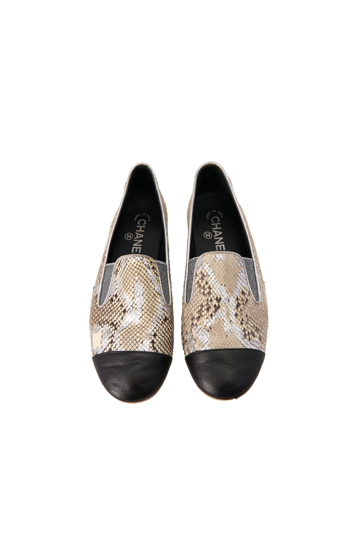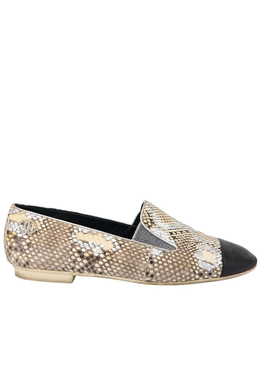 Pre-loved Chanel Snakeskin Loafers in taupe