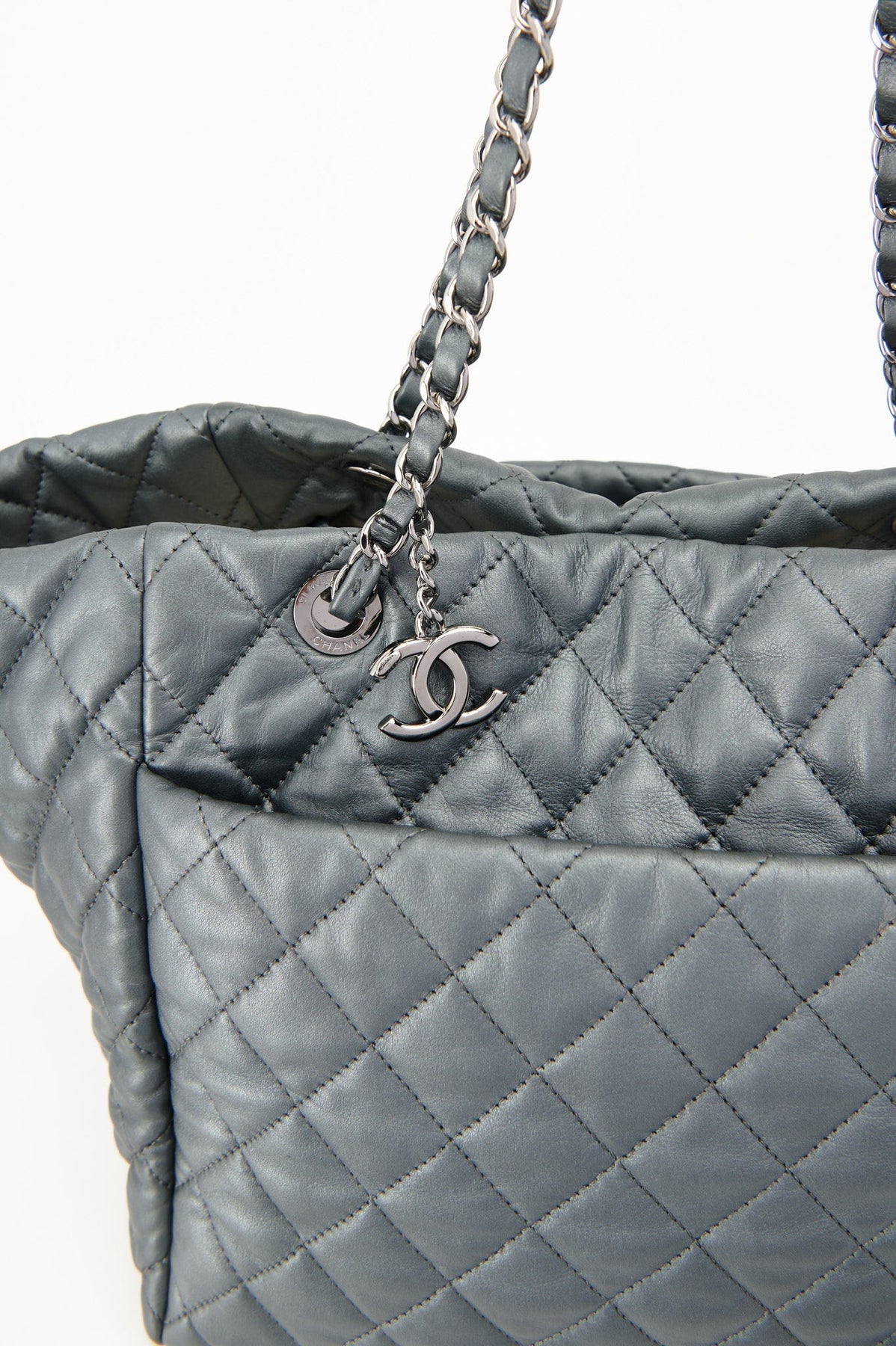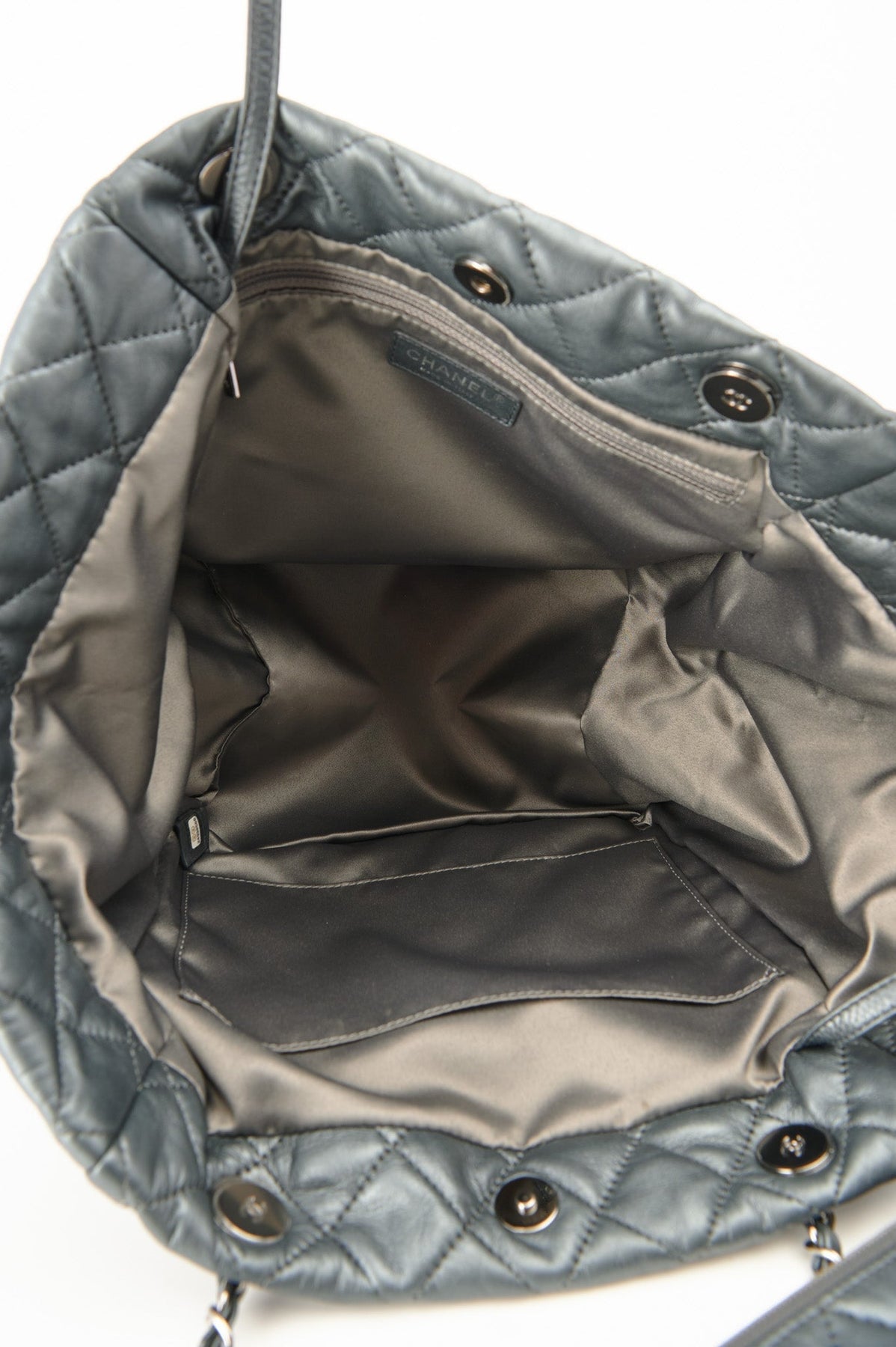 Pre-loved Chanel Weekend On Mars Tote in dark silver