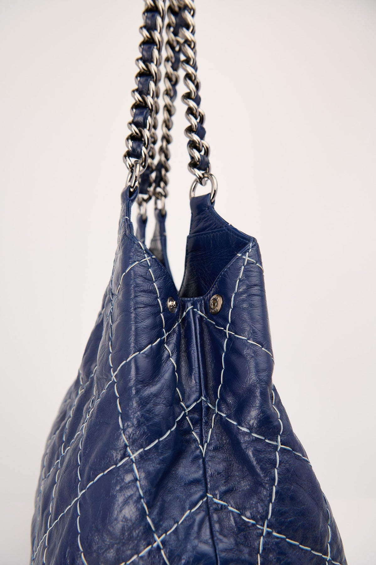 Pre-loved Chanel Wild Stitch CC Chain Hobo in navy