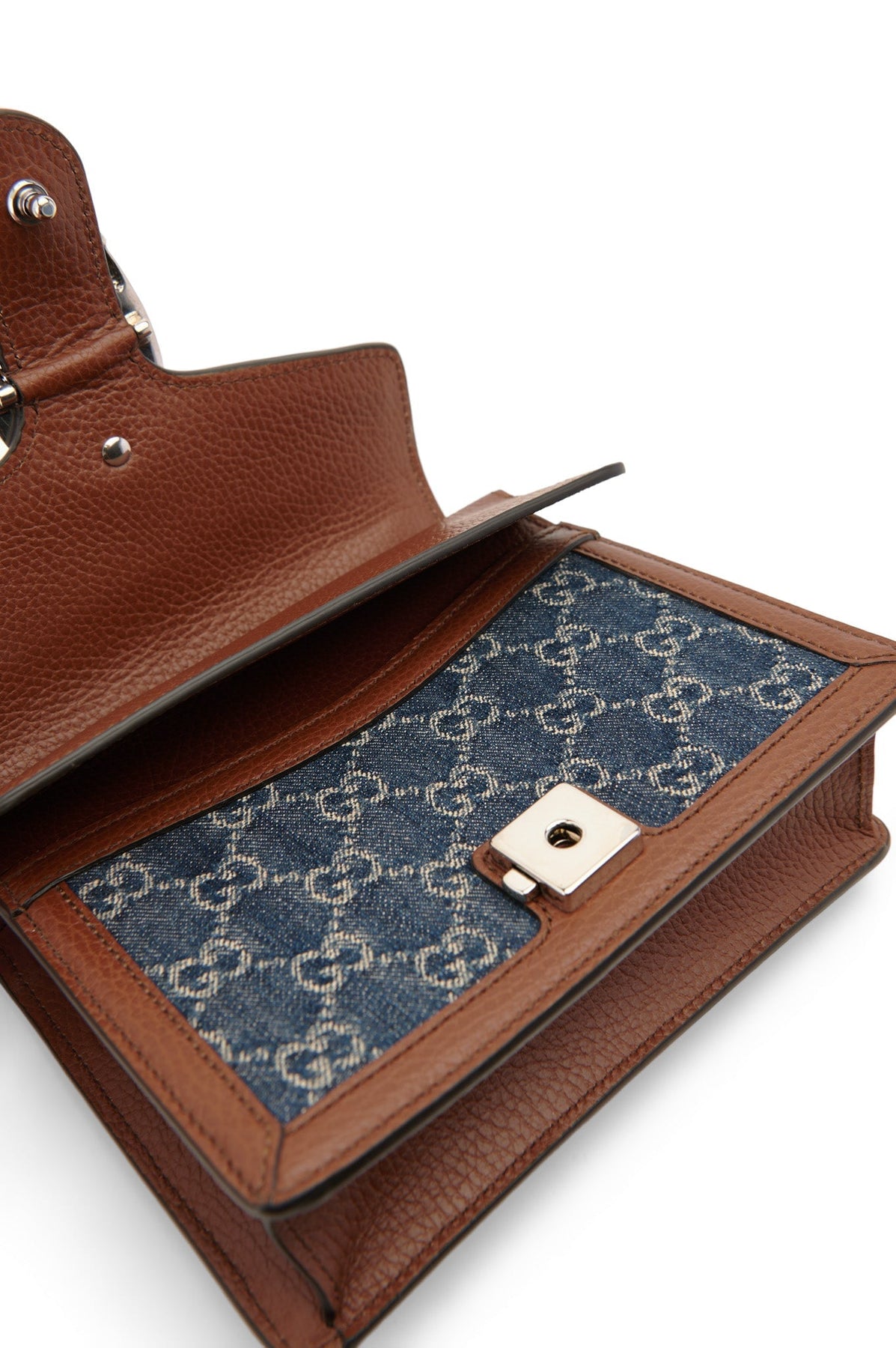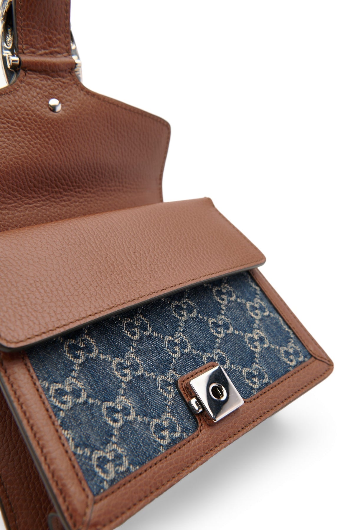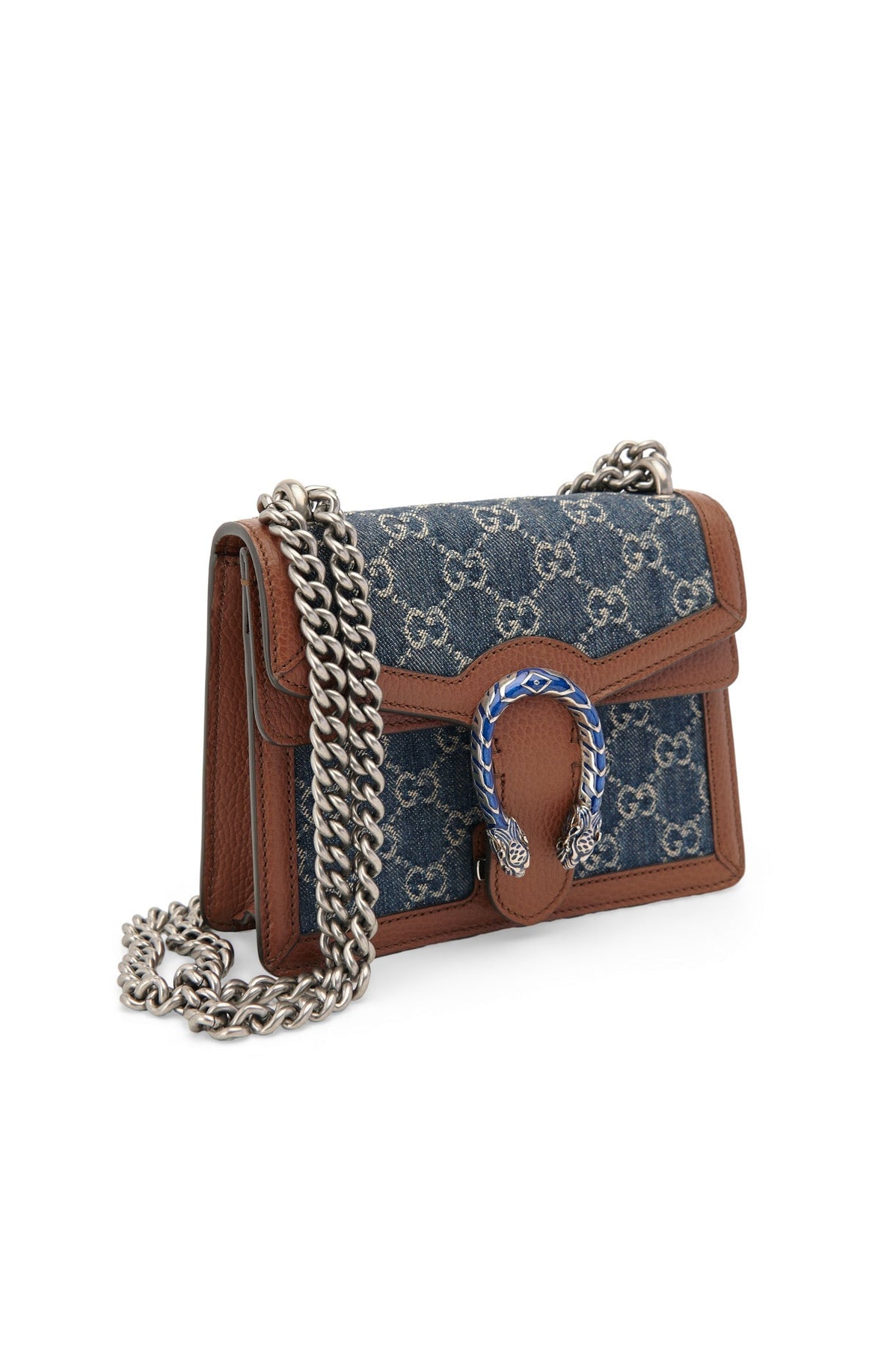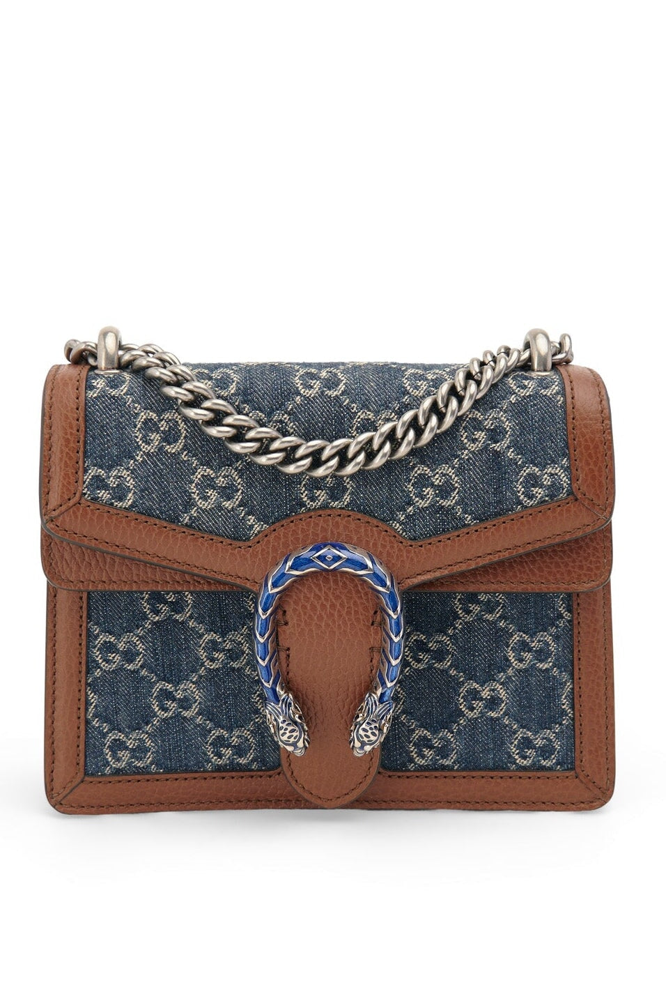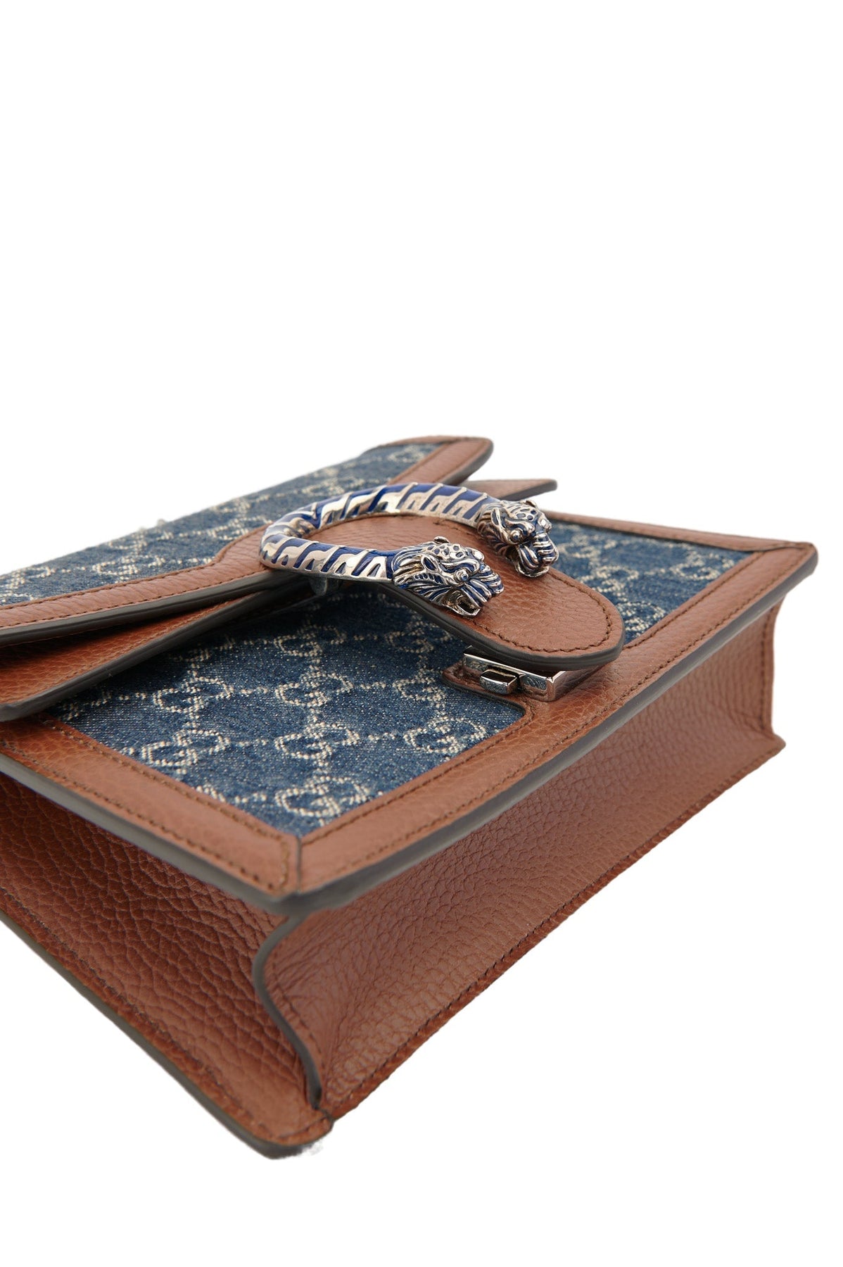 Pre-loved Gucci Denim Dionysus Small Shoulder Bag in brown and navy
