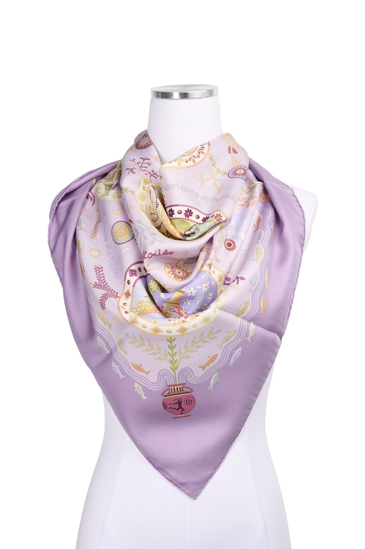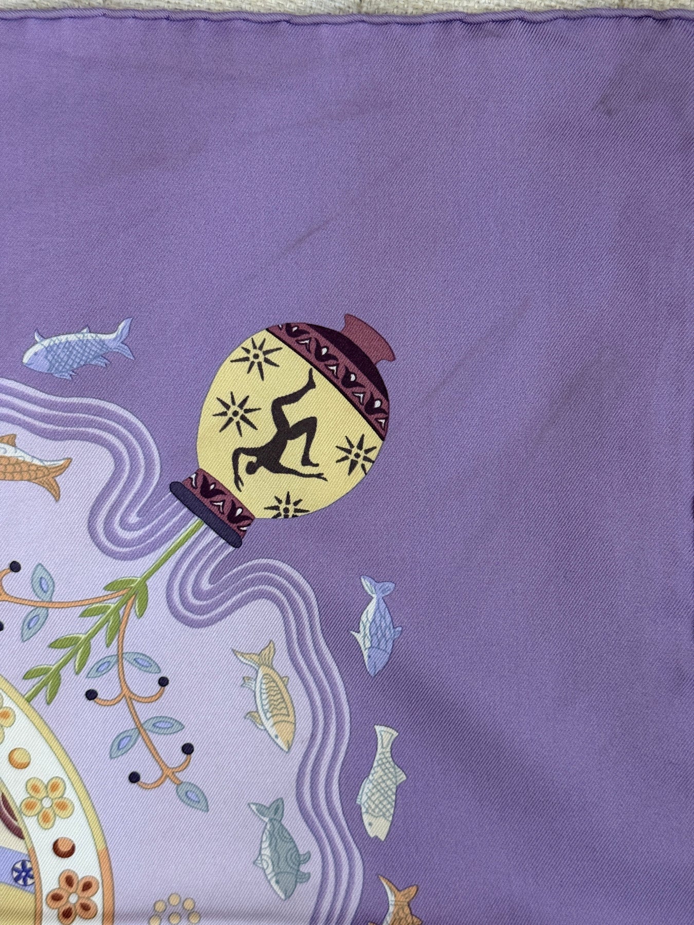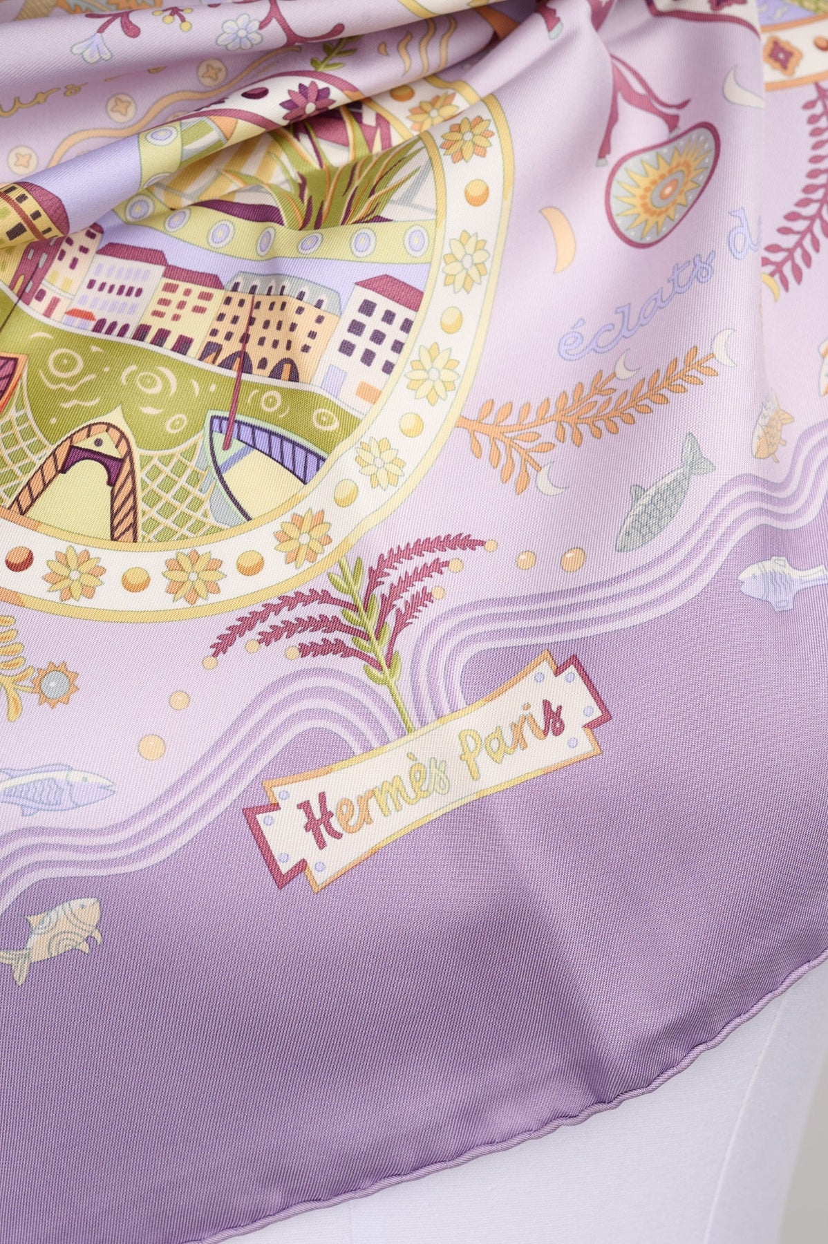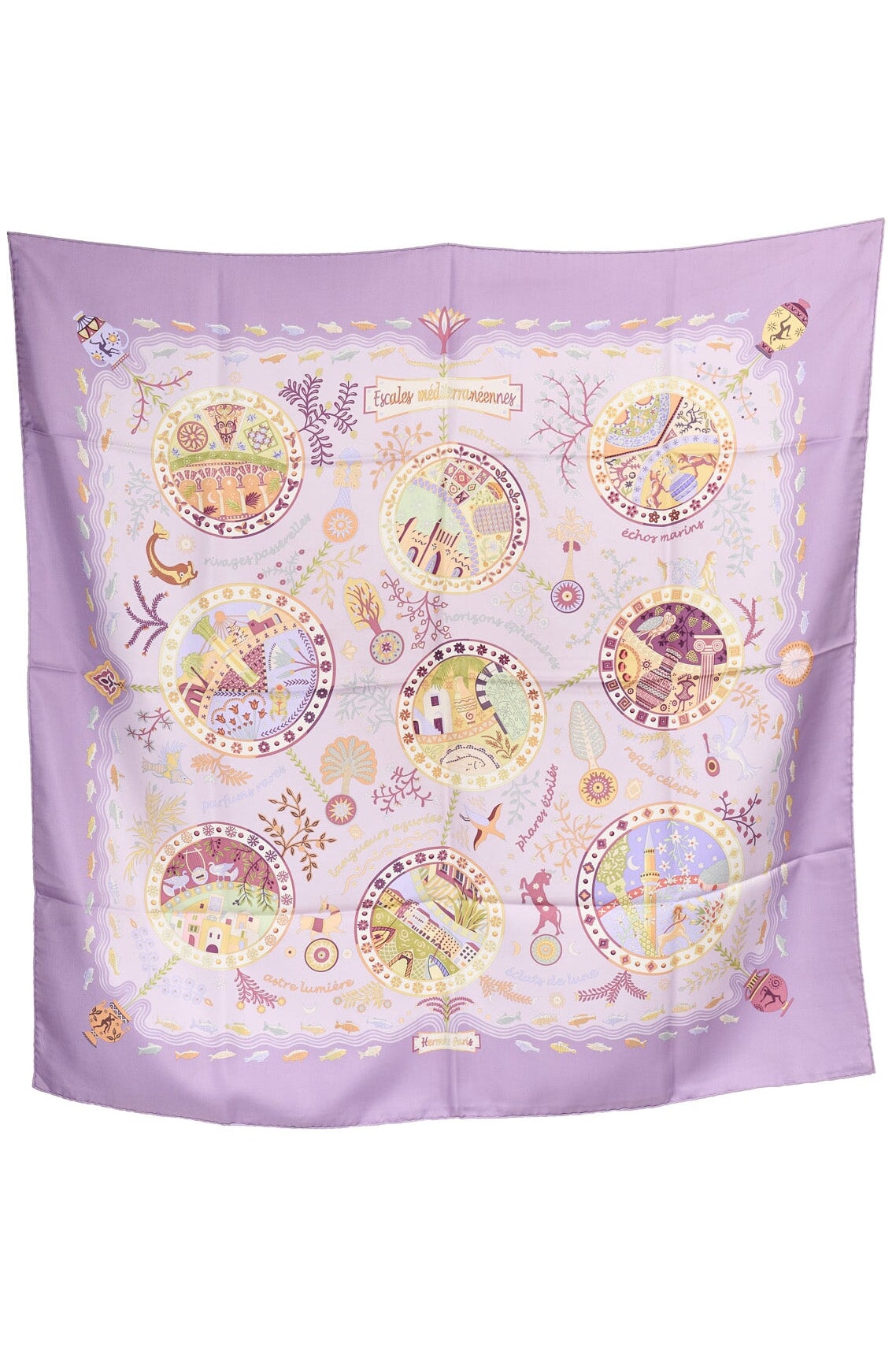 Pre-loved Hermes Escales Mediterraneennes Silk Scarf in lilac