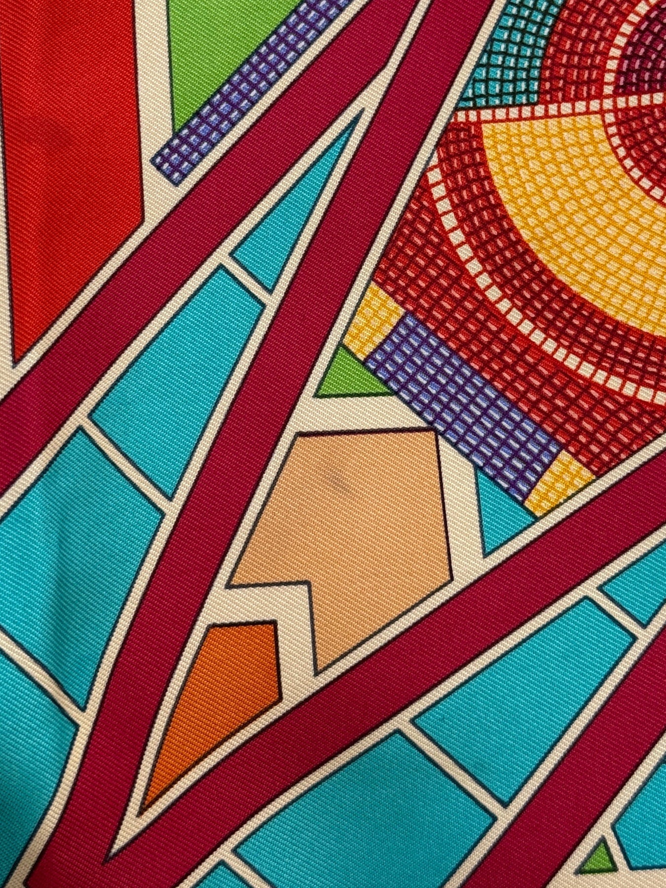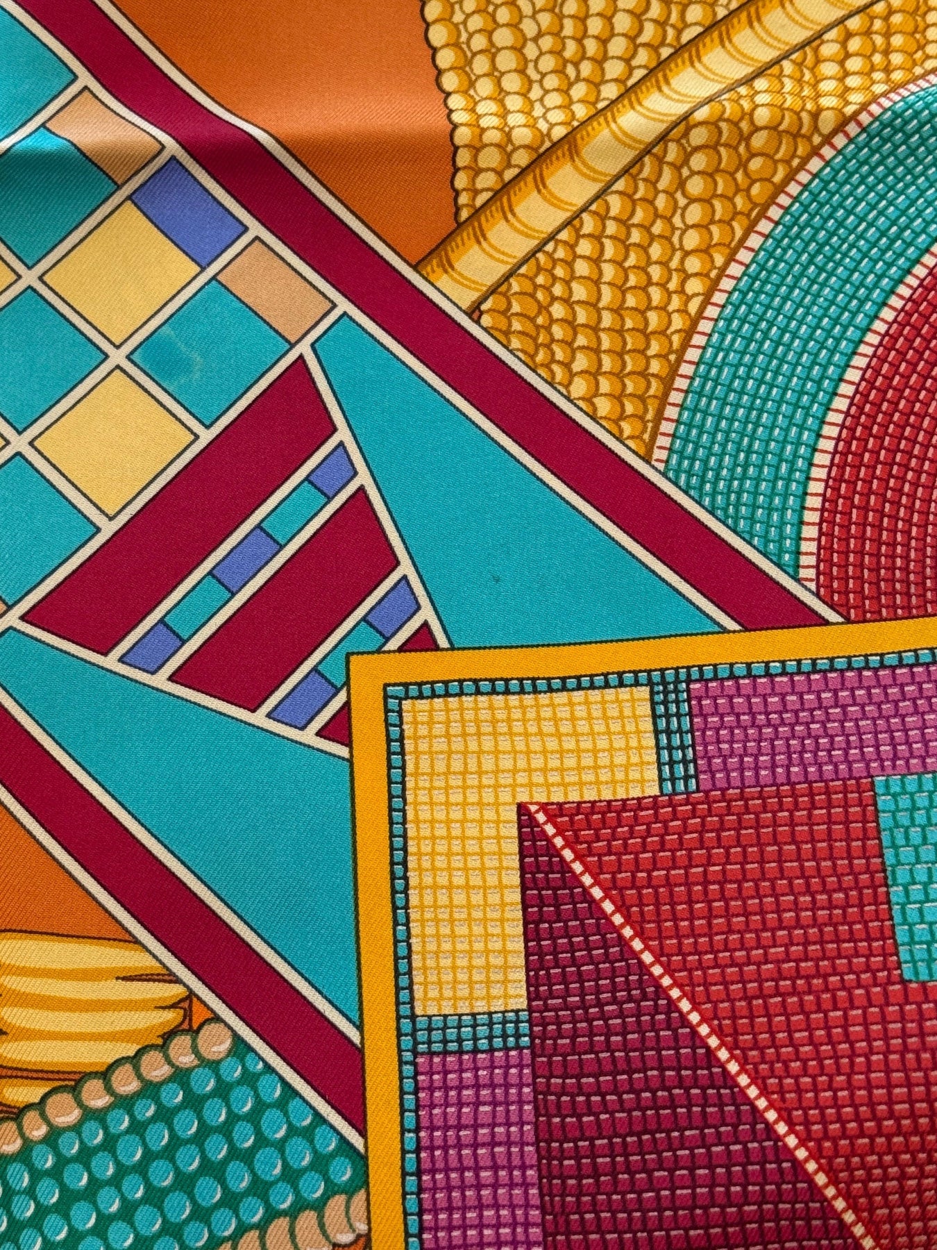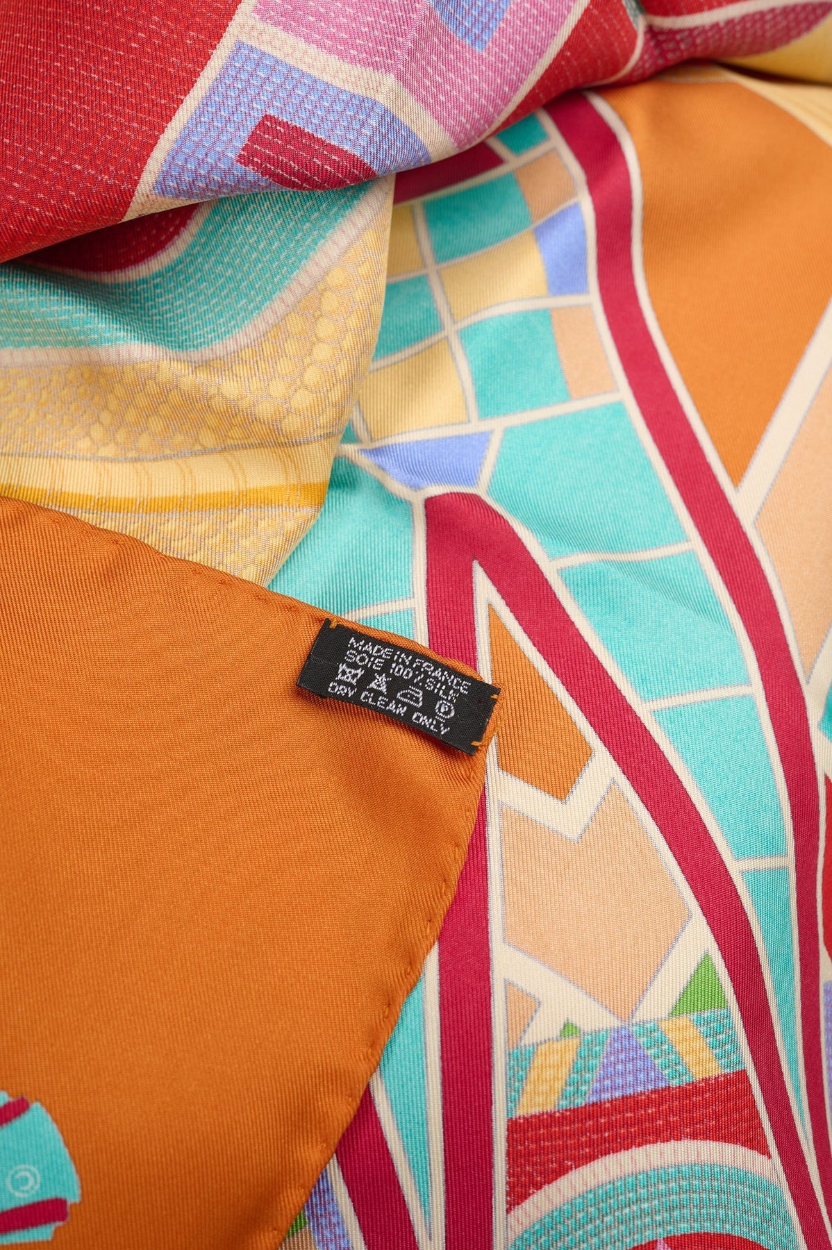 Pre-loved Hermes L'art Indien des Plaines Silk Scarf in orange, teal, and red