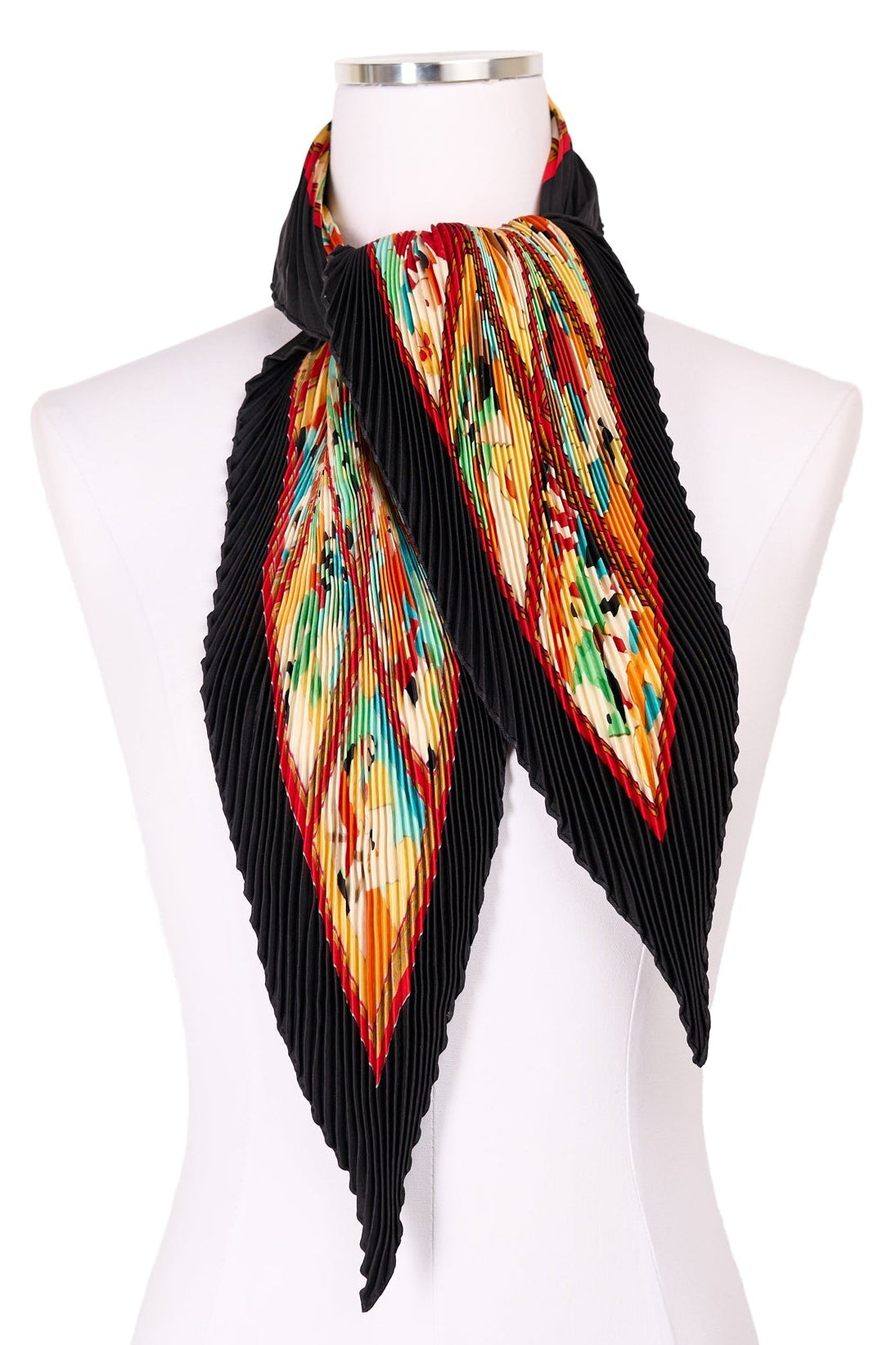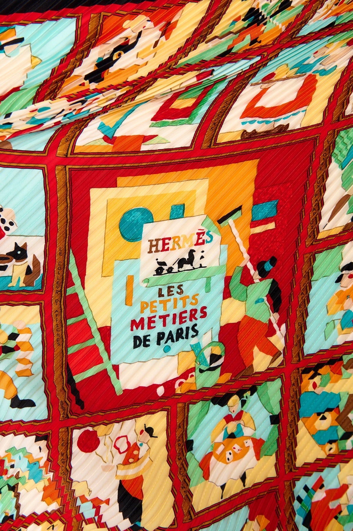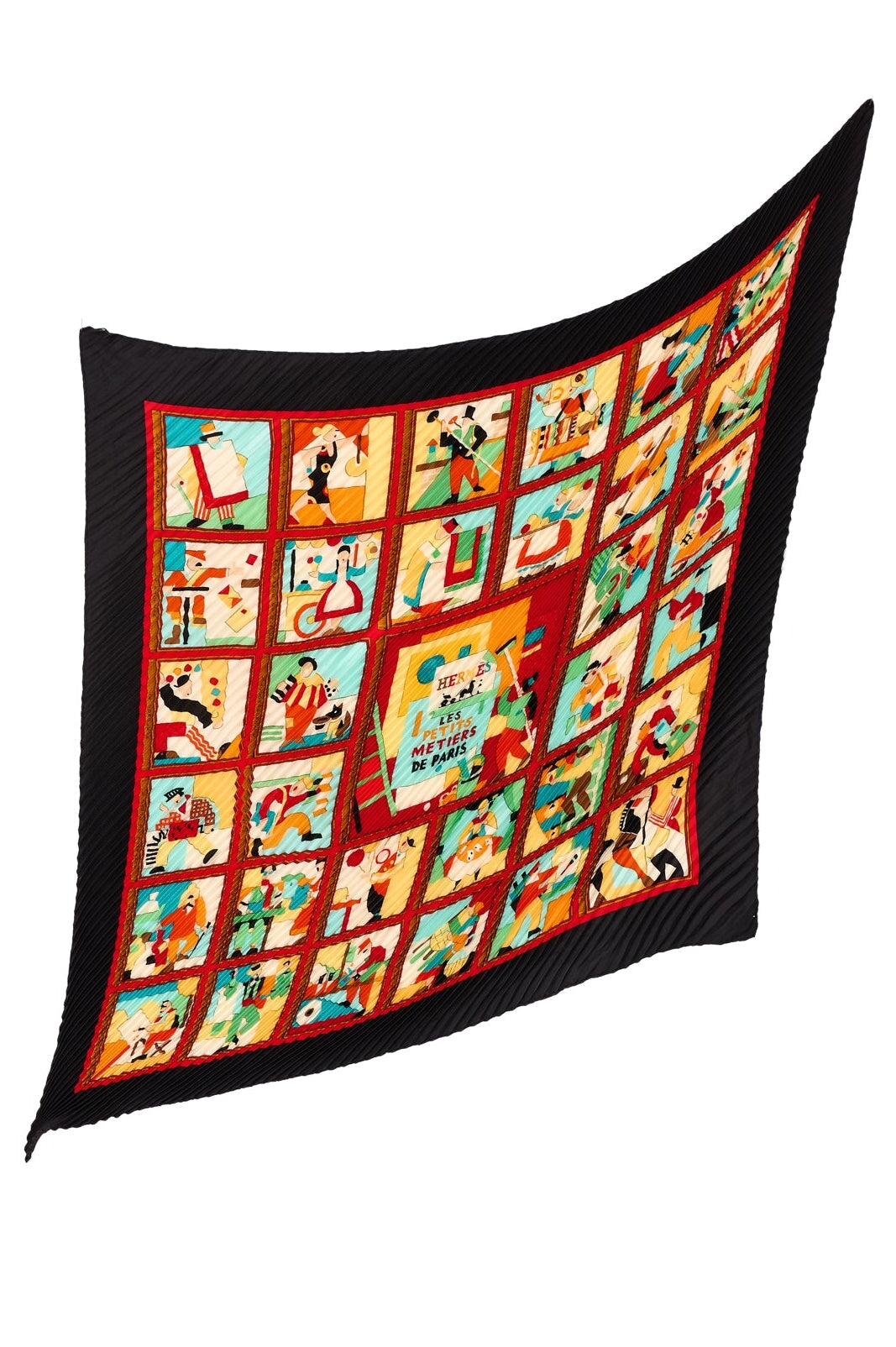 Pre-loved Hermes Les Petits Metiers de Paris Plisse Scarf in black, orange and teal
