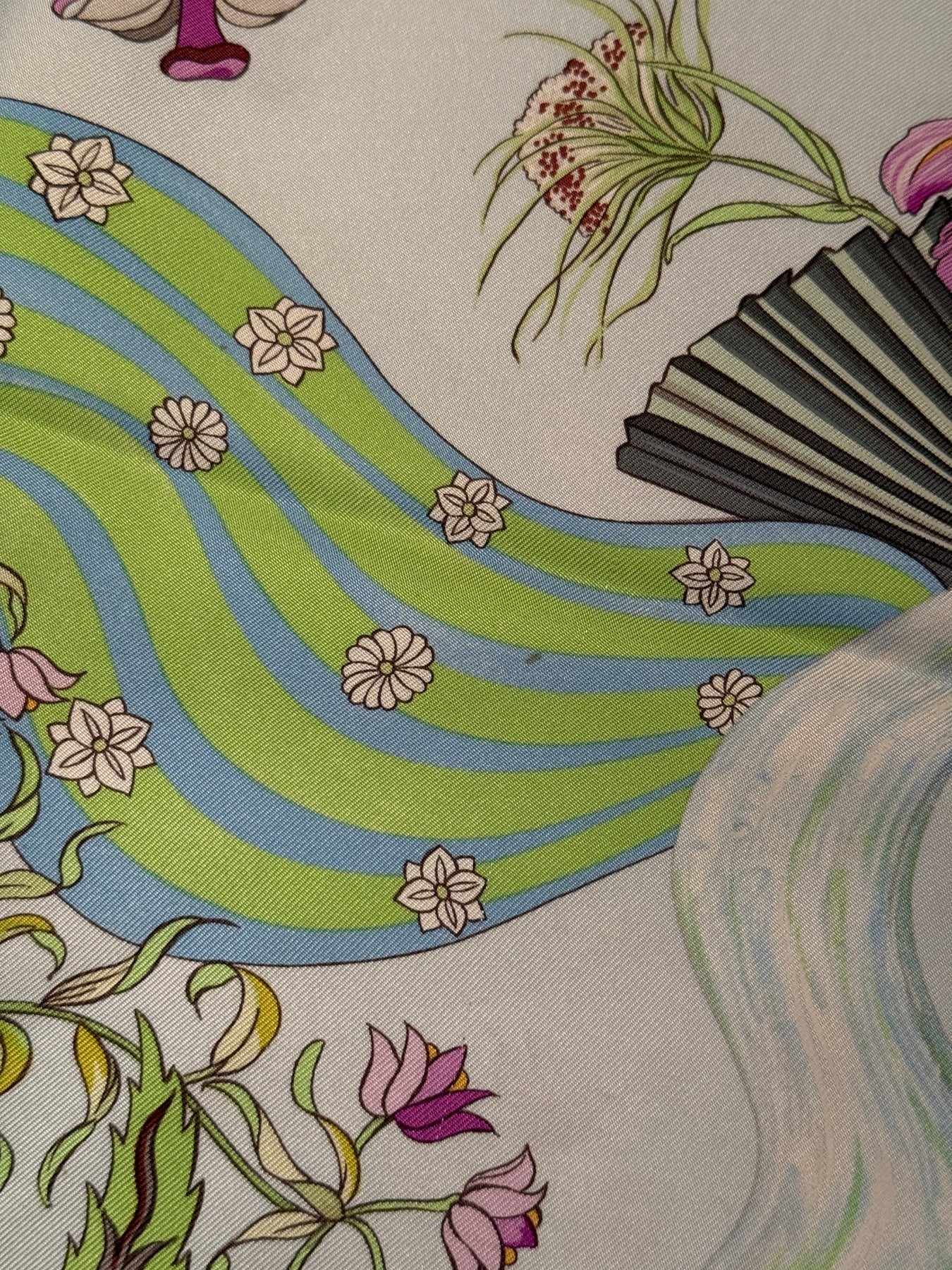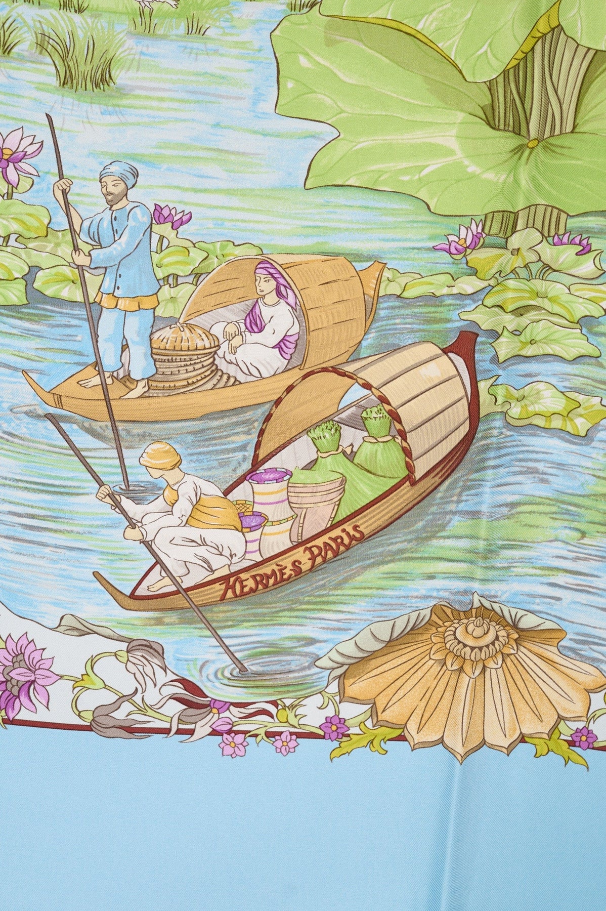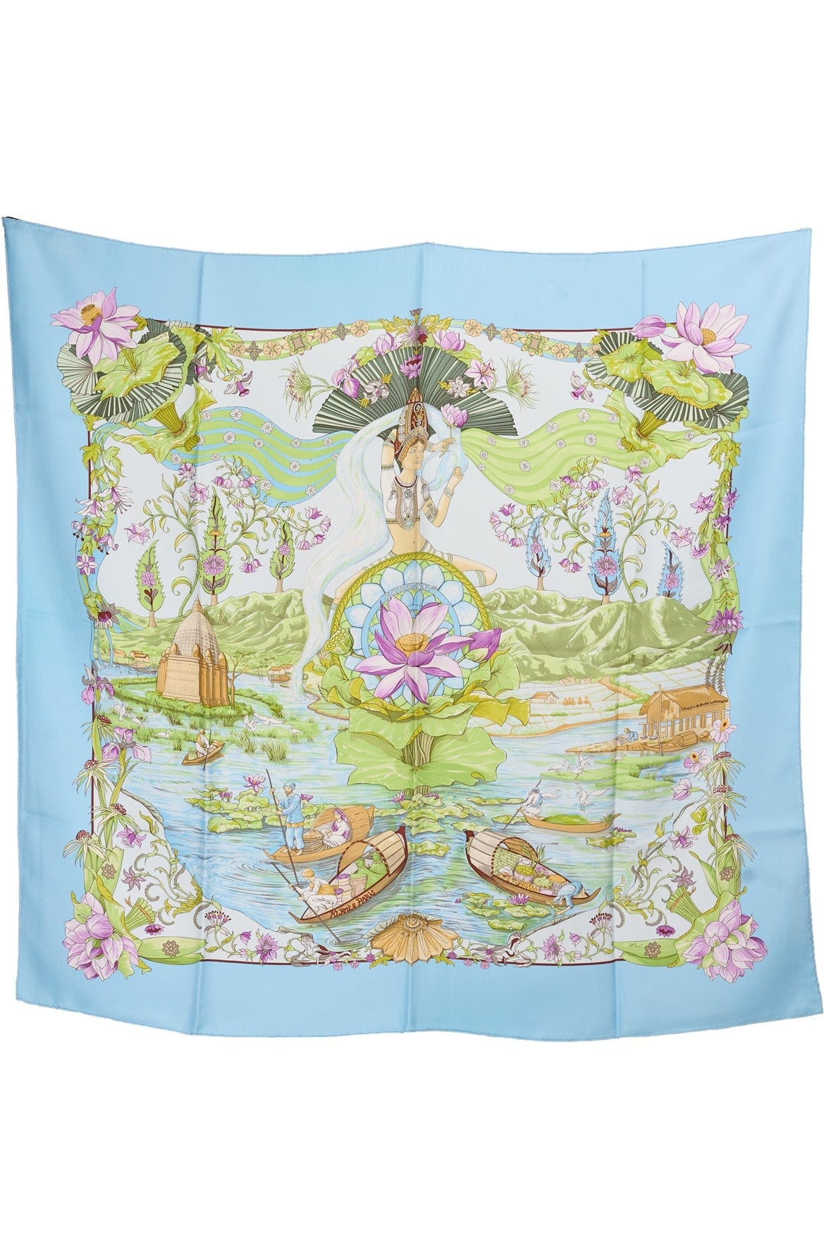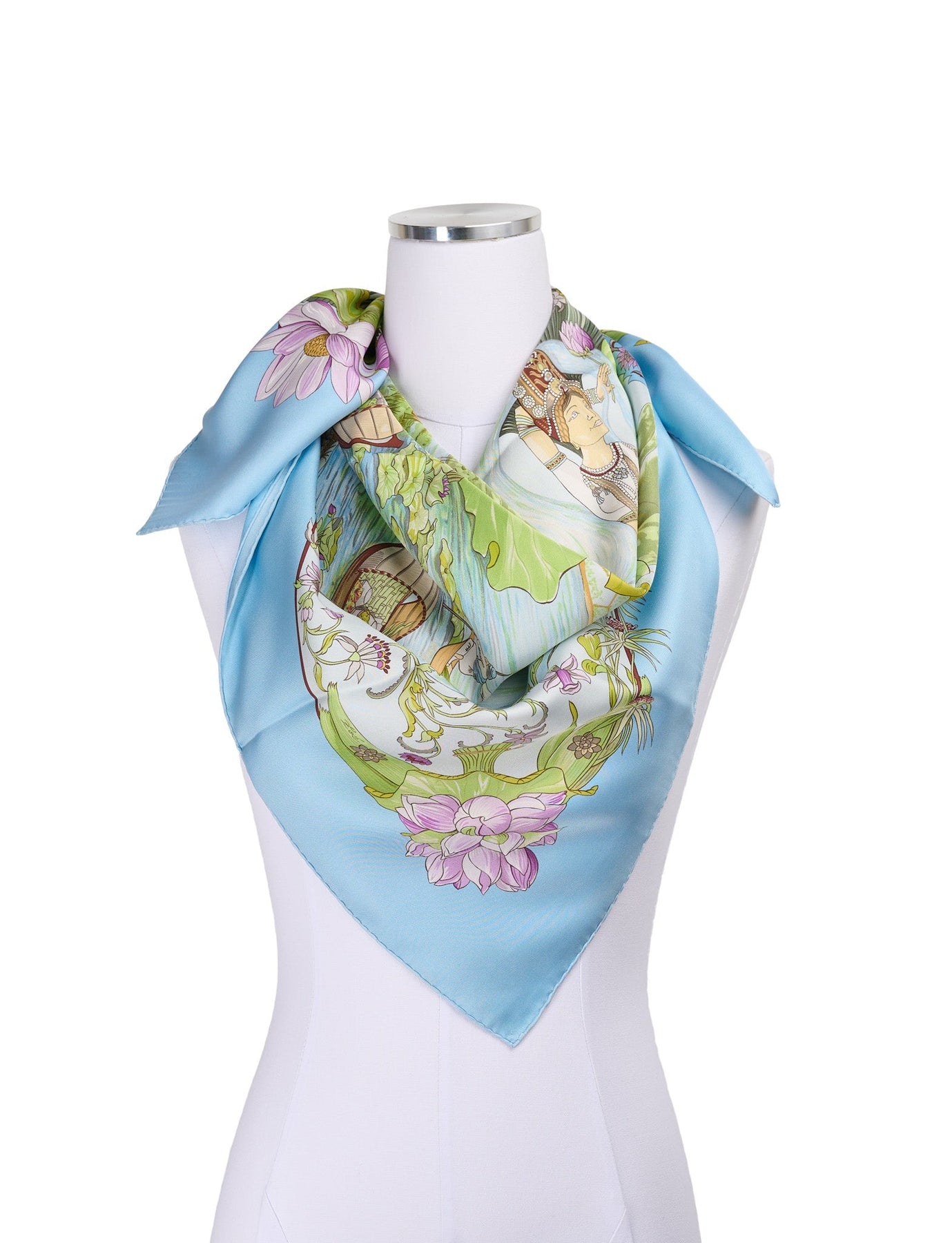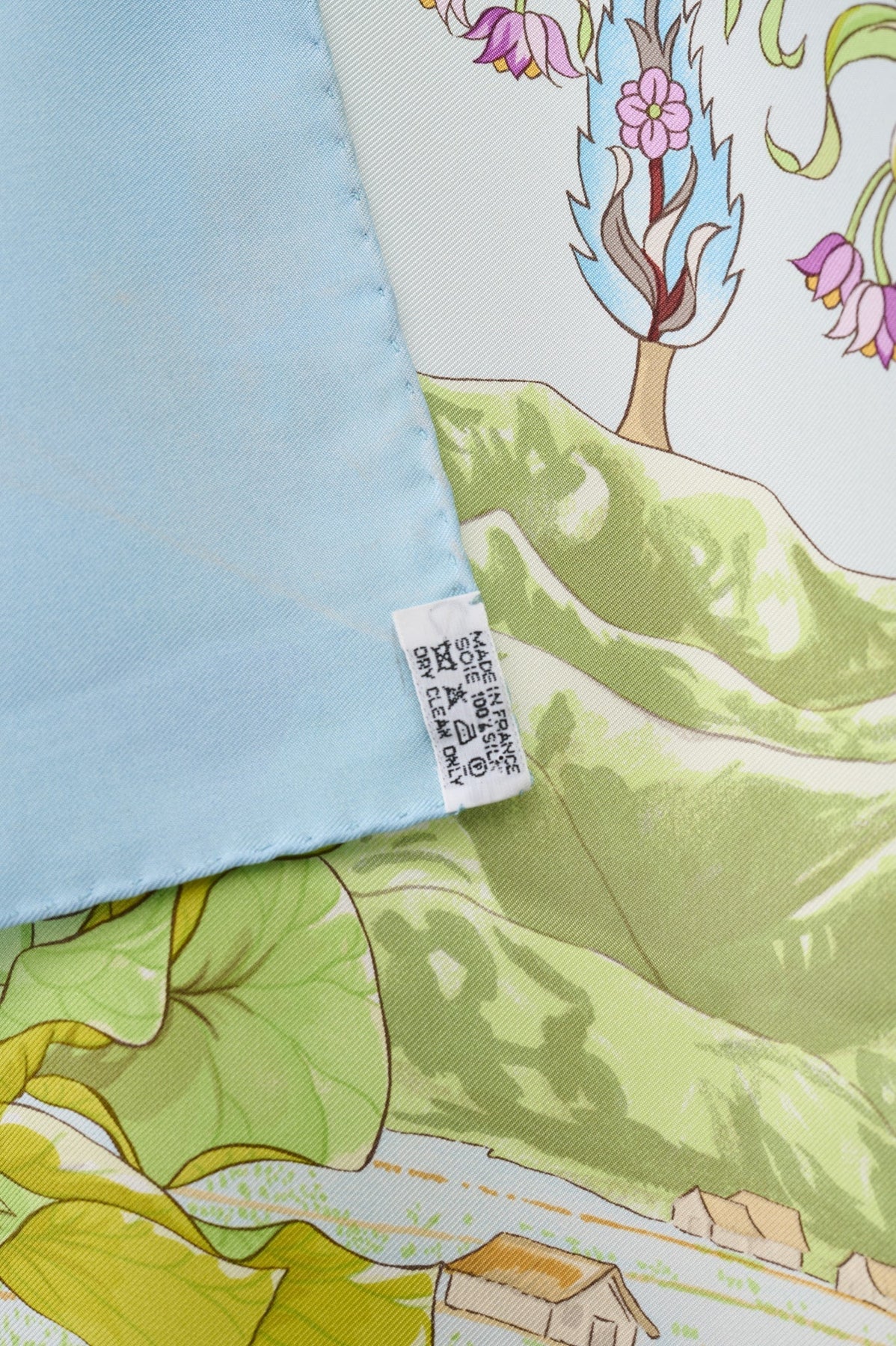 Pre-loved Hermes Sarasvati Silk Scarf in light blue and green