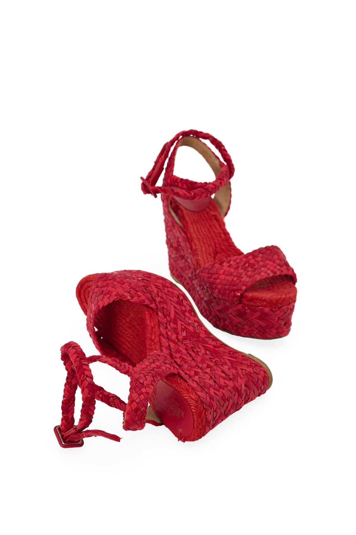 Pre-loved Hermes Woven Wedges in red