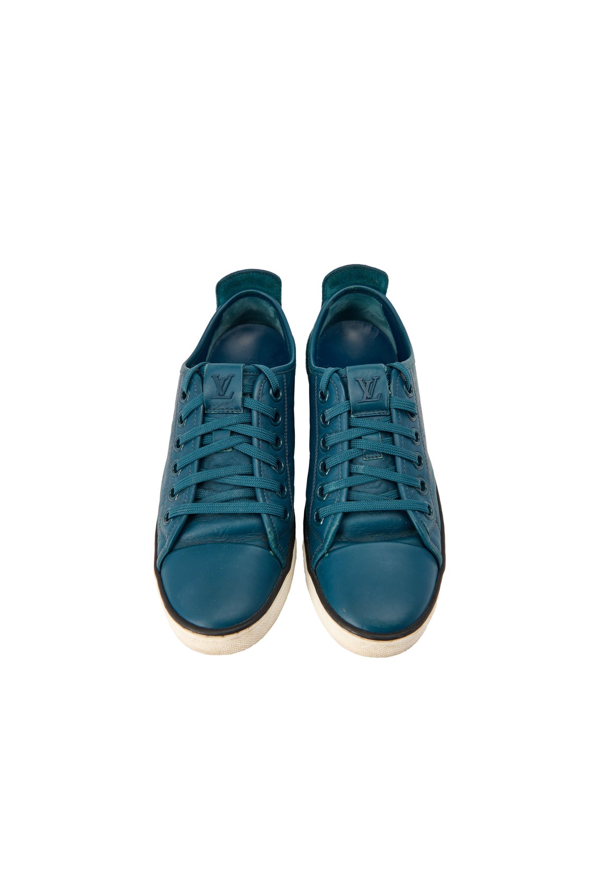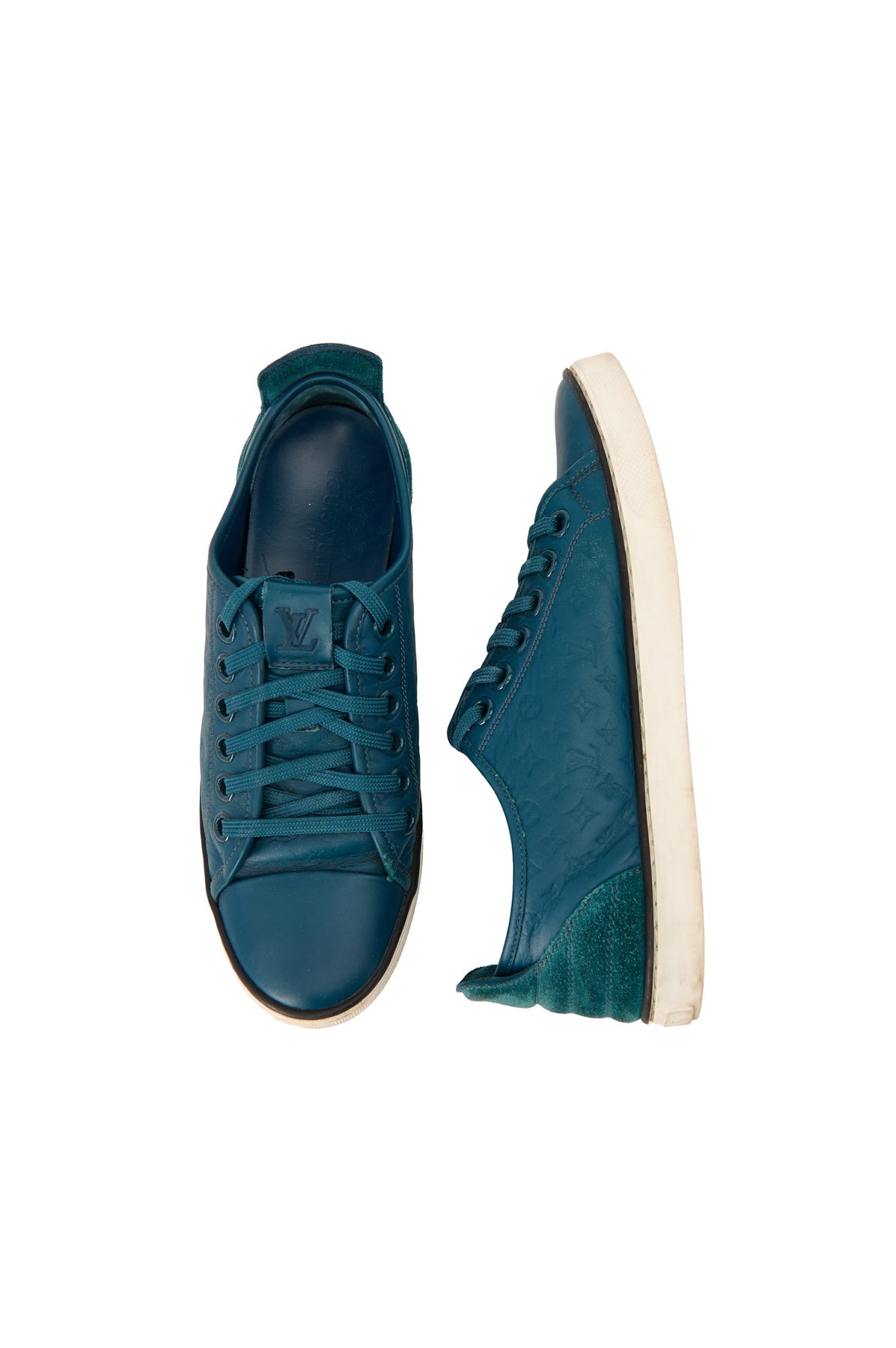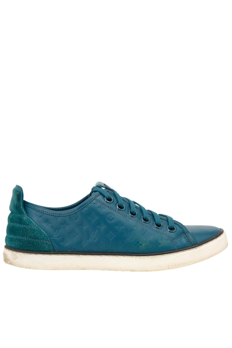Pre-loved Louis Vuitton Monogram Embossed Sneakers in teal