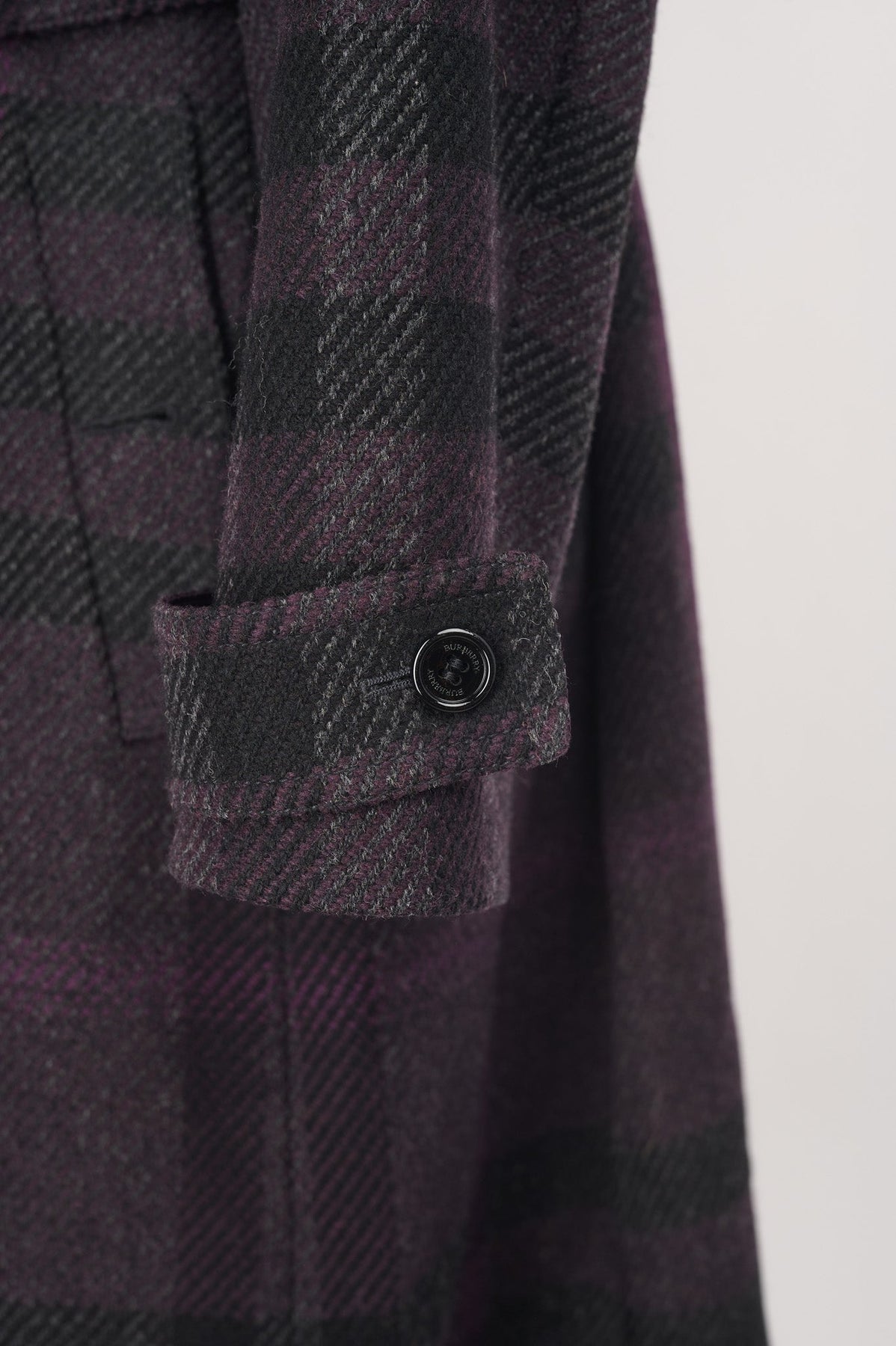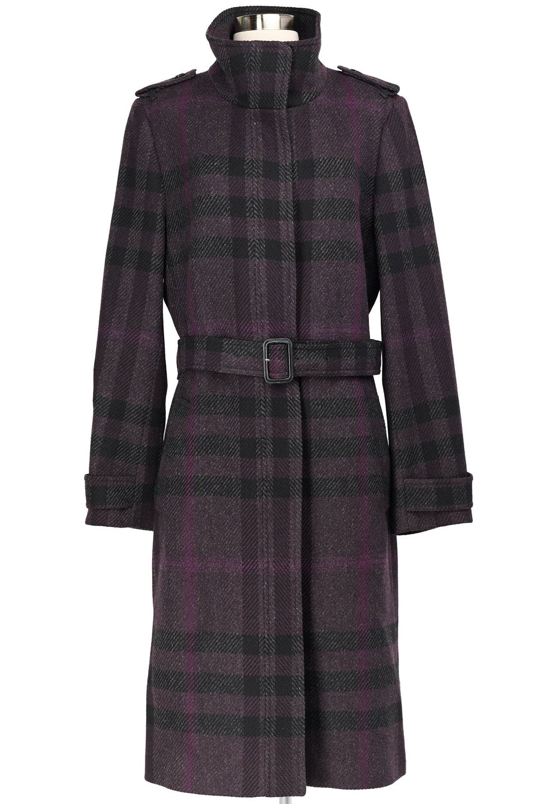 Burberry Plaid Wool Coat in black and purple